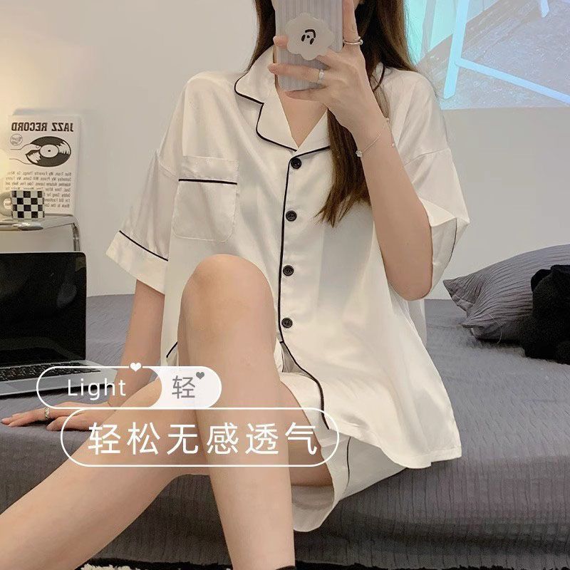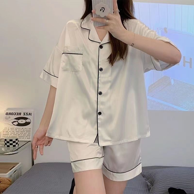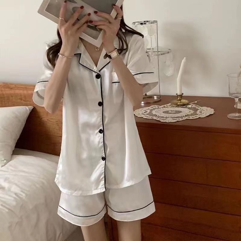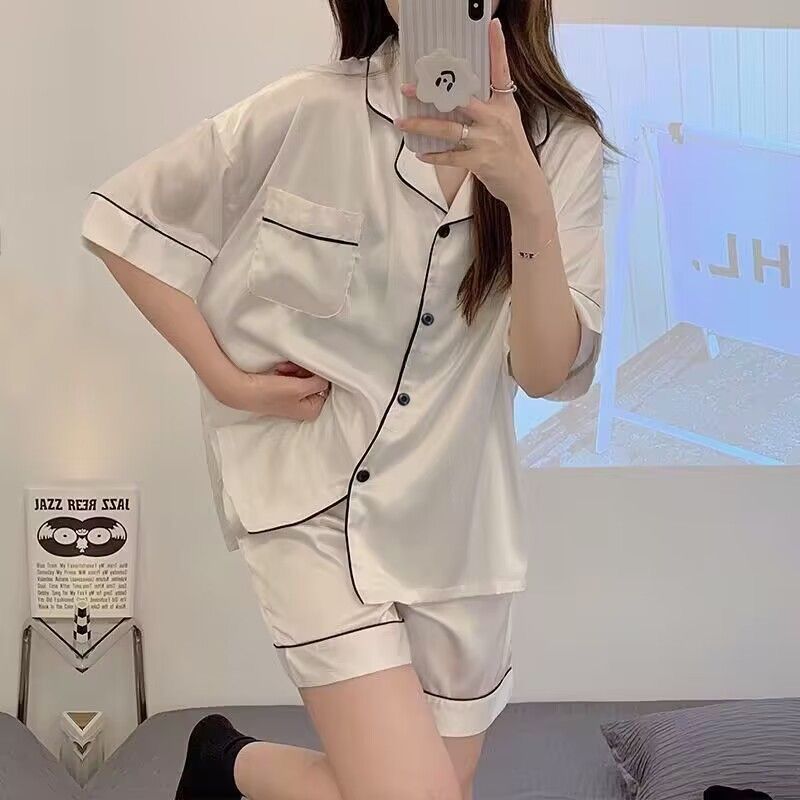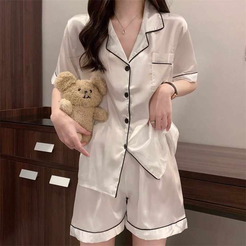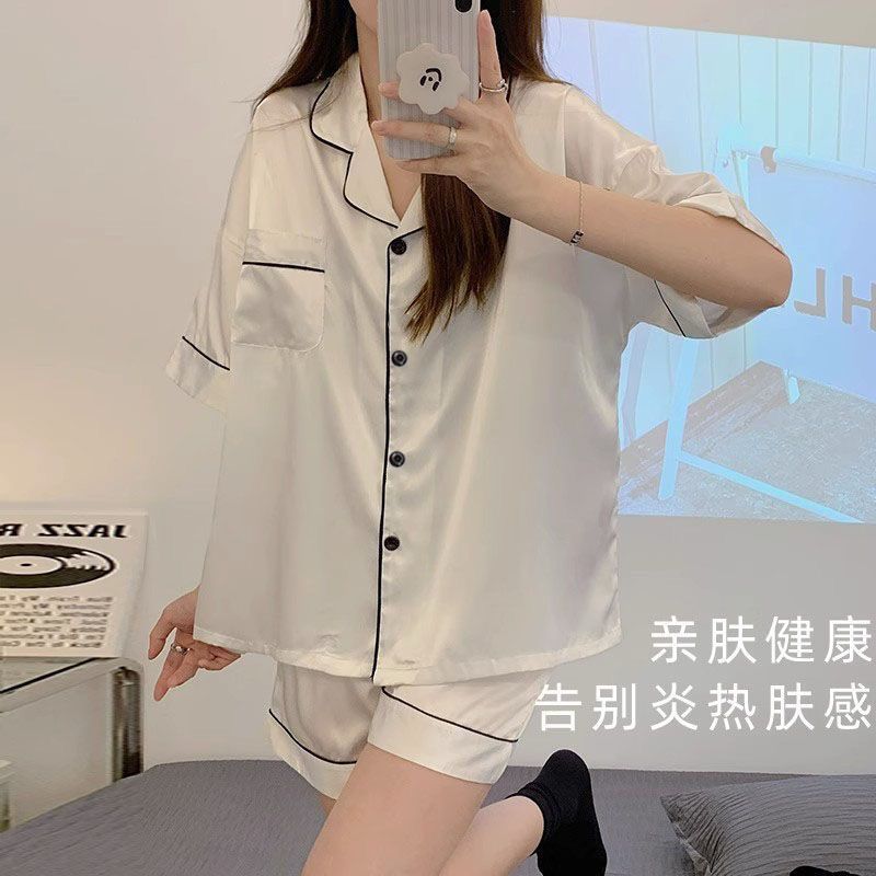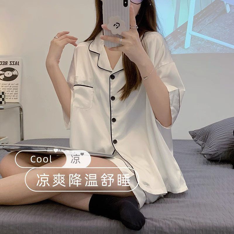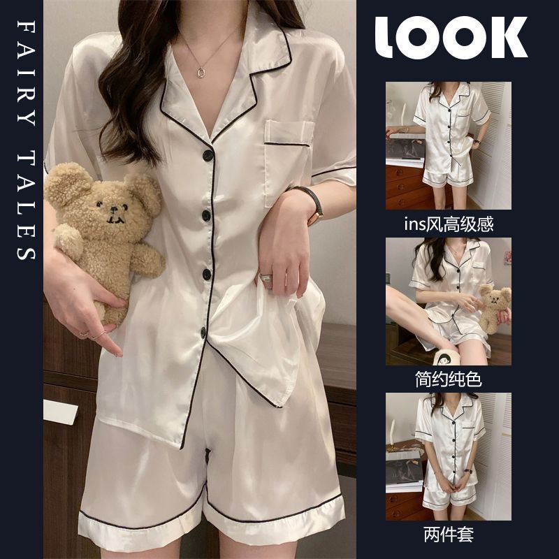 아이스 실크 파자마 여름 여성의 얇은 학생 Ins 스타일 고품질 봄과 여름 세트 반팔 실크 홈 의류스토어 가기
