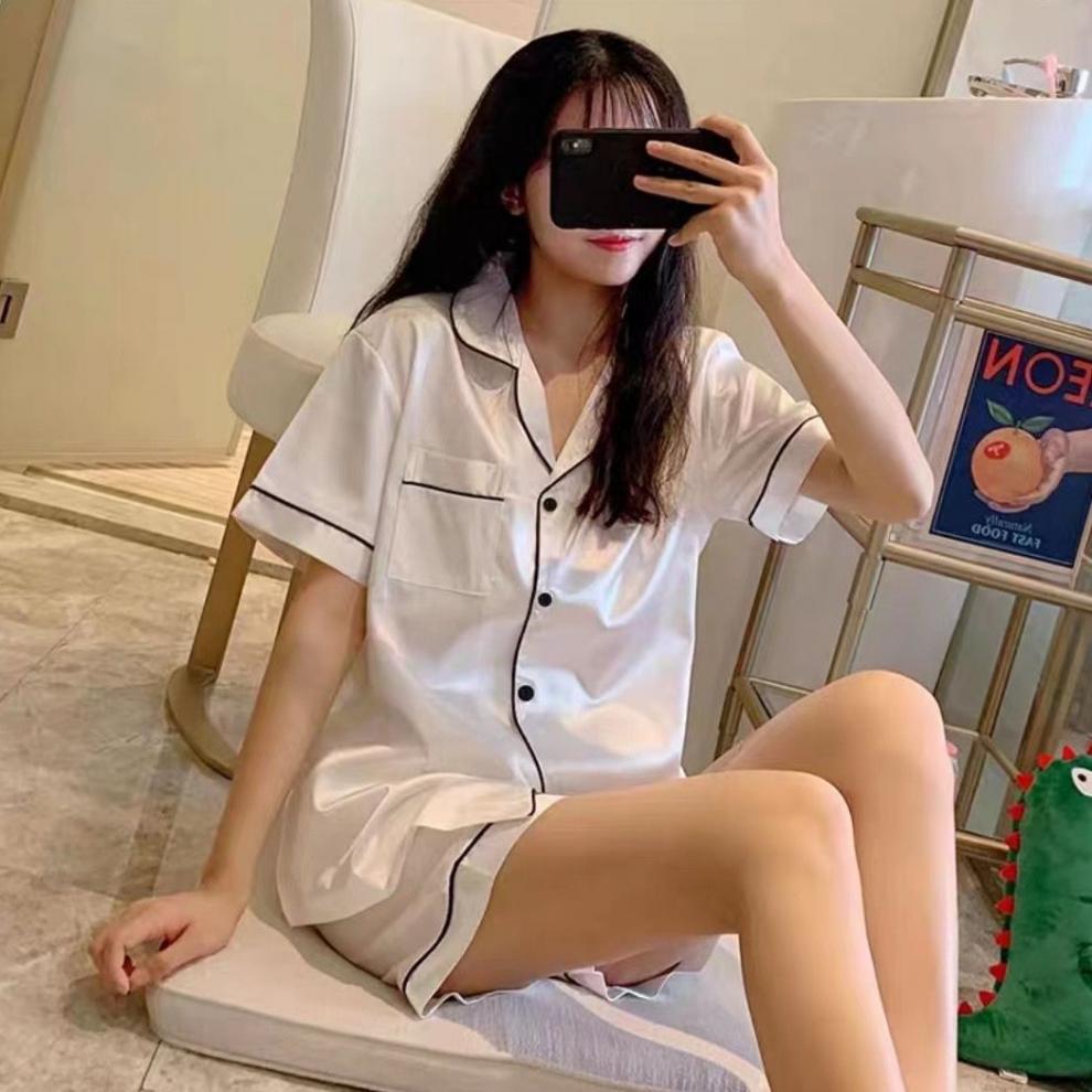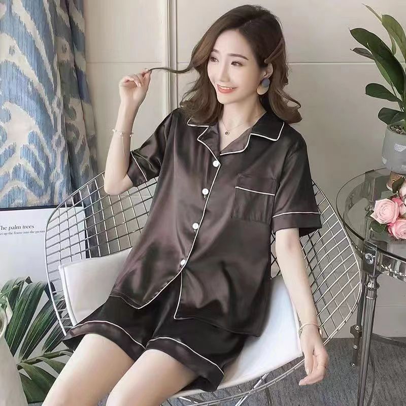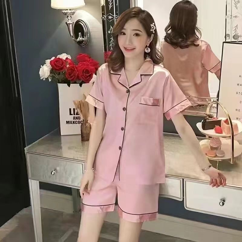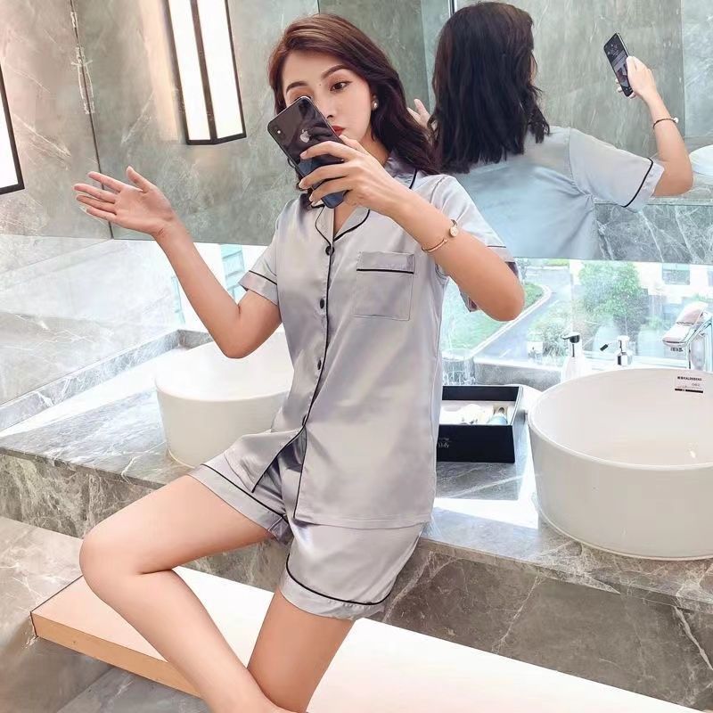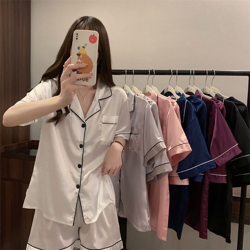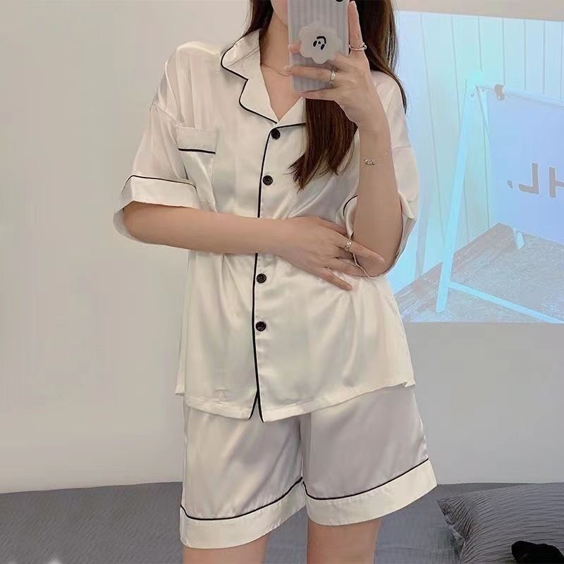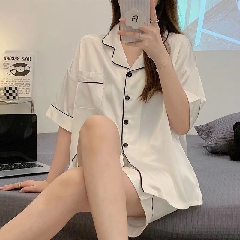 아이스 실크 파자마 여름 여성의 얇은 학생 Ins 스타일 고품질 봄과 여름 세트 반팔 실크 홈 의류스토어 가기