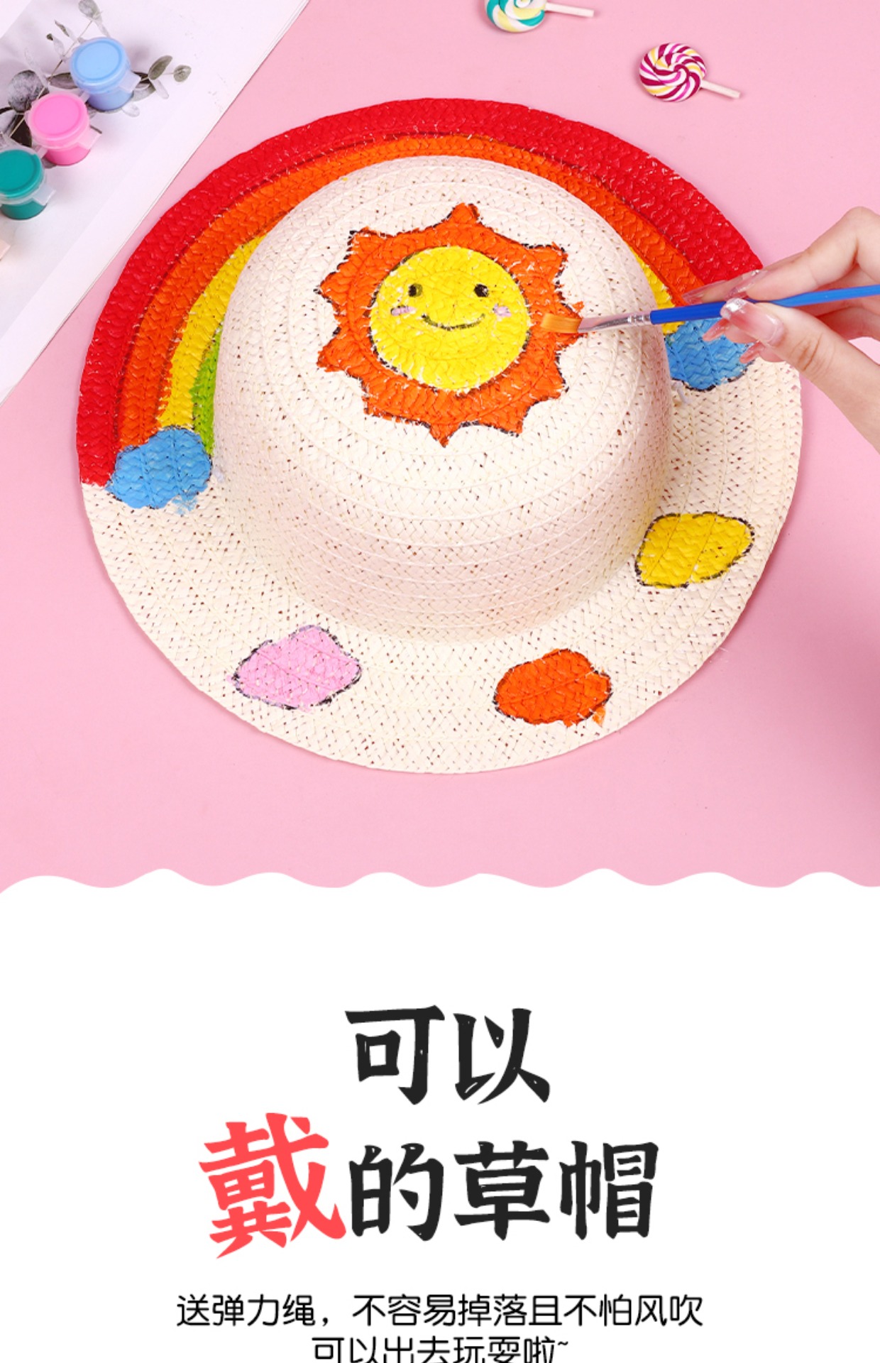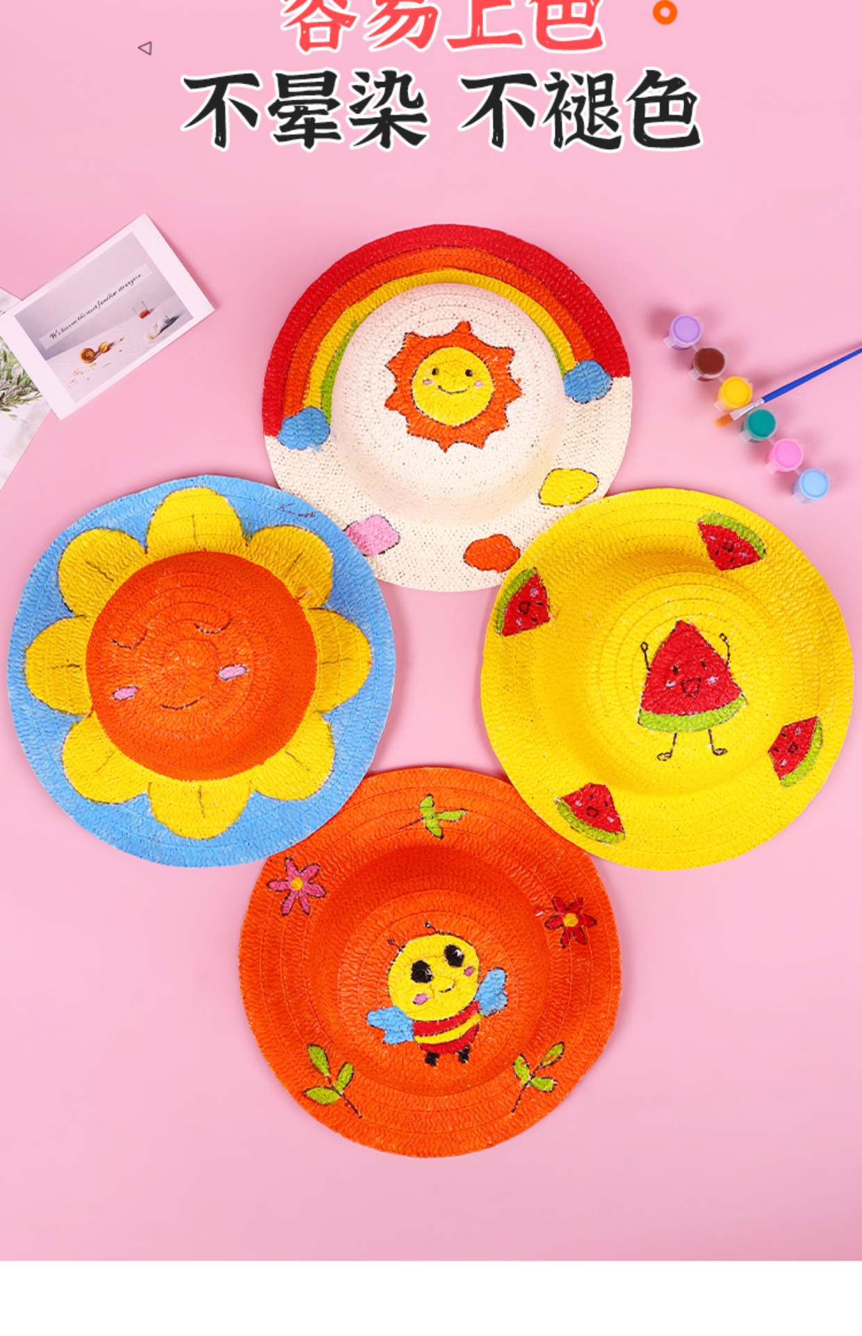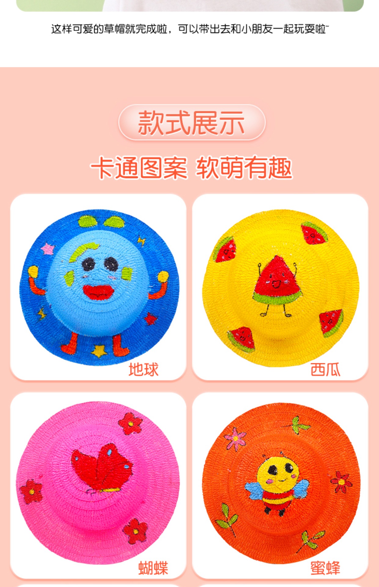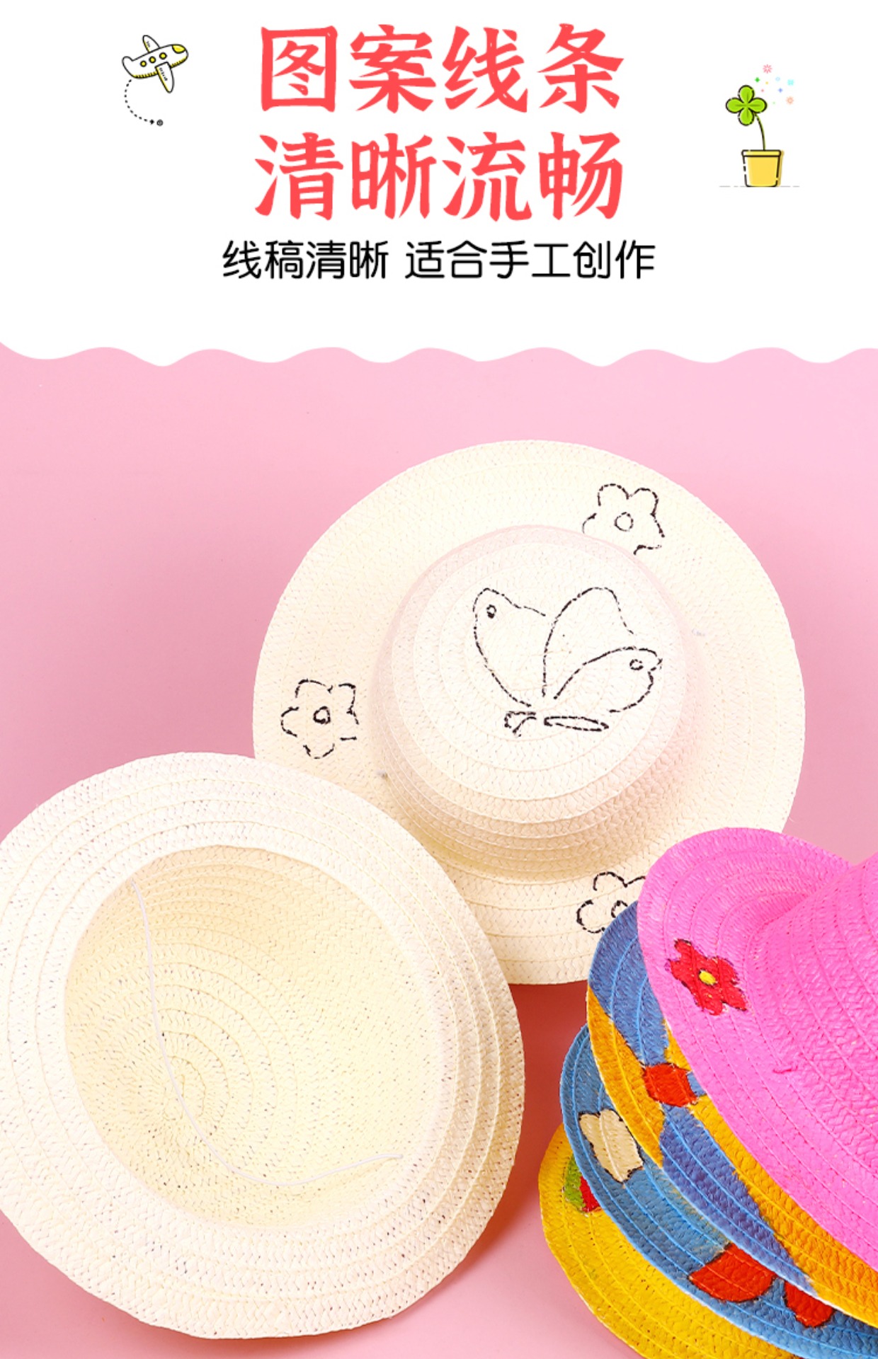 어린이 밀짚 모자 DIY 그림 모자 유치원 그림 손으로 그린 낙서 색 창조적 인 수제 재료 가방스토어 가기