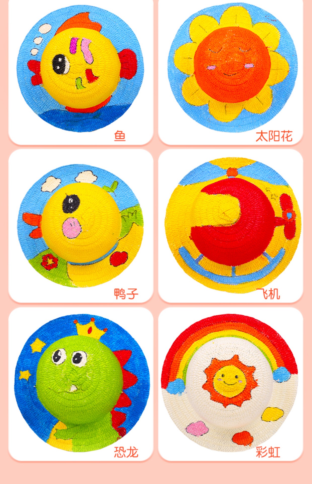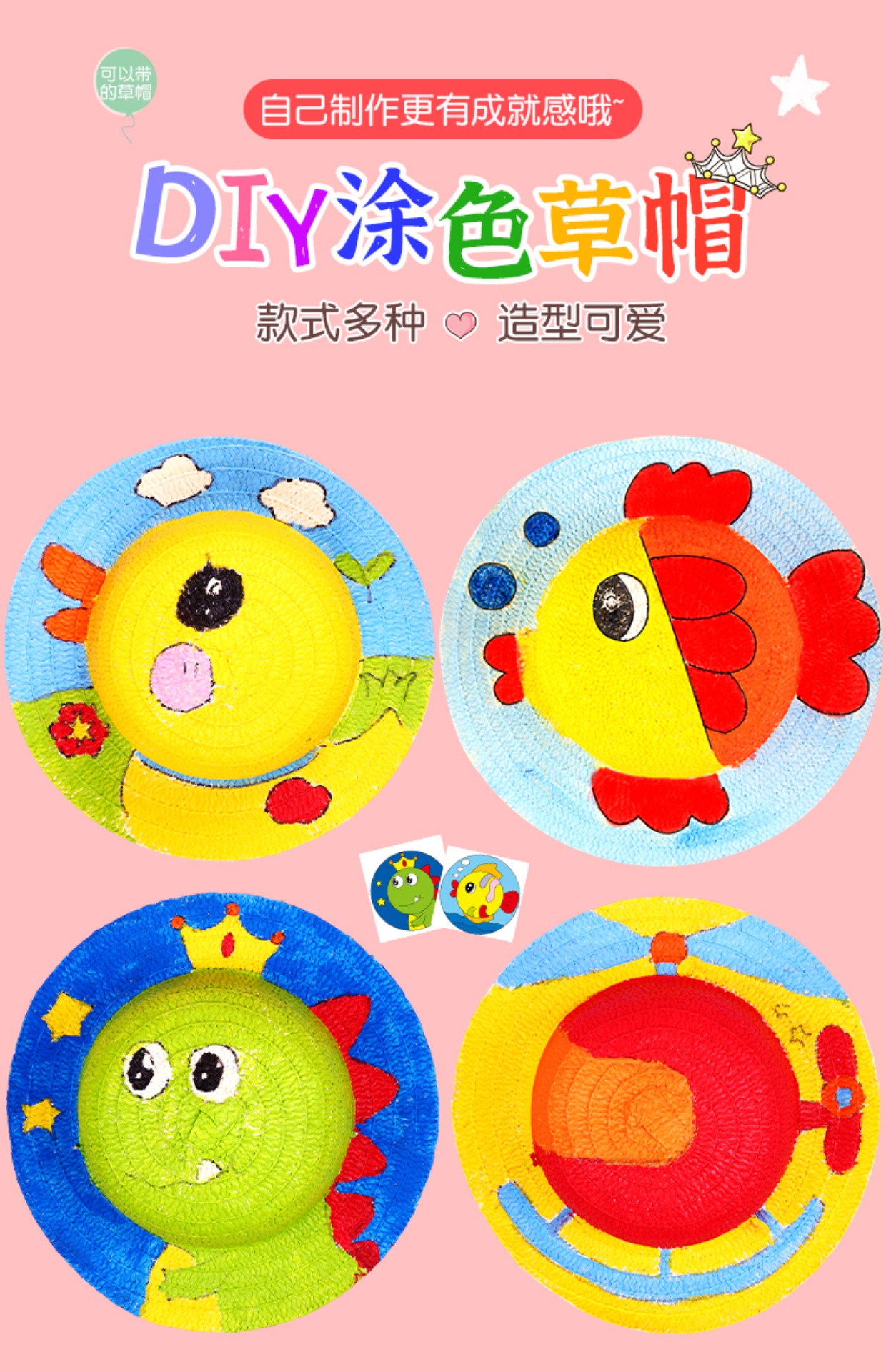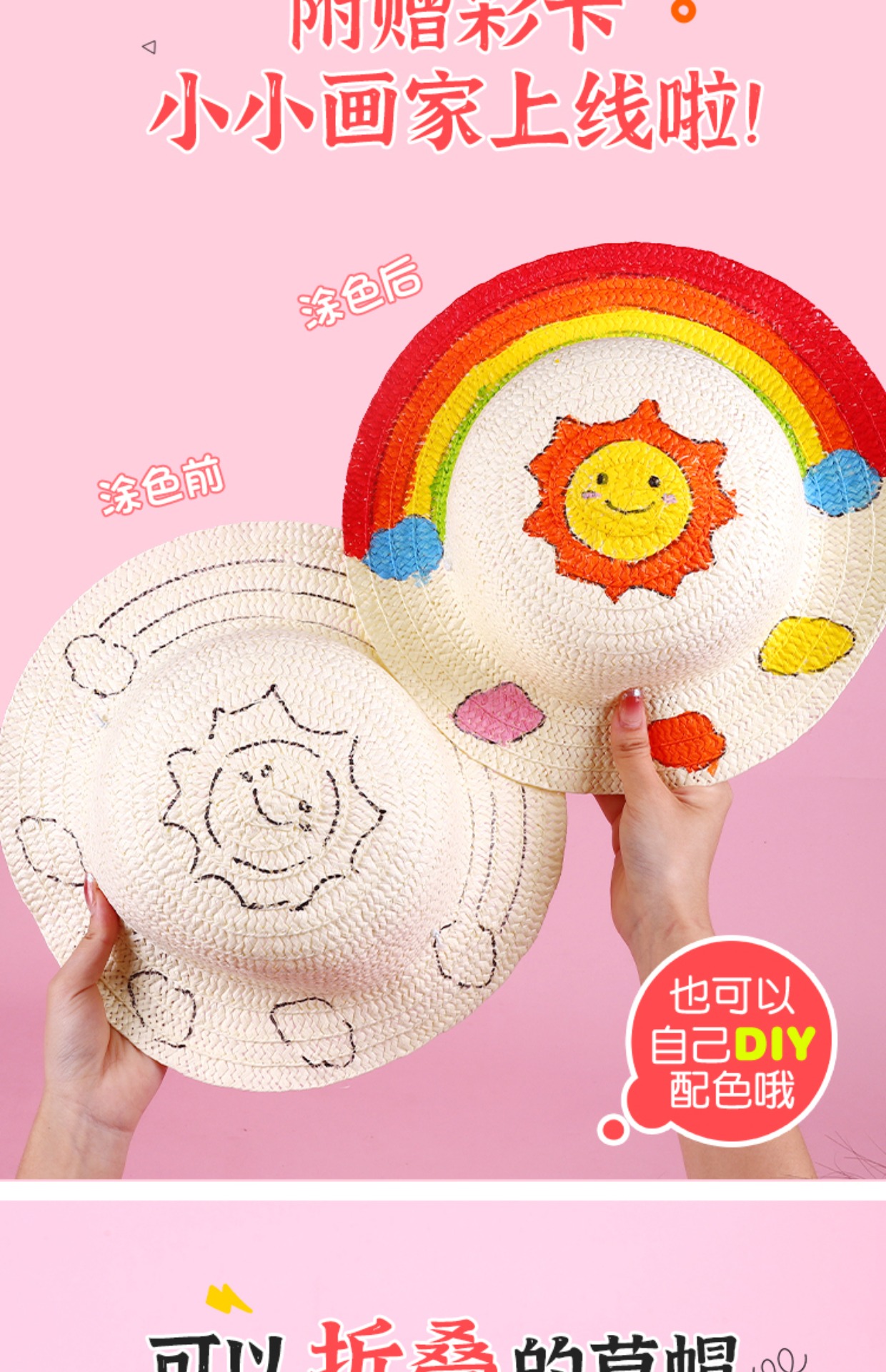 어린이 밀짚 모자 DIY 그림 모자 유치원 그림 손으로 그린 낙서 색 창조적 인 수제 재료 가방스토어 가기
