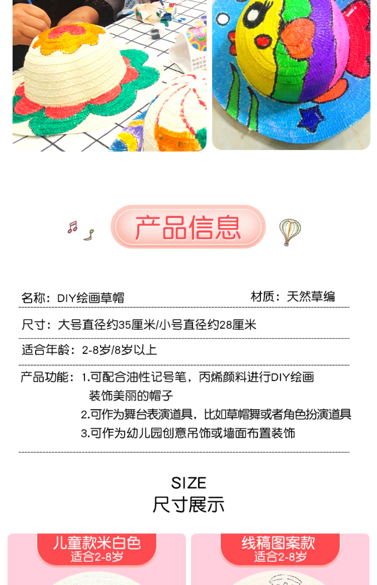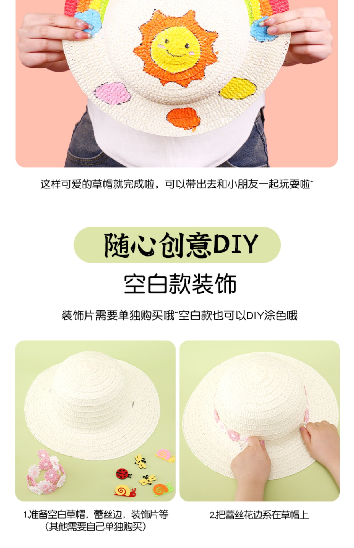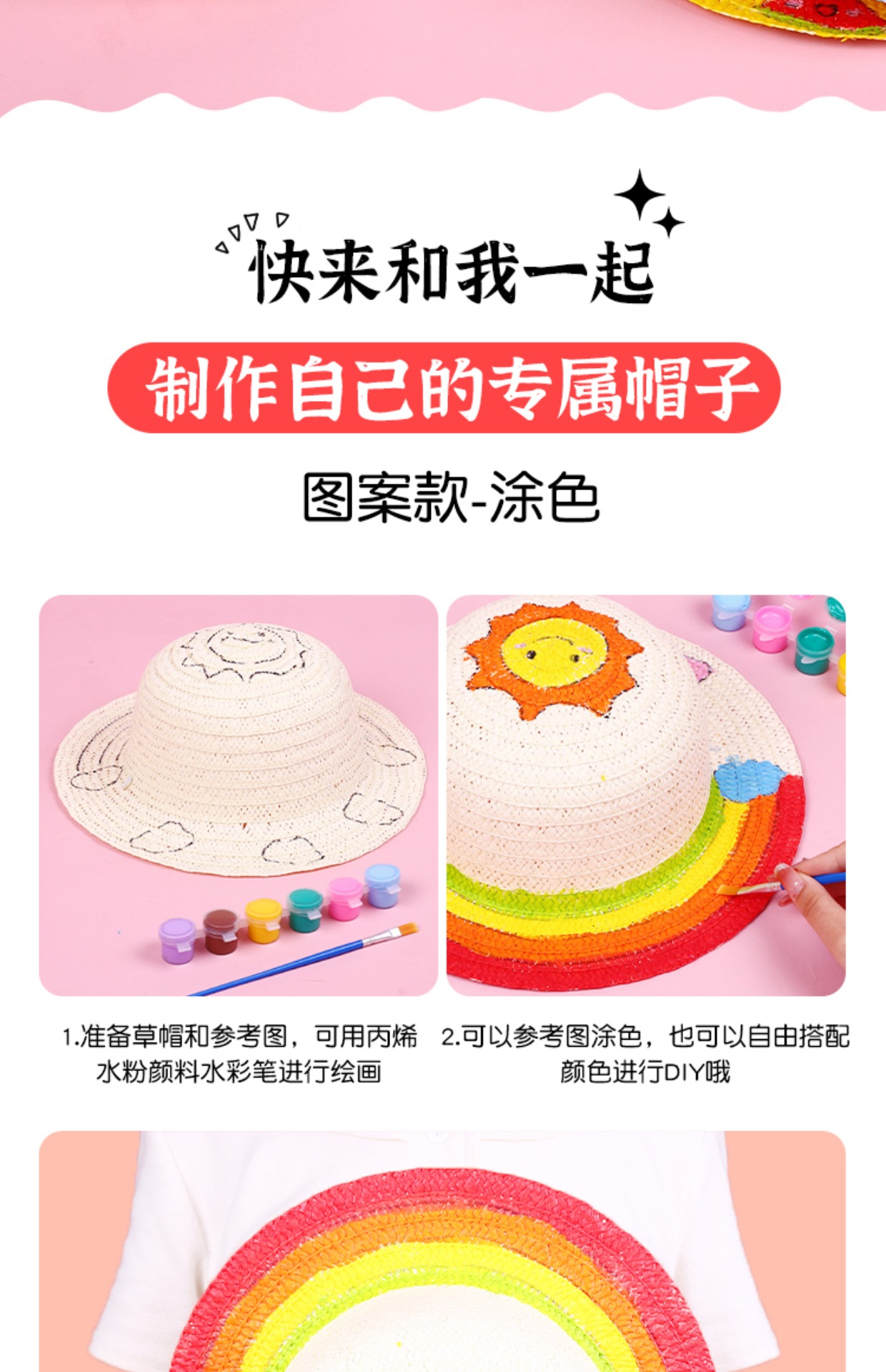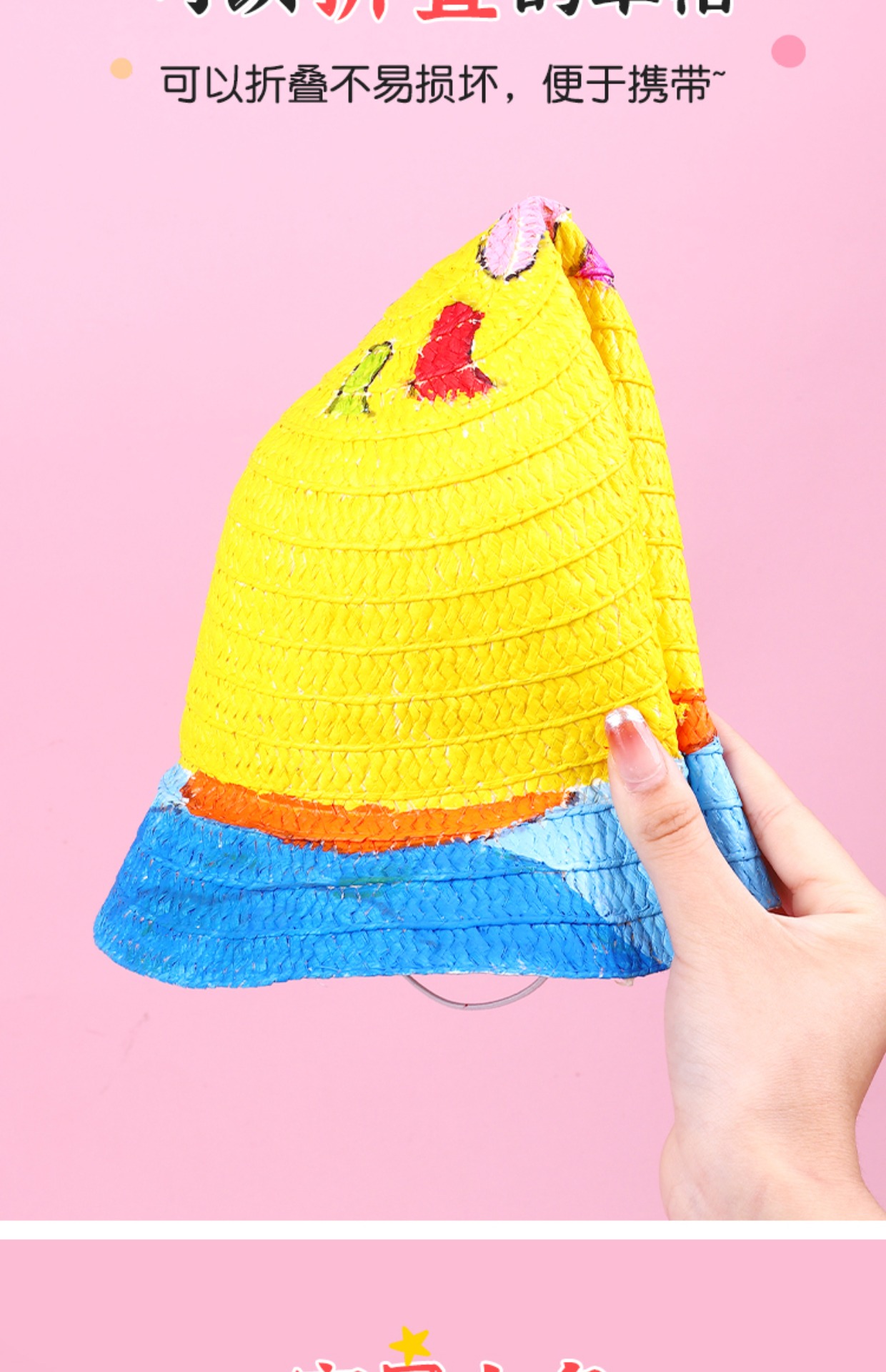 어린이 밀짚 모자 DIY 그림 모자 유치원 그림 손으로 그린 낙서 색 창조적 인 수제 재료 가방스토어 가기