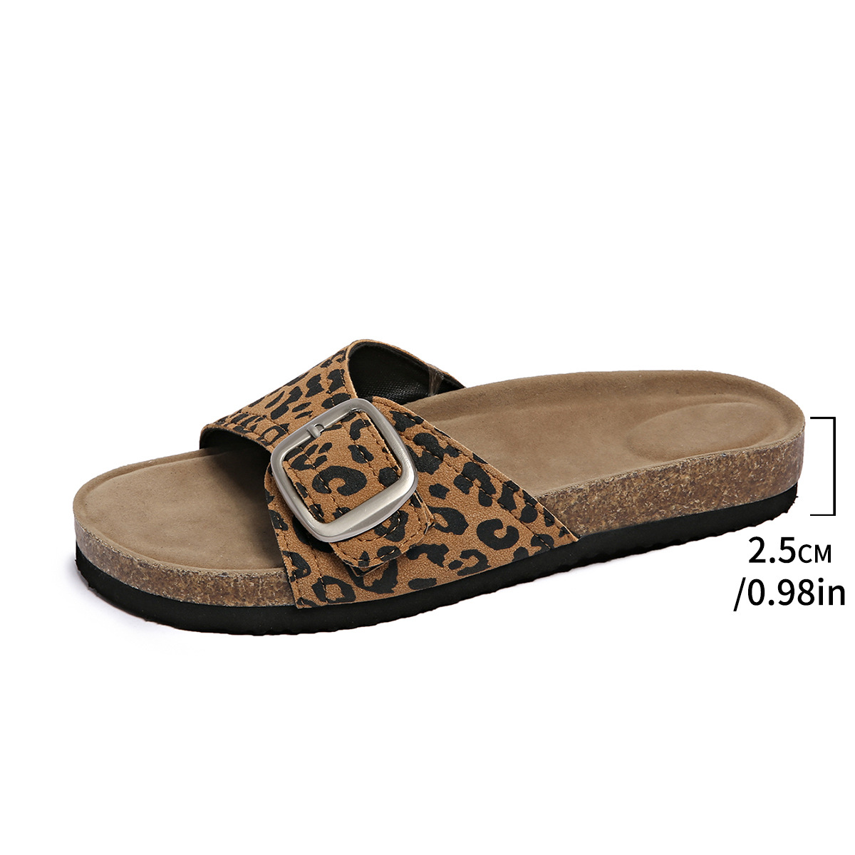 2025 새로운 유럽과 미국의 대외 무역 벨트 버클 코르크 슬리퍼 여성 비치 오픈 발가락 플랫 샌들 플러스 사이즈 여성용 샌들