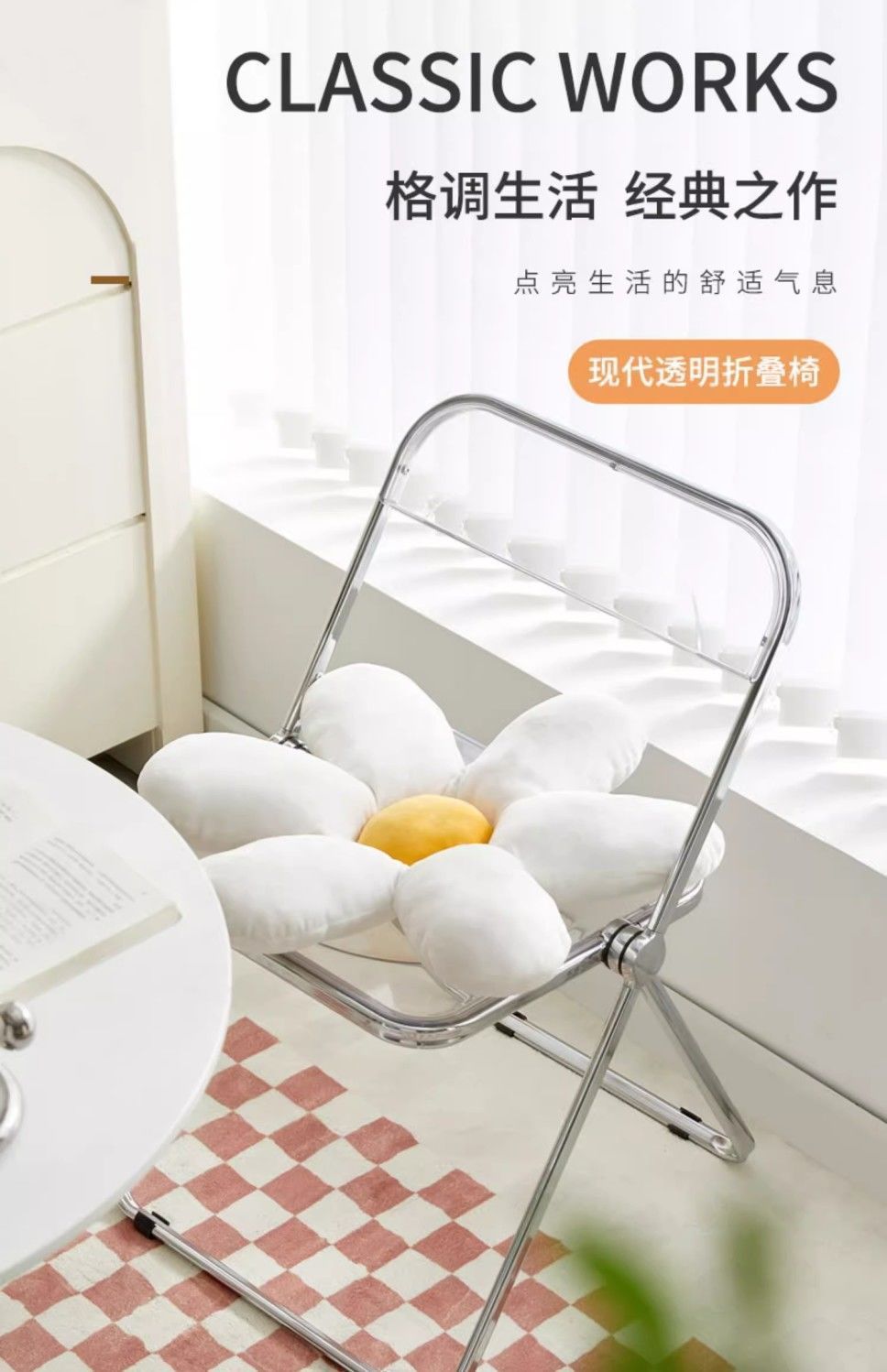 • 황백색 투명 접이식 의자 [업그레이드된 PC 소재]
