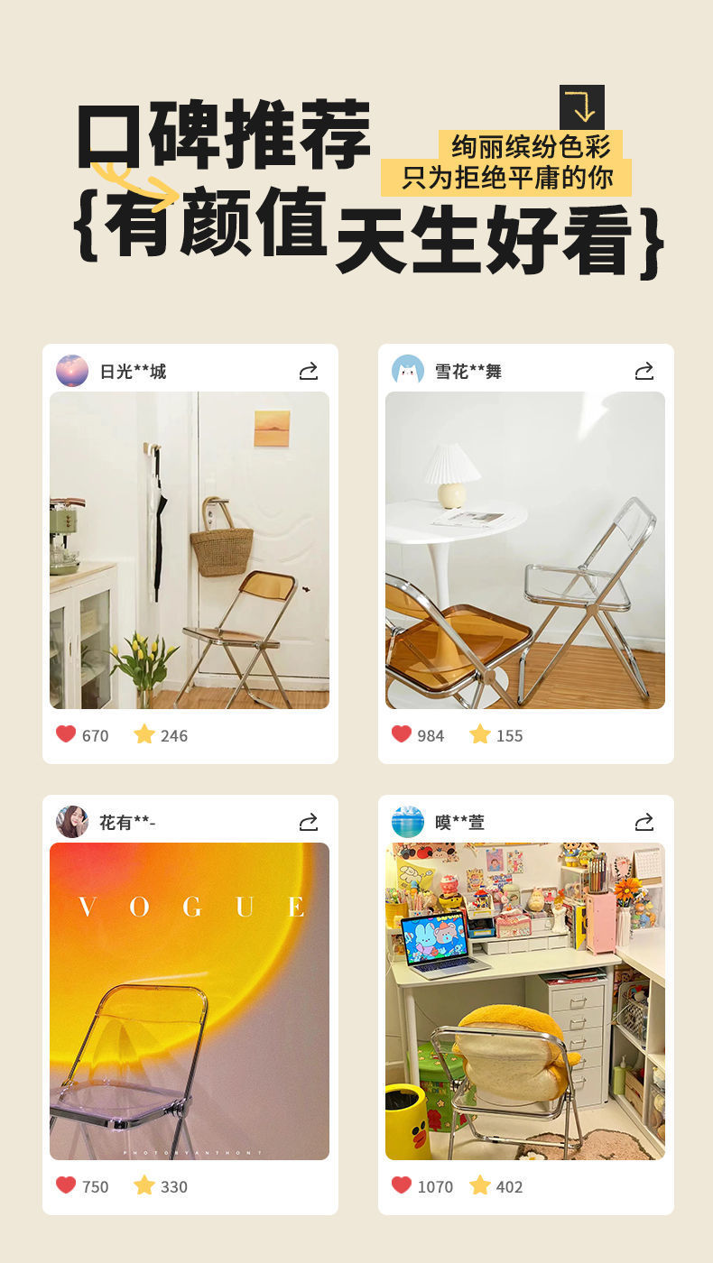 패션 인 스툴 인터넷 연예인 메이크업 의자 사진 의자 휴대용 홈 접이식 의자 아크릴 다이닝 의자 투명 의자