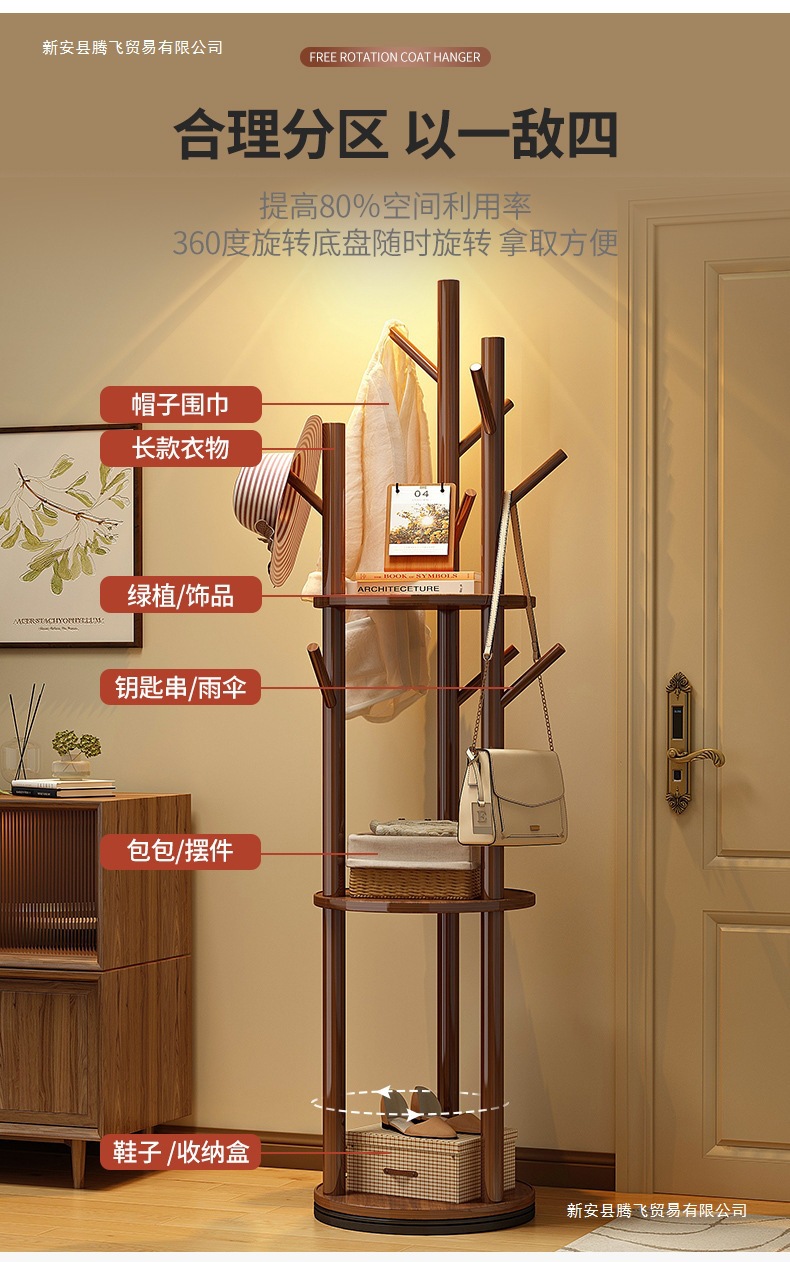 회전 코트 랙 바닥 걸이 수직 옷 선반 거실 홈 침실 라이트 럭셔리 솔리드 우드 옷걸이