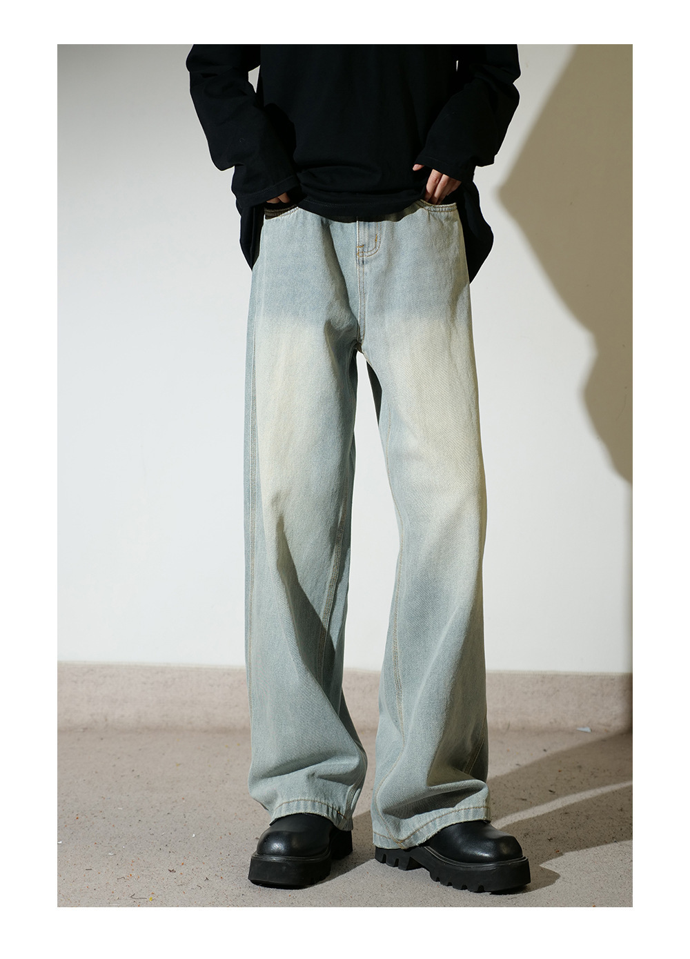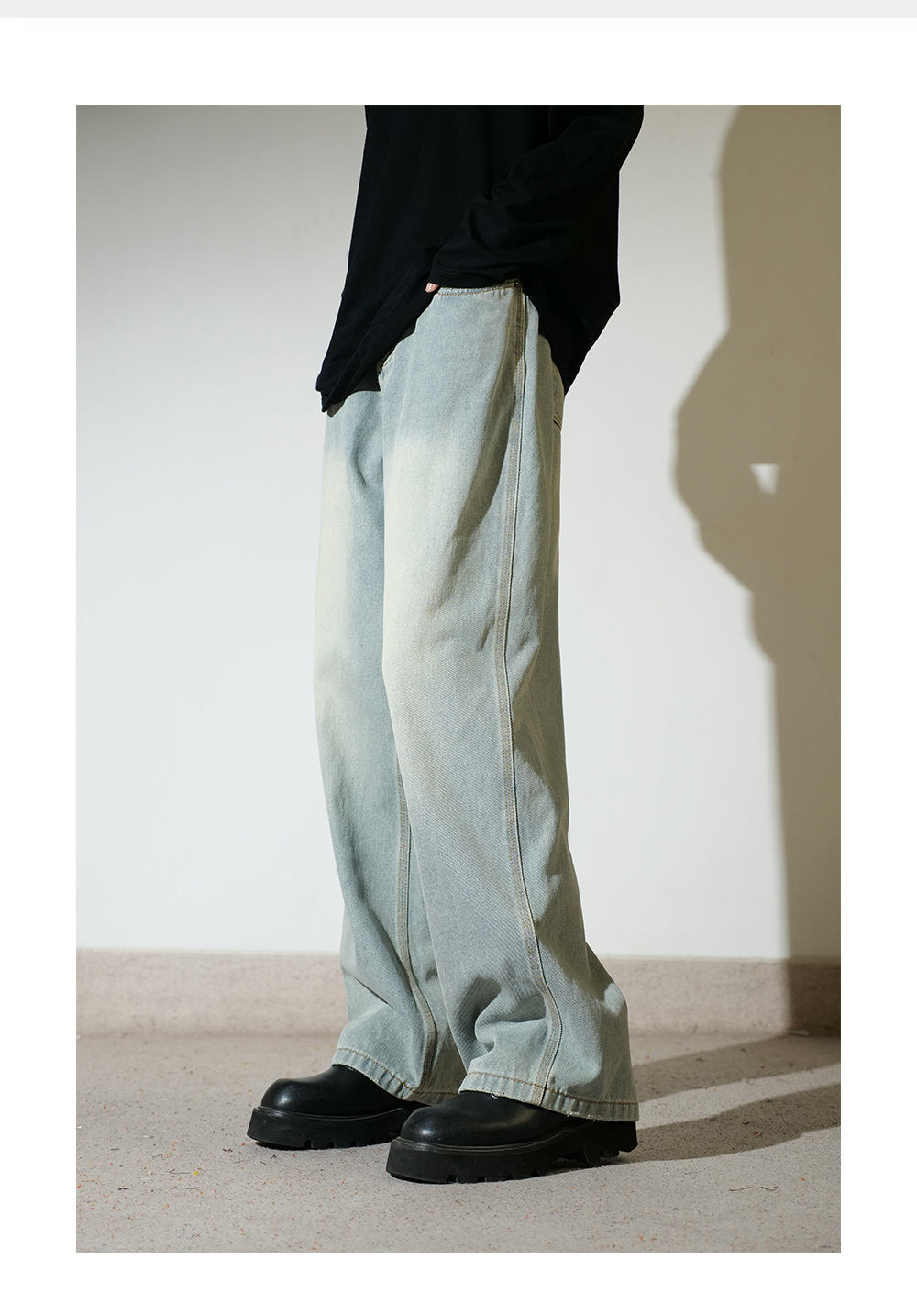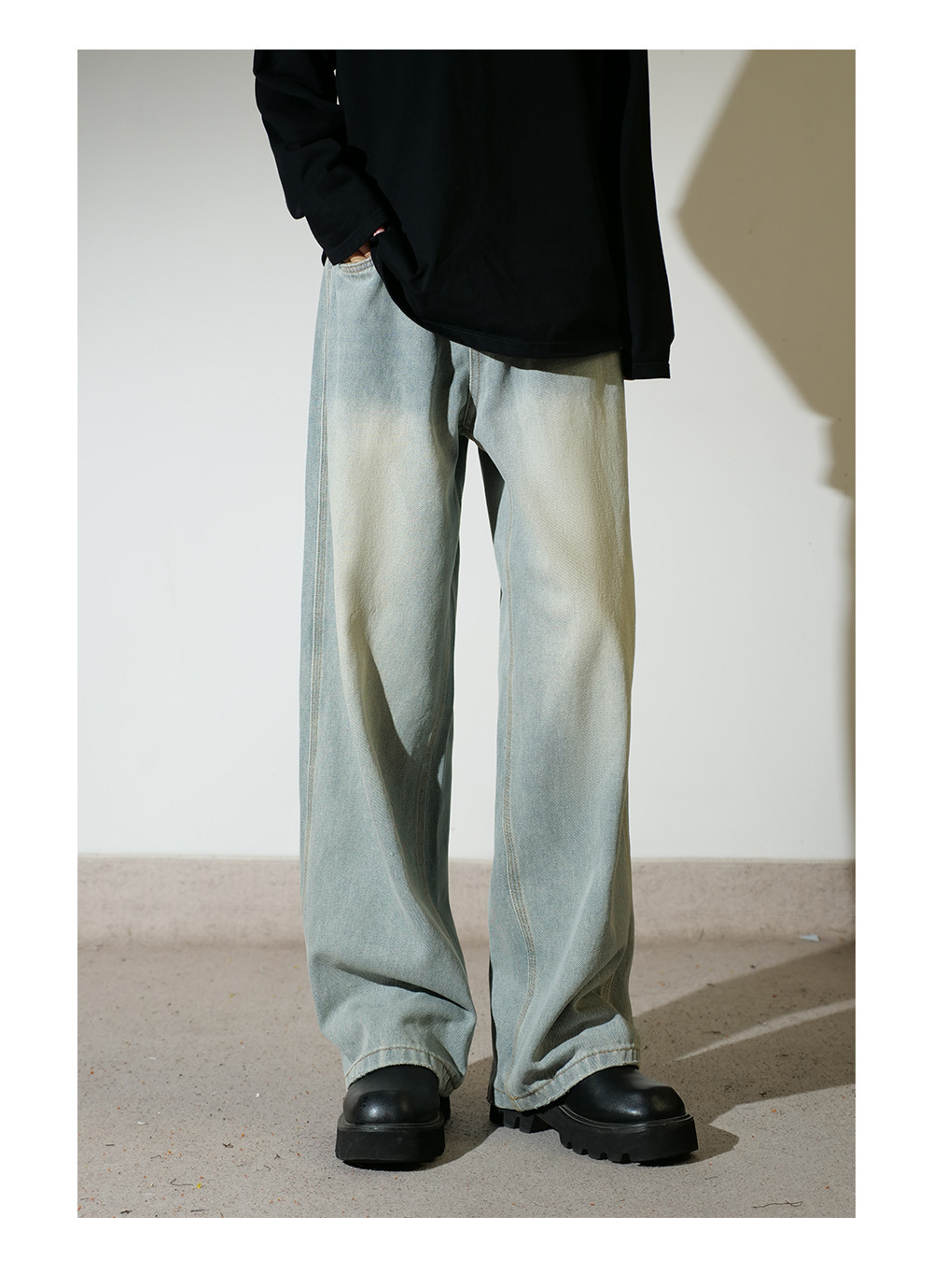 [세바늘 스톤밀 블루소] 루즈한 와이드 레그 아메리칸 진 남성 가을 겨울 캐주얼 스트레이트 팬츠