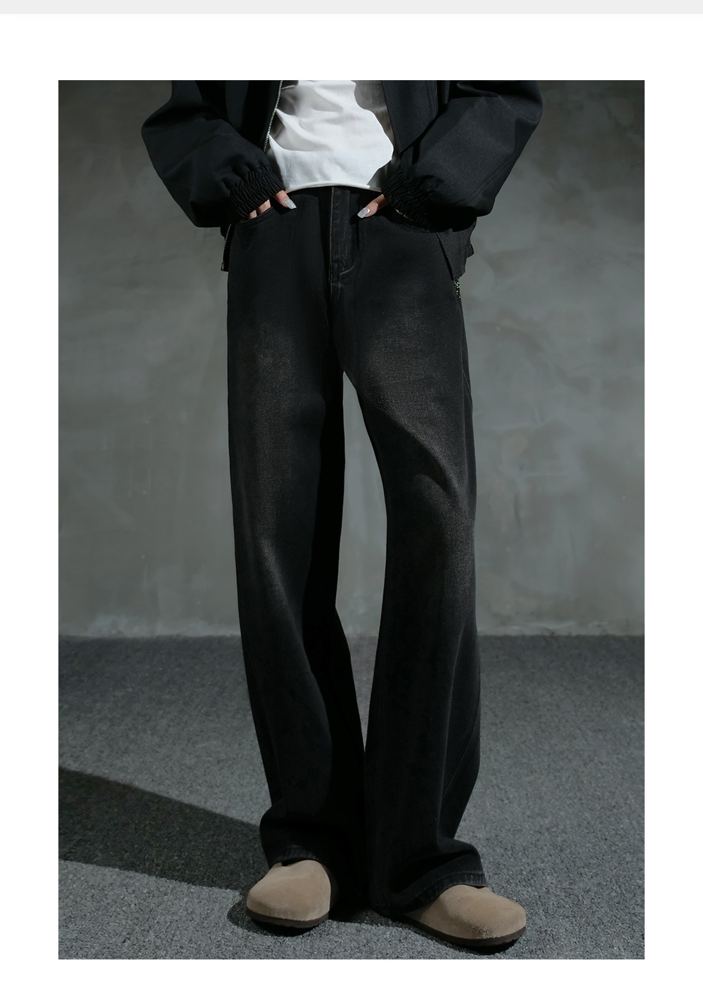 [세바늘 스톤밀 블루소] 루즈한 와이드 레그 아메리칸 진 남성 가을 겨울 캐주얼 스트레이트 팬츠스토어 가기