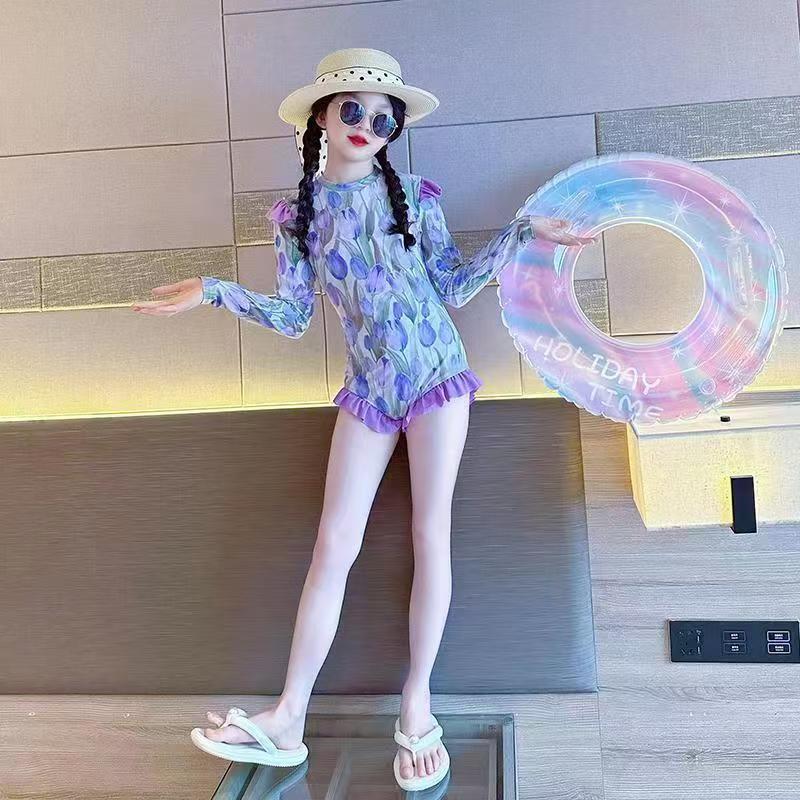 소녀 원피스 분할 수영복 여름 소녀 공주 스타일 수영복 2025 새로운 도착 큰 어린이 수영복스토어 가기