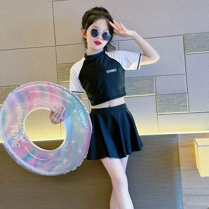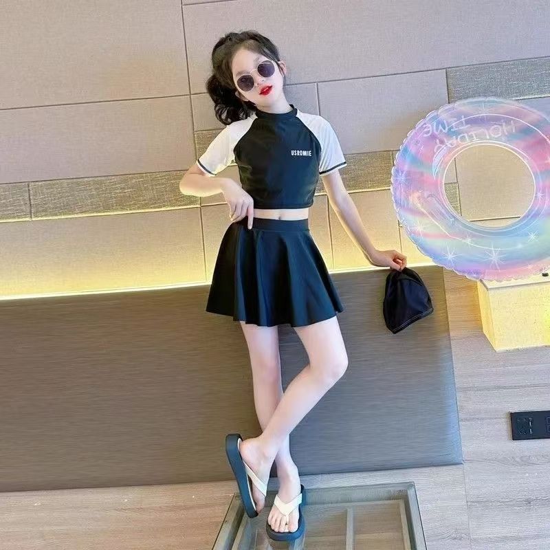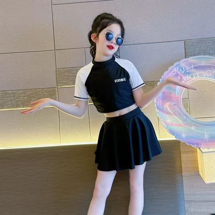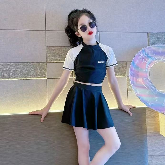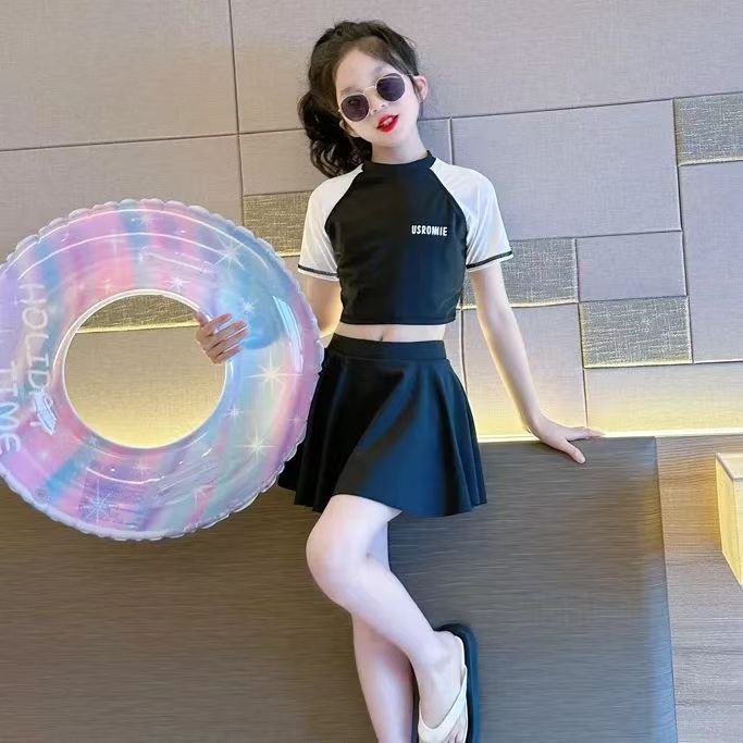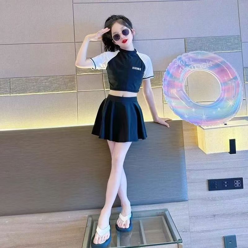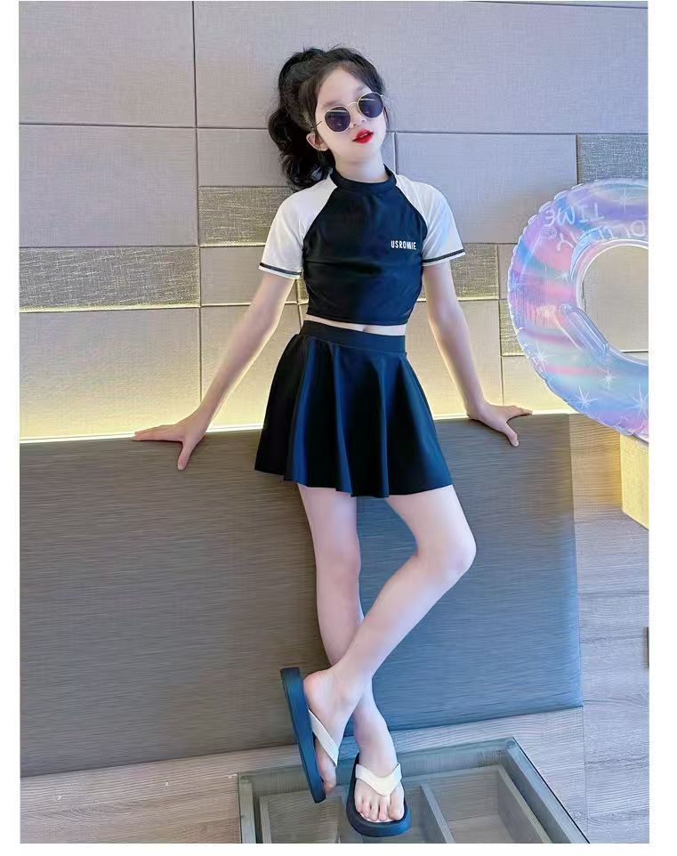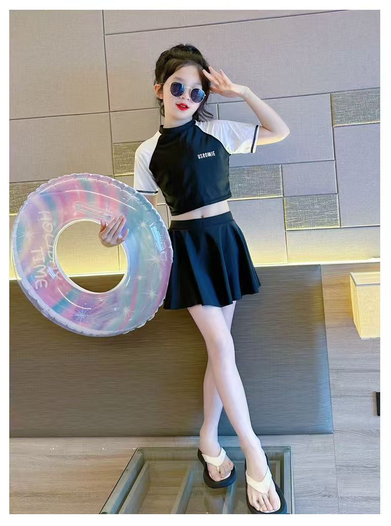 소녀 원피스 분할 수영복 여름 소녀 공주 스타일 수영복 2025 새로운 도착 큰 어린이 수영복