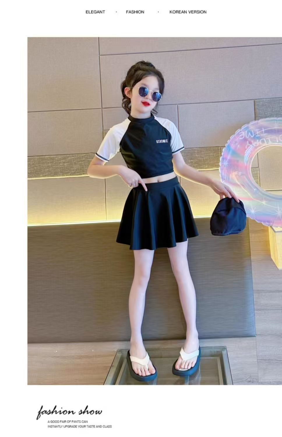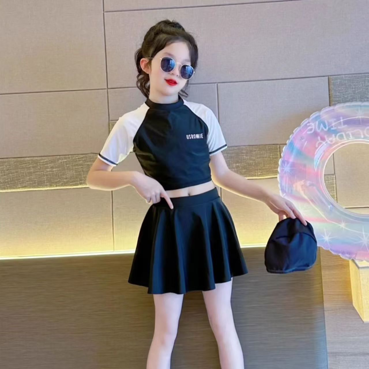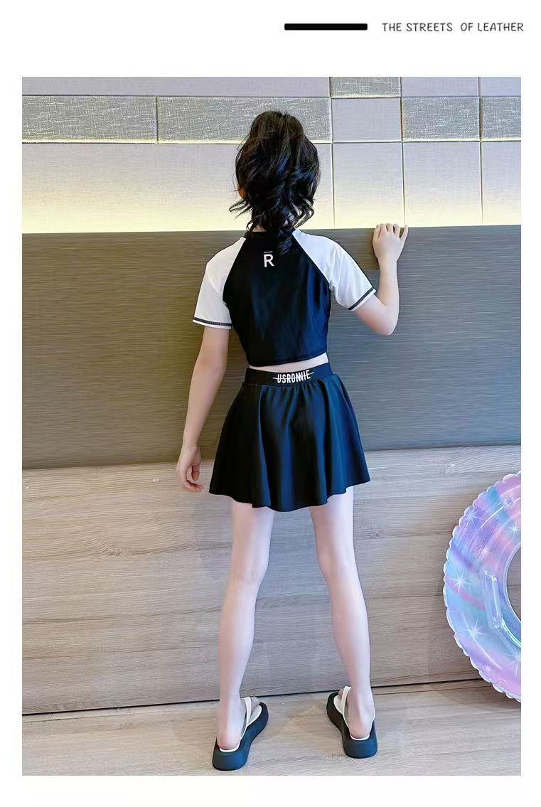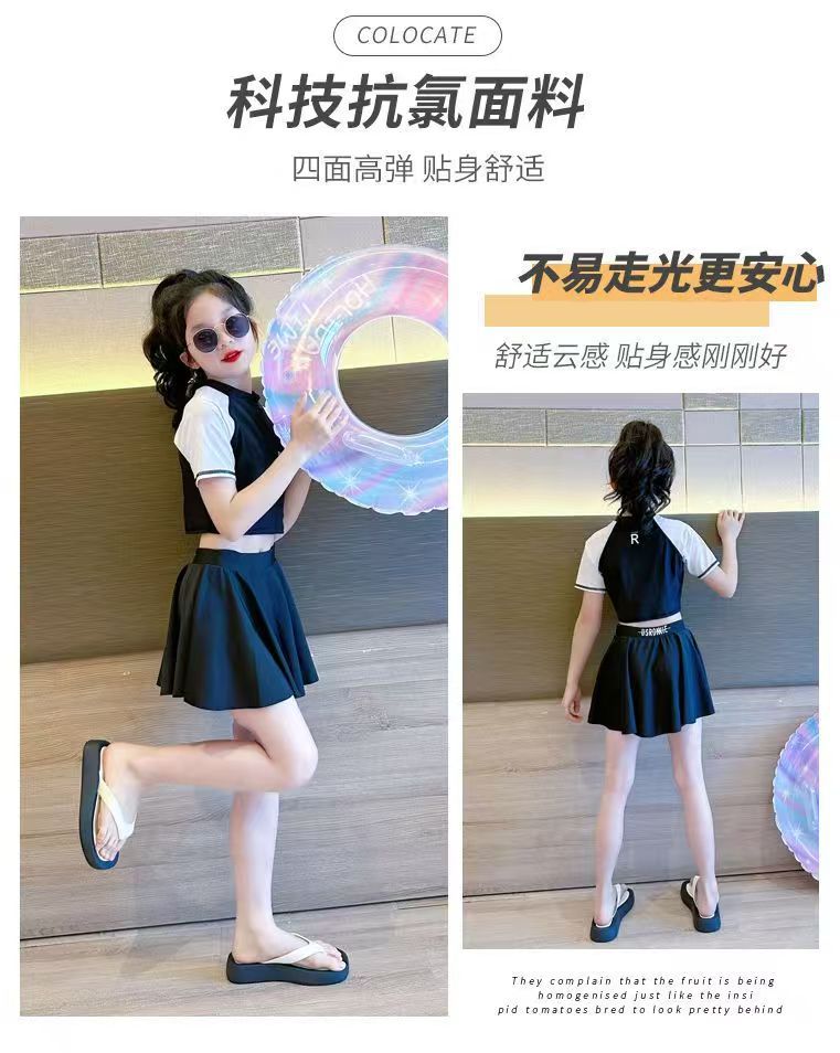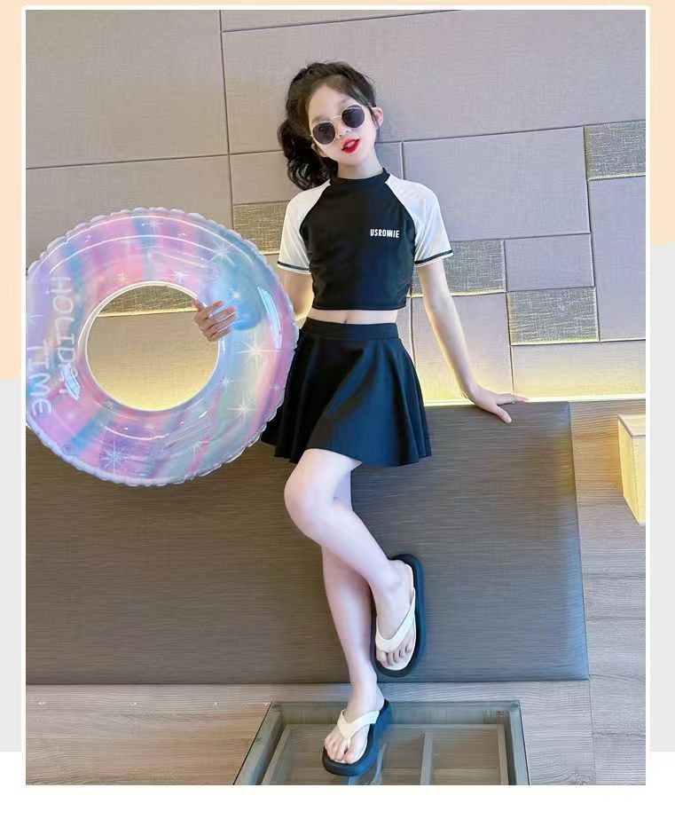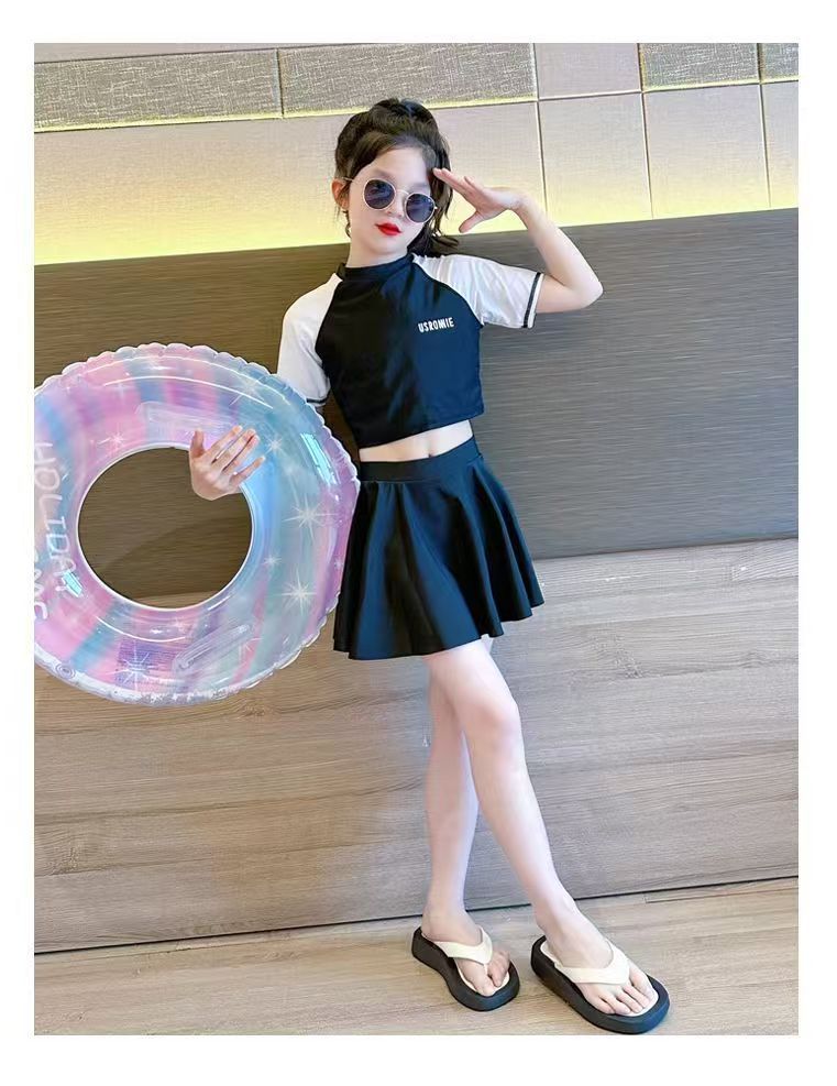 소녀 원피스 분할 수영복 여름 소녀 공주 스타일 수영복 2025 새로운 도착 큰 어린이 수영복