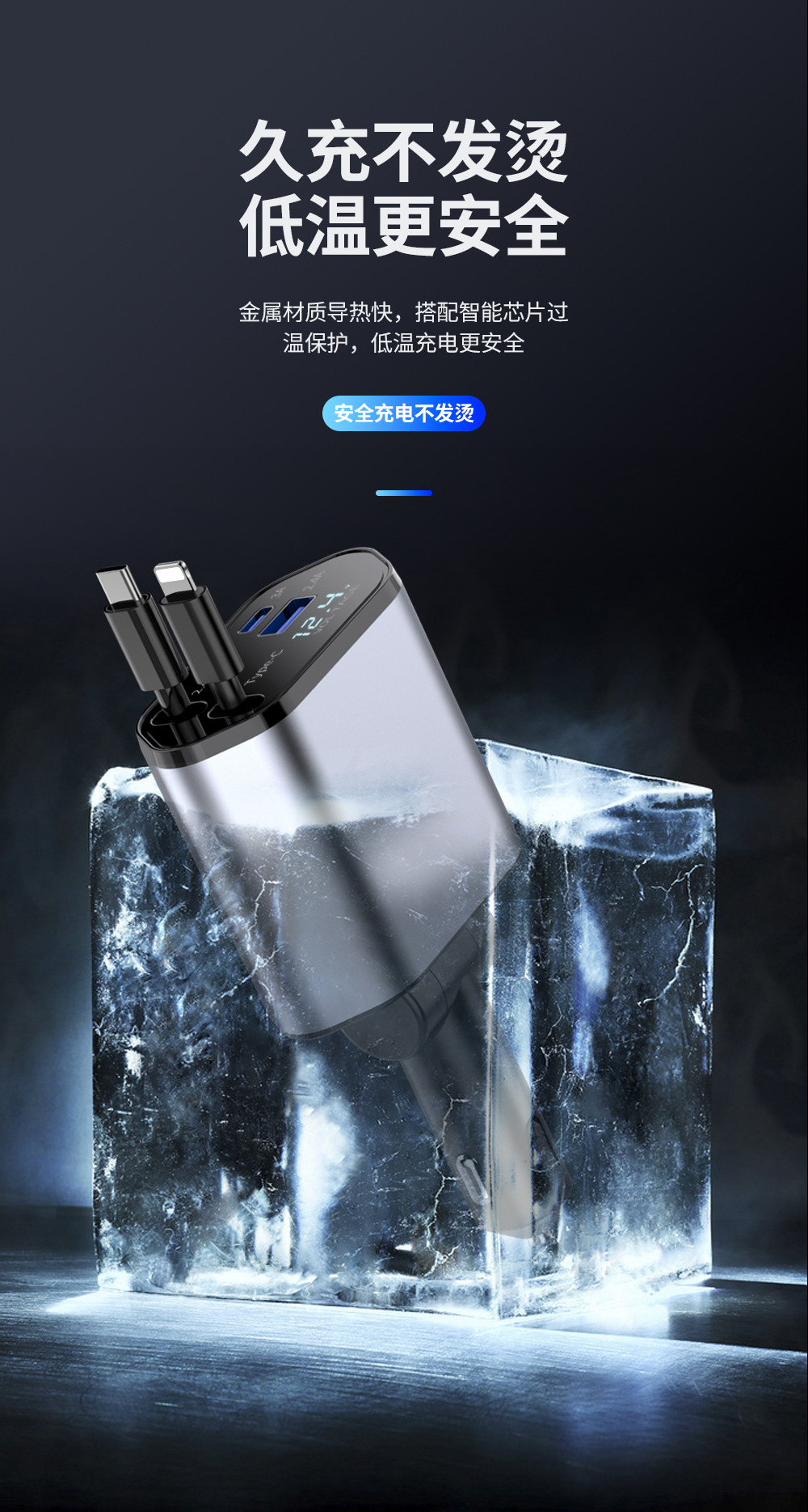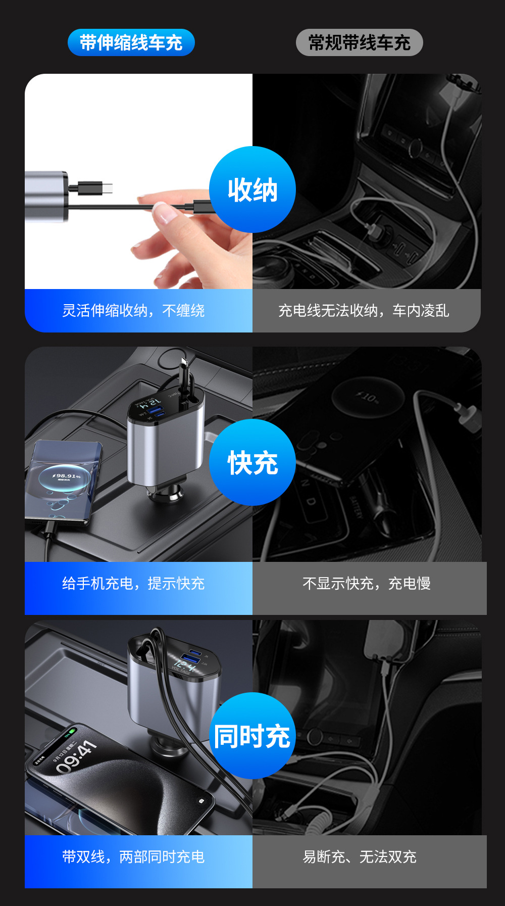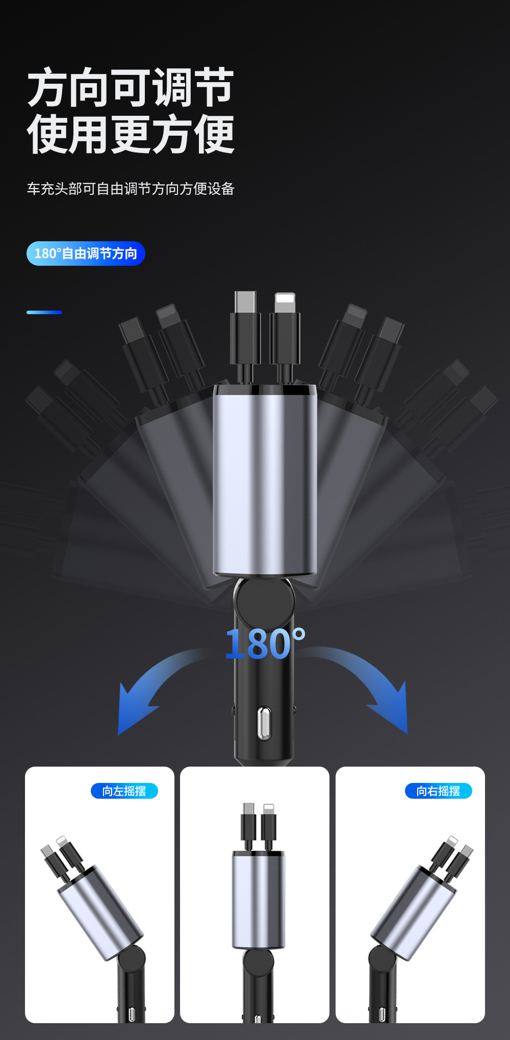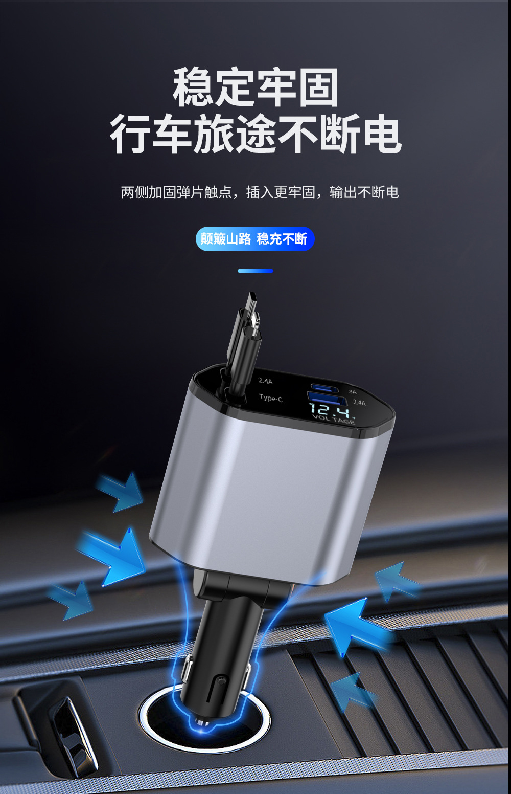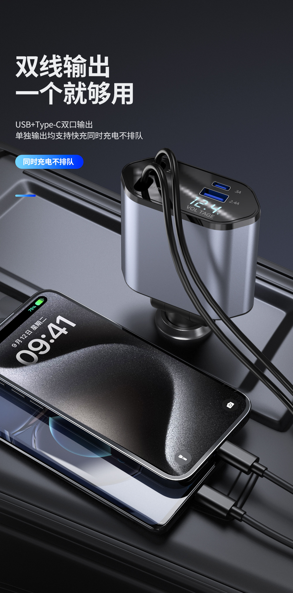 국경 120W 자동차 충전기 빠른 충전 텔레스코픽 라인 애플 화웨이 플래시 충전 자동차 담배 라이터 포트 충전스토어 가기