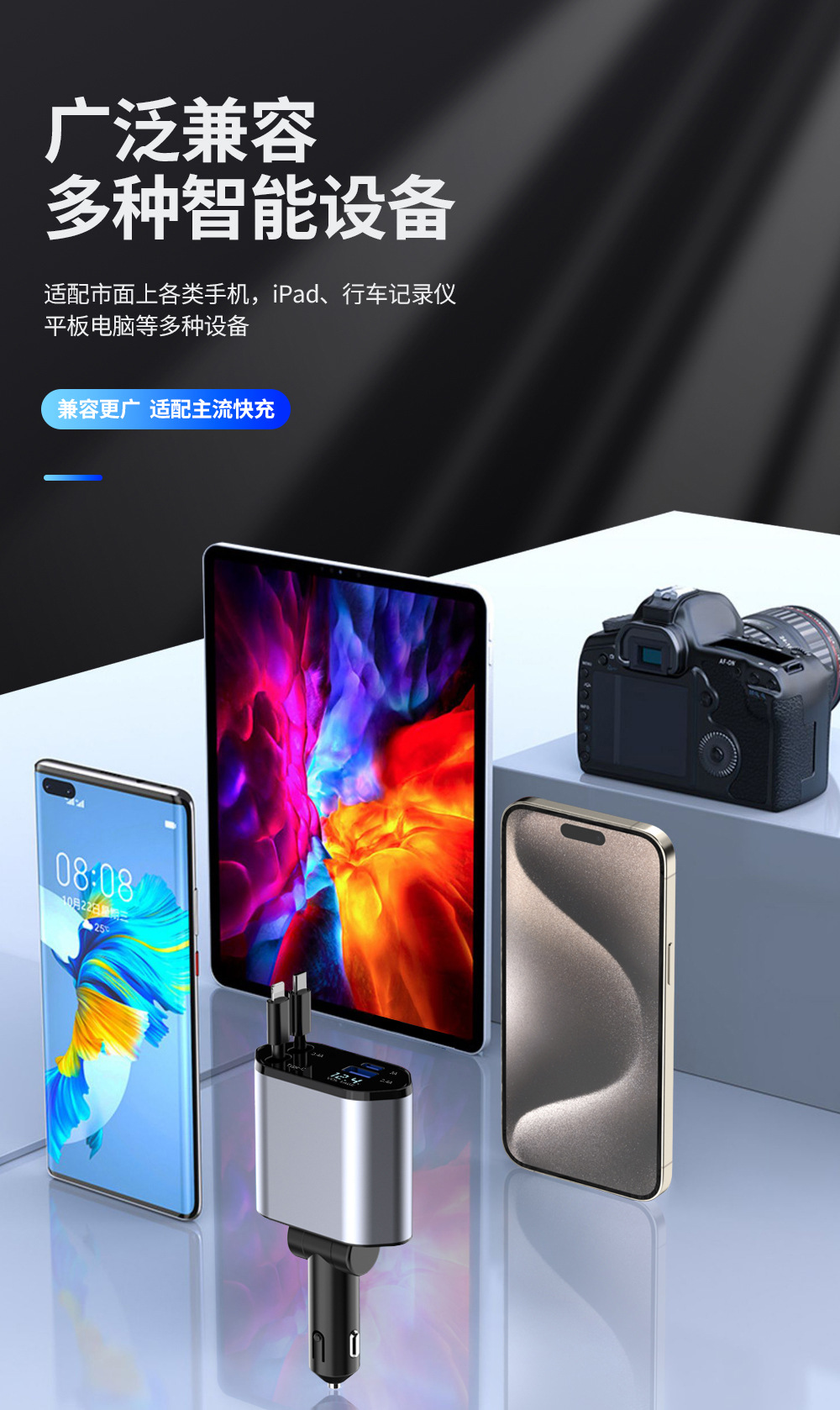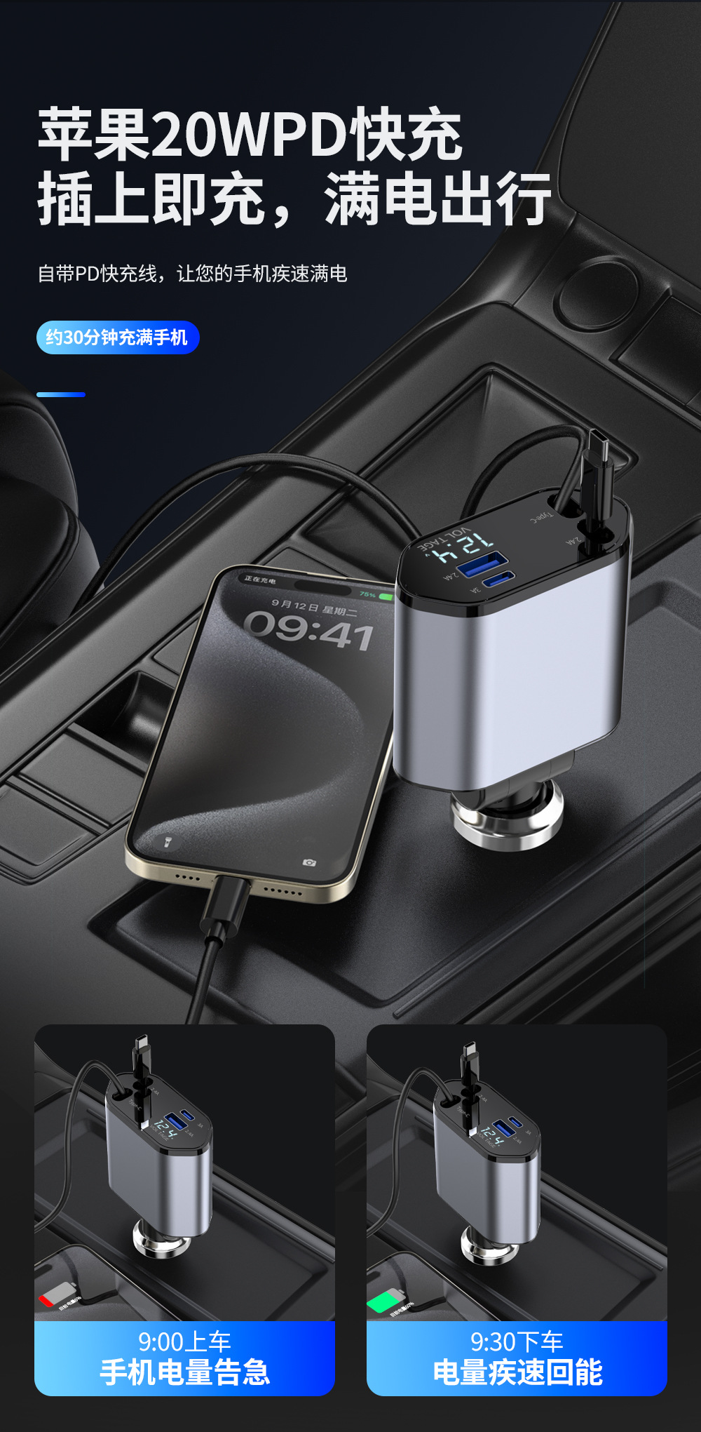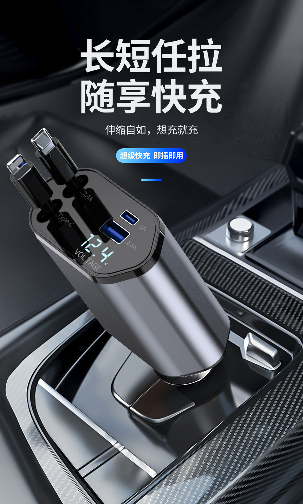 국경 120W 자동차 충전기 빠른 충전 텔레스코픽 라인 애플 화웨이 플래시 충전 자동차 담배 라이터 포트 충전