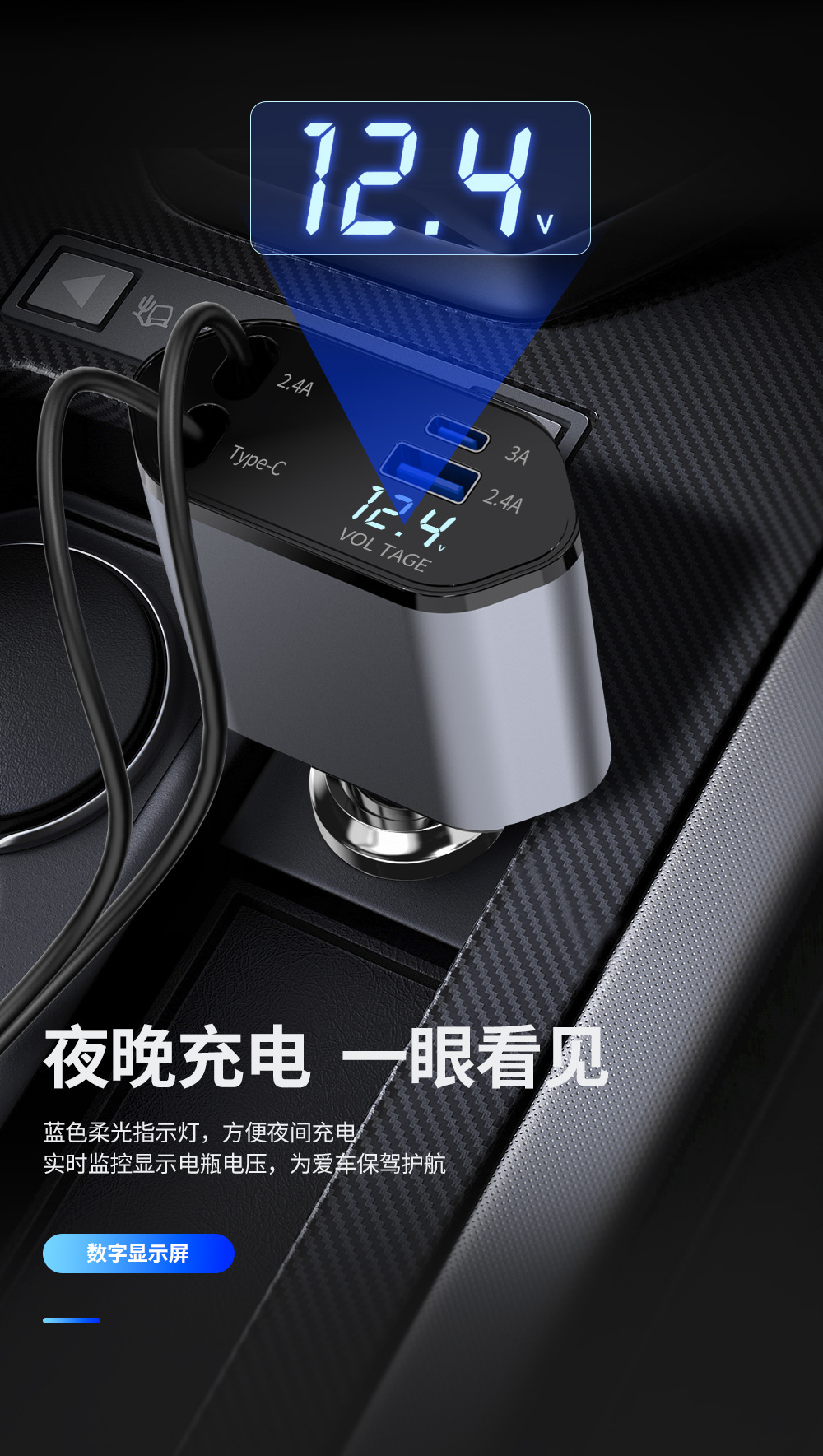 • C1 디지털 디스플레이 차량용 충전기(Apple + TPC 텔레스코픽 케이블)