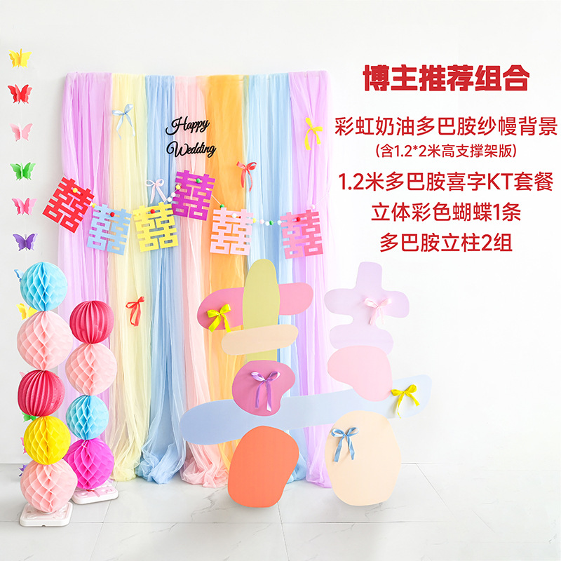 결혼식 레이아웃 도파민 kt 보드 행복한 단어 색상 행복 한 단어 결혼식 무지개 크림 도파민 거즈 커튼 배경 벽스토어 가기