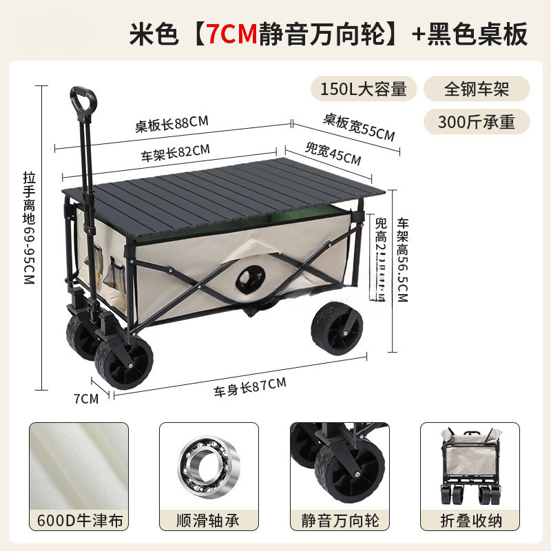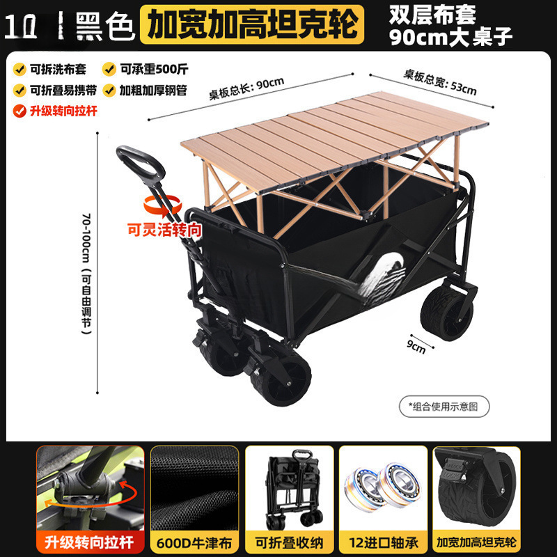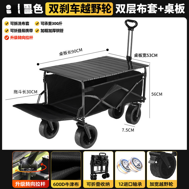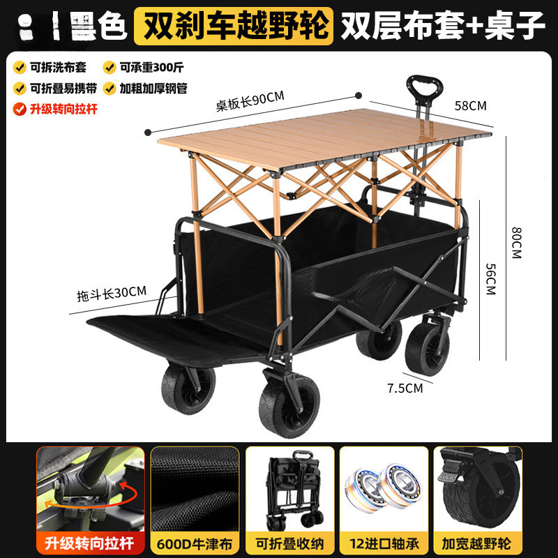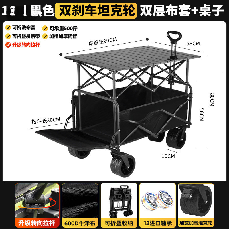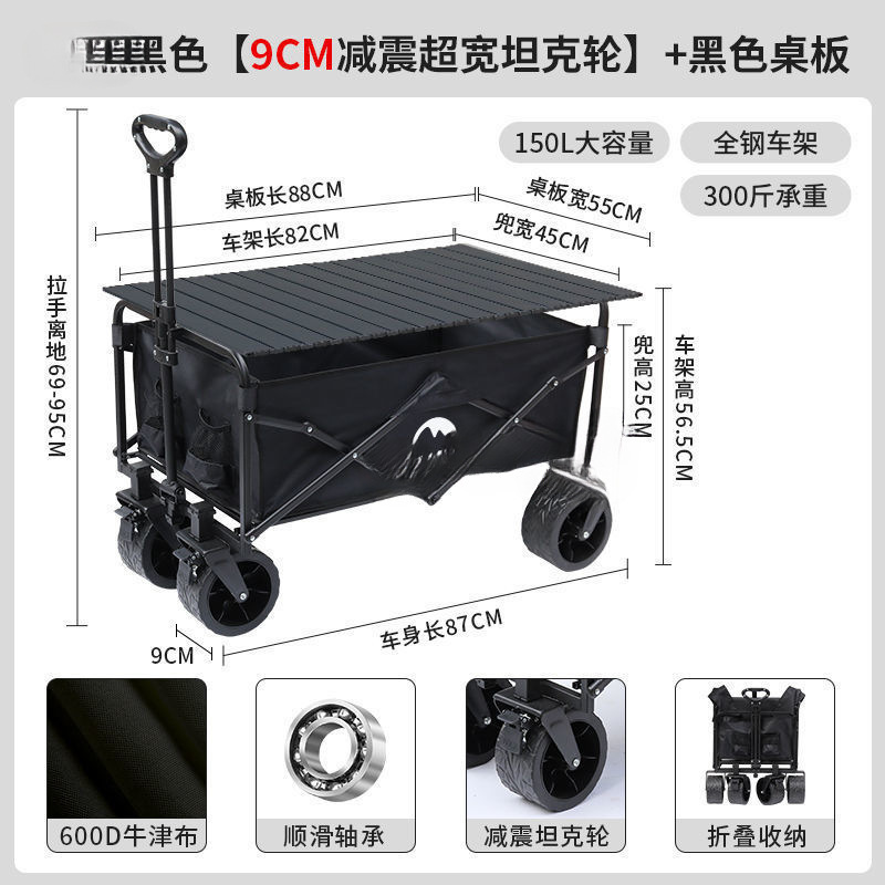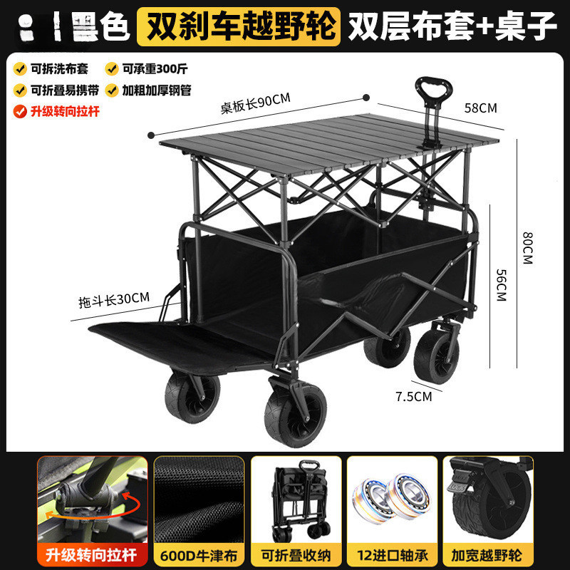 • 블랙 [이중 두꺼운 옥스포드 천] - 대형 / 8inch 오프로드 휠 / 더블 브레이크 / 티핑 버킷 스타일 + 블랙 테이블