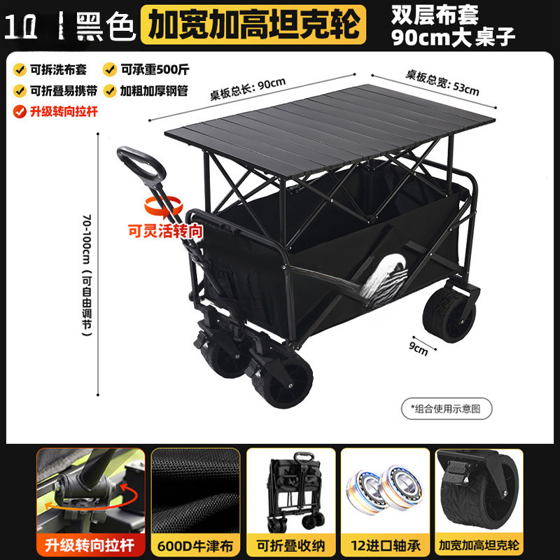• 블랙 [이중 두꺼운 옥스포드 천] - 상단 구성 / 10inch 탱크 휠 / 더블 브레이크 + 강화된 블랙 테이블