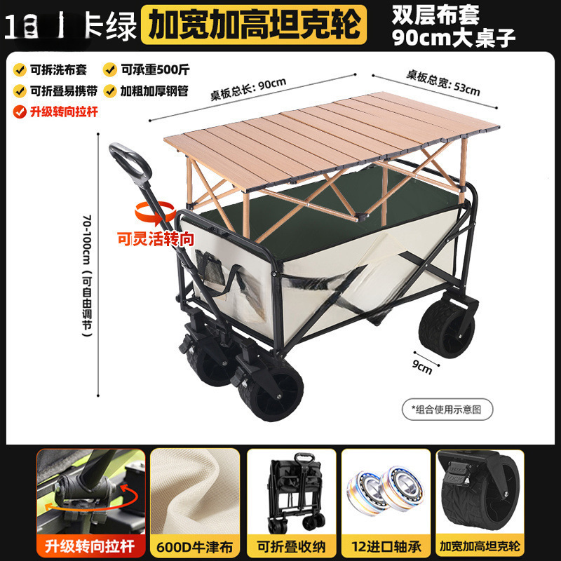 • 카드 그린 [이중 두꺼운 옥스포드 천] - 업그레이드/ 8inch 오프로드 휠/더블 브레이크 + 강화된 나뭇결 테이블