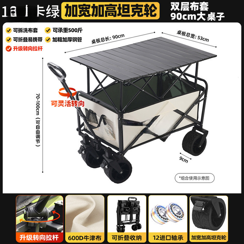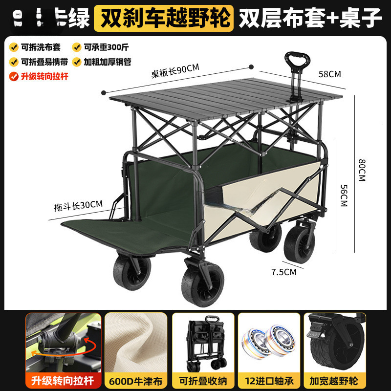 • 카드 그린 [이중 두꺼운 옥스포드 천] - 업그레이드/ 8inch 오프로드 휠/더블 브레이크 + 블랙 테이블
