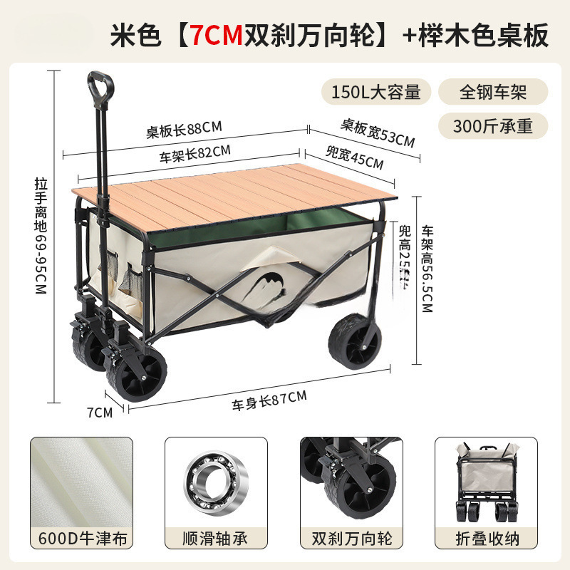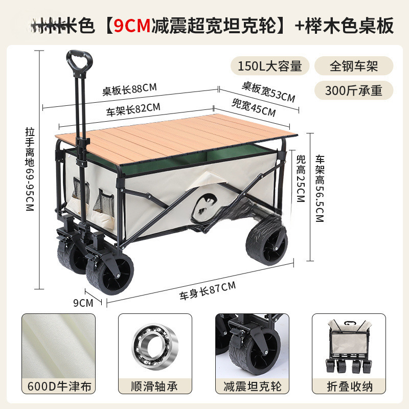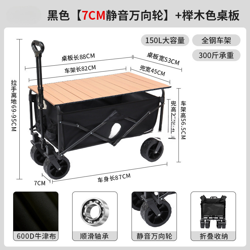 • 블랙 [이중 두꺼운 옥스포드 천] - 대형 / 8inch 오프로드 휠 / 더블 브레이크 / 티핑 버킷 스타일 + 나뭇결 테이블