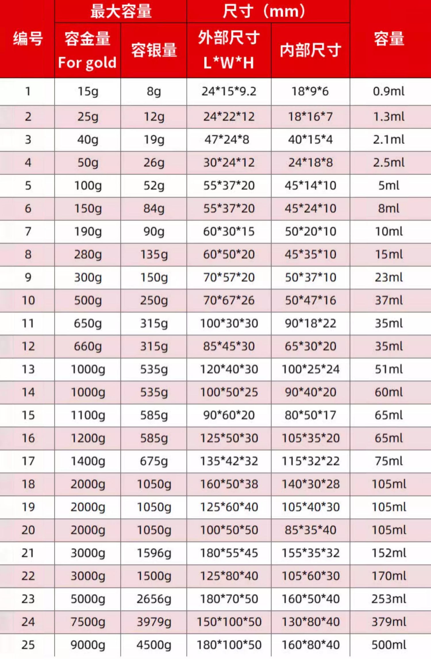 • 2kg 금-외부 160*50*38 및 내부 140*30*28