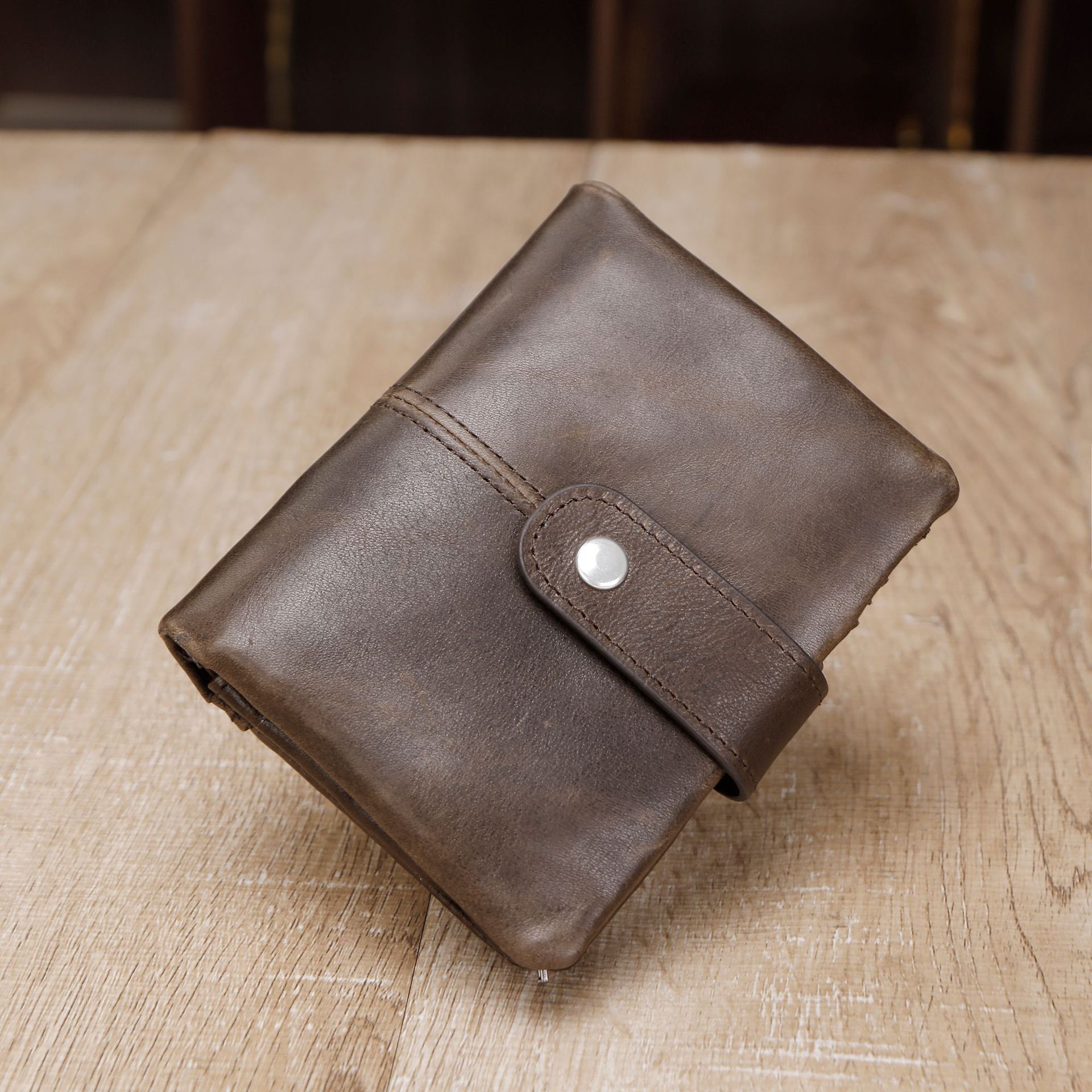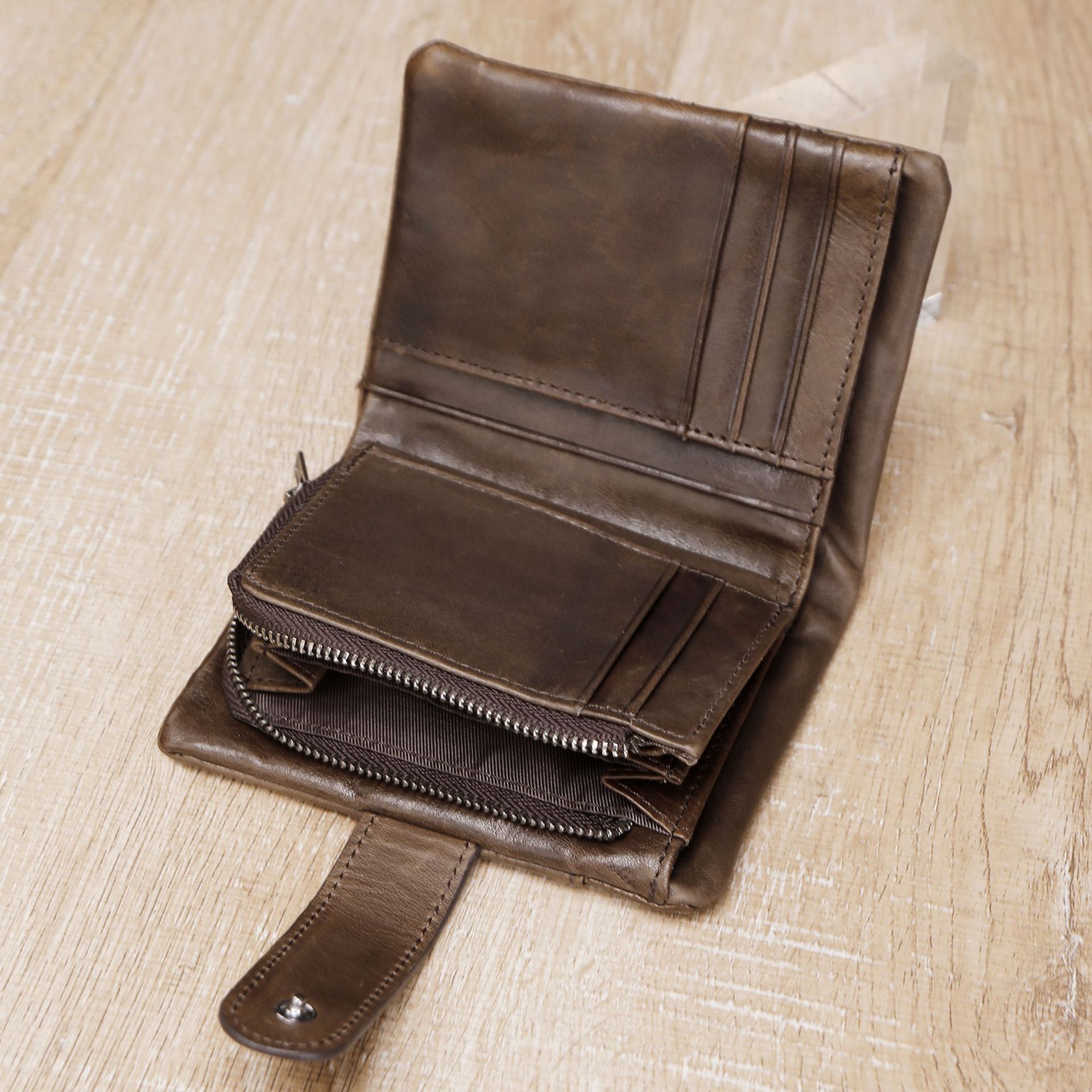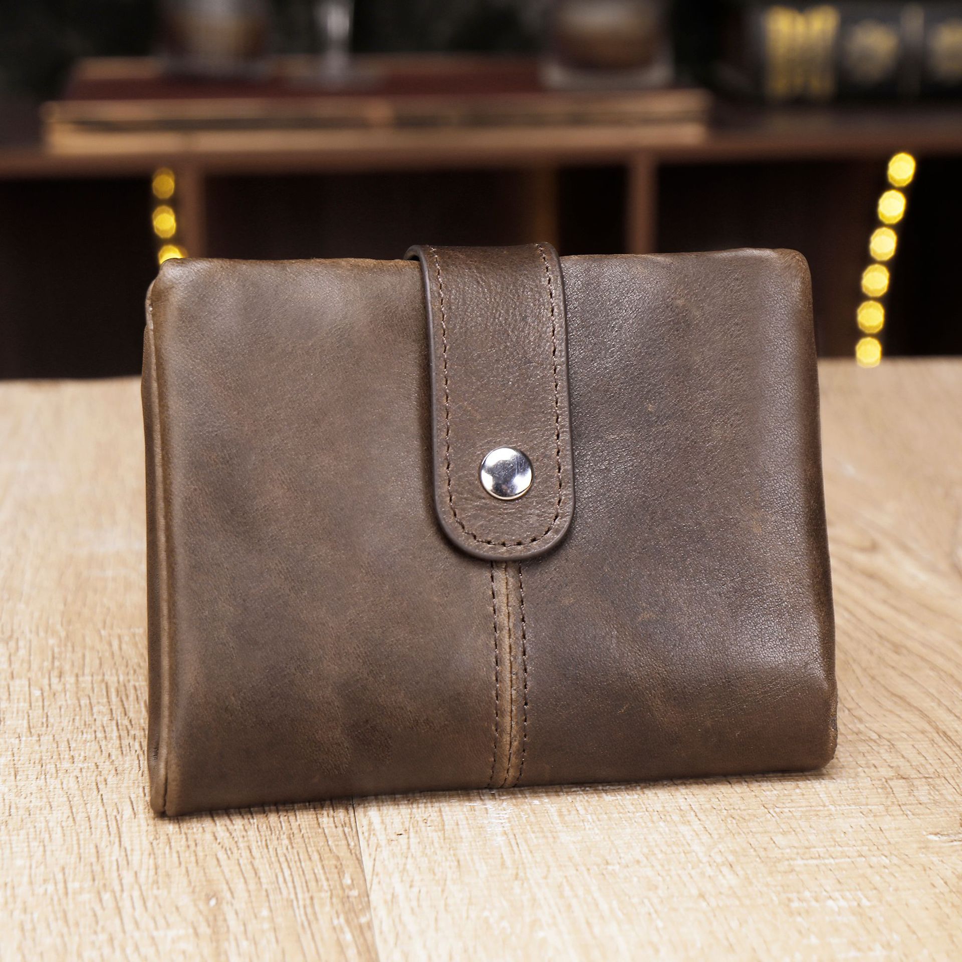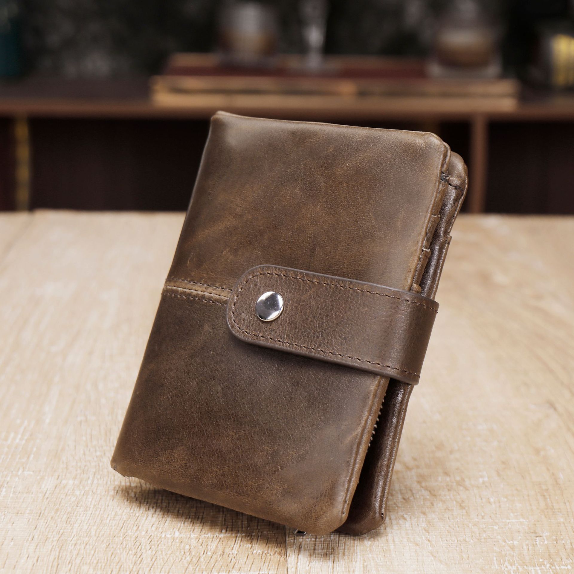 레트로 다기능 정품 가죽 지갑, 동전 카드 홀더, 1층 소가죽 버클, 트렌디한 남성용 지갑, 멀티 카드 슬롯, 짧고 부드러운스토어 가기