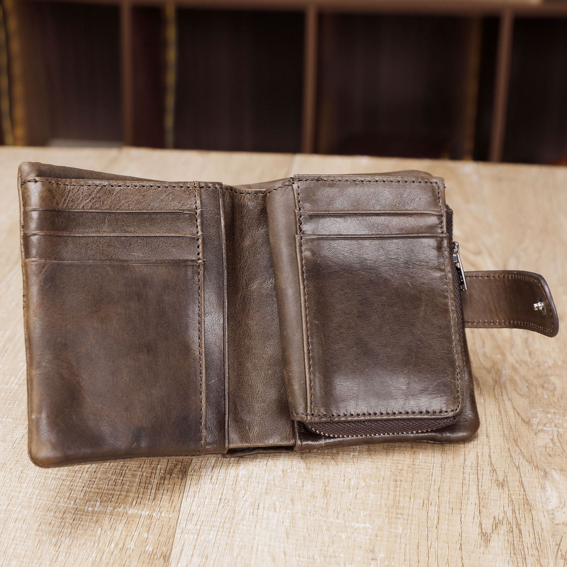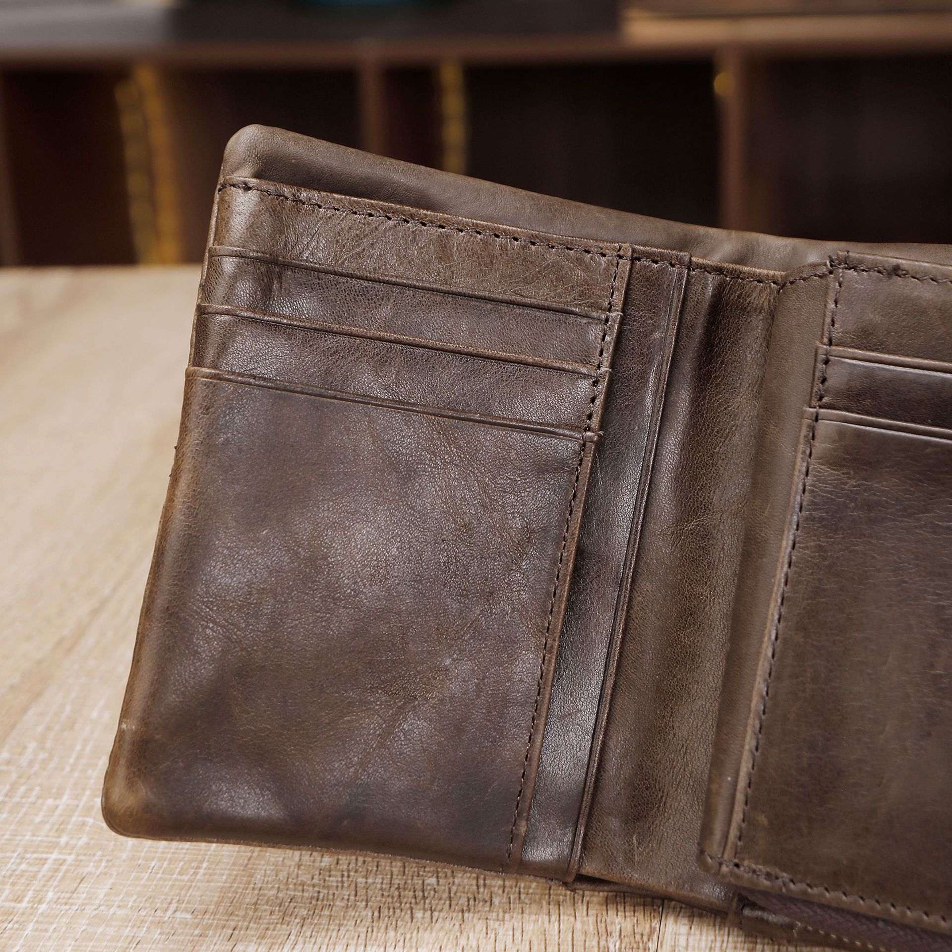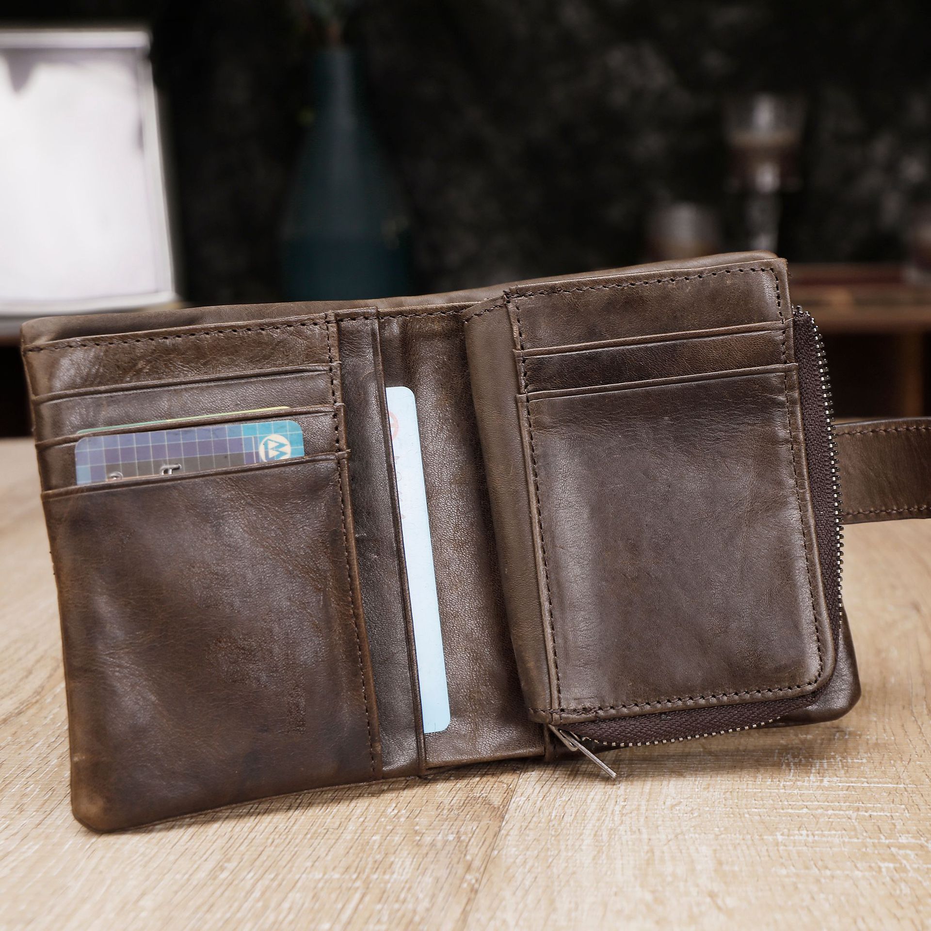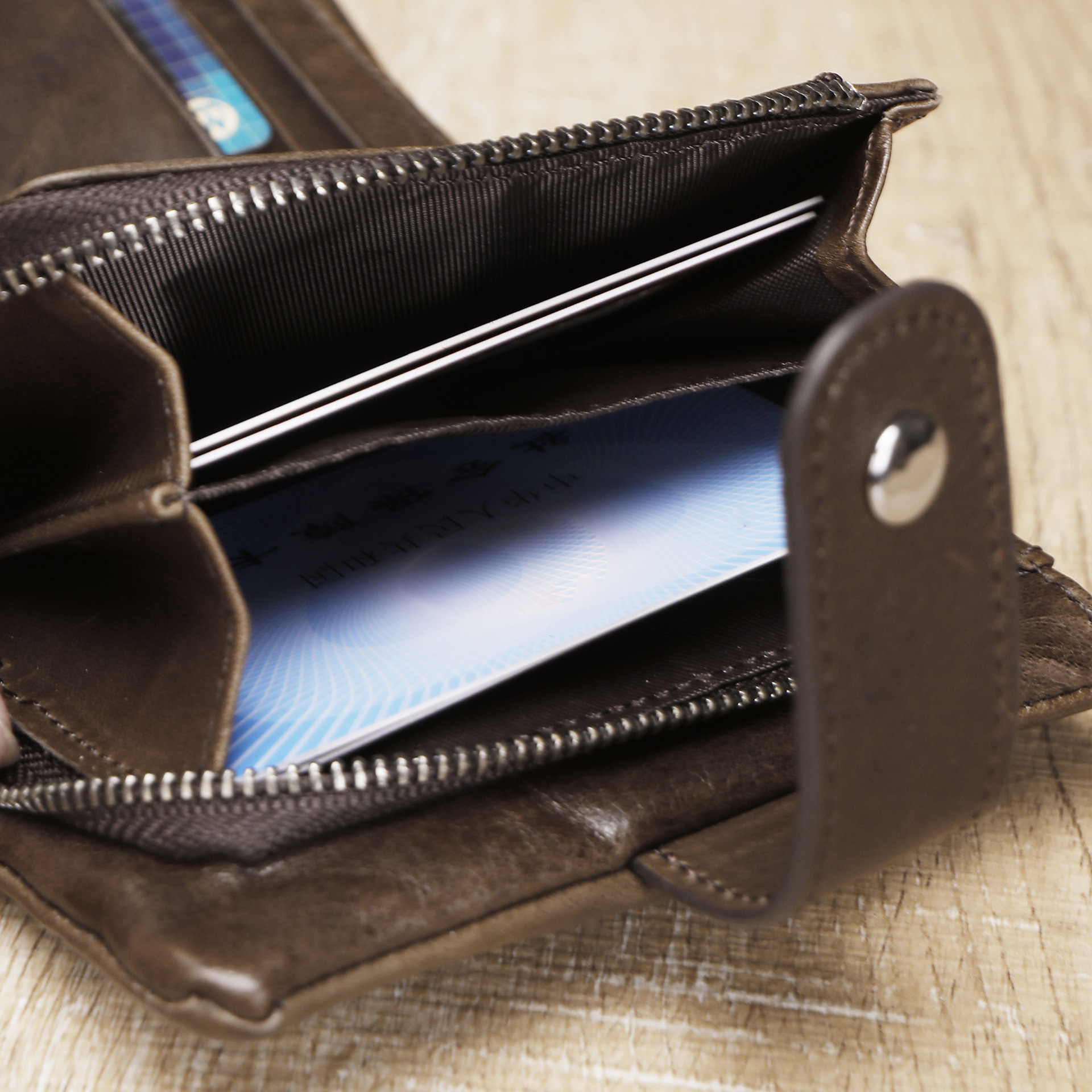 레트로 다기능 정품 가죽 지갑, 동전 카드 홀더, 1층 소가죽 버클, 트렌디한 남성용 지갑, 멀티 카드 슬롯, 짧고 부드러운스토어 가기