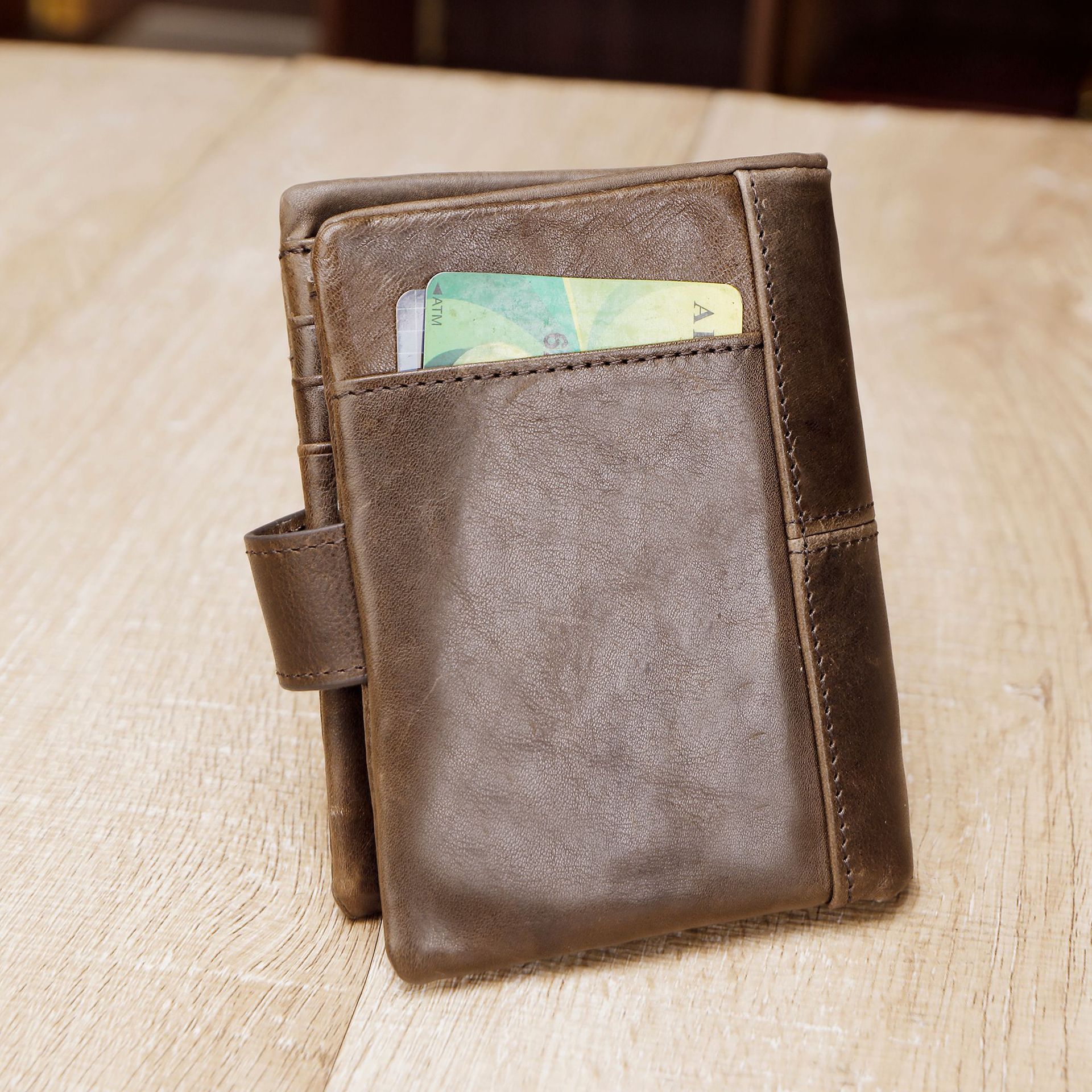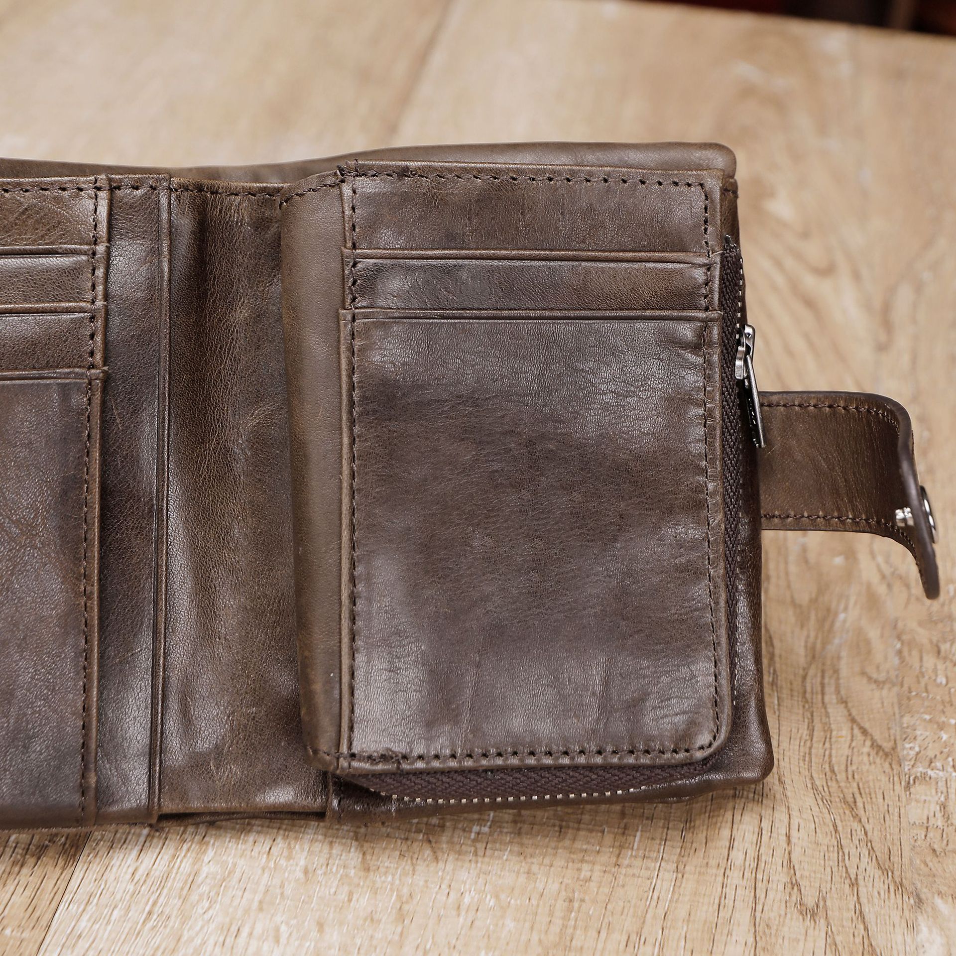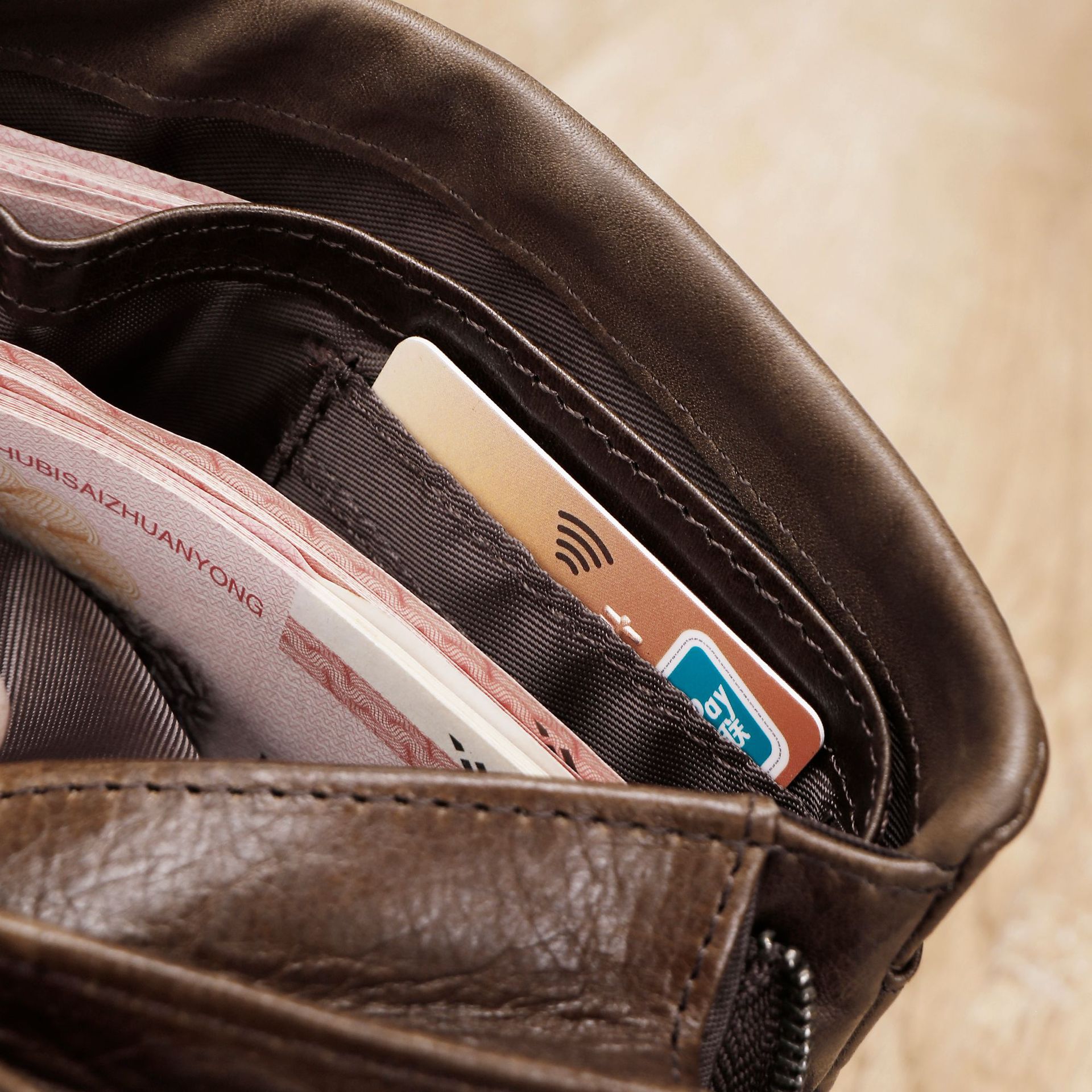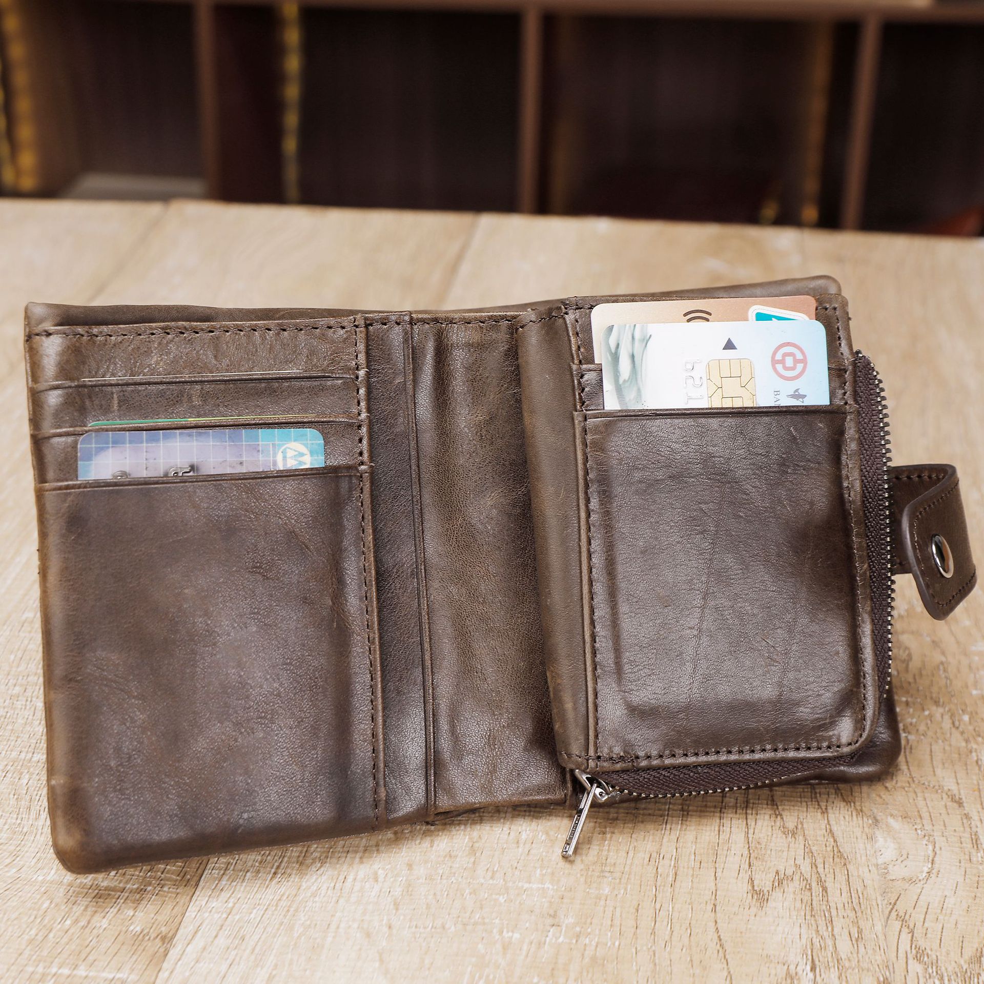 레트로 다기능 정품 가죽 지갑, 동전 카드 홀더, 1층 소가죽 버클, 트렌디한 남성용 지갑, 멀티 카드 슬롯, 짧고 부드러운스토어 가기