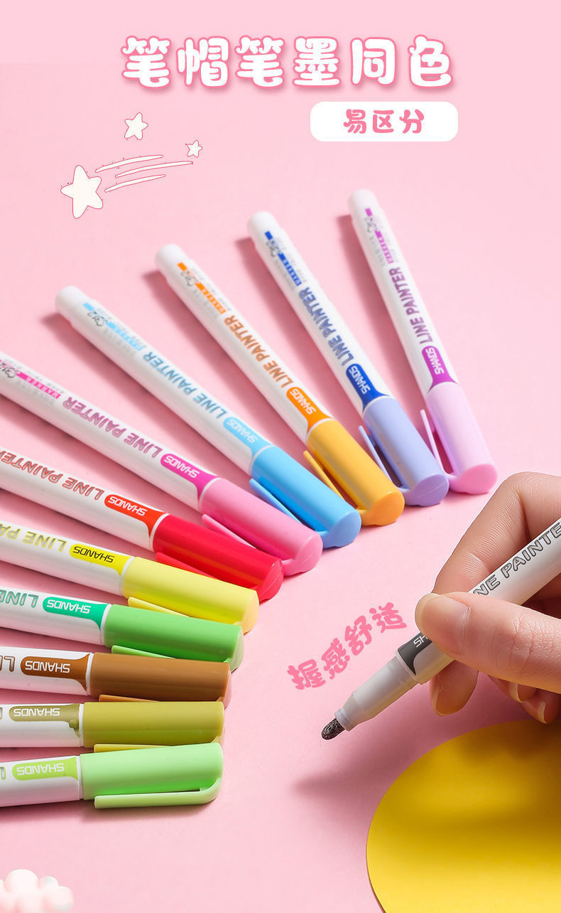 더블 라인 아웃라인 펜 12색 세트 컬러 마커 펜 페인팅 핸드북 펜 학생 마킹 펜 고가치스토어 가기