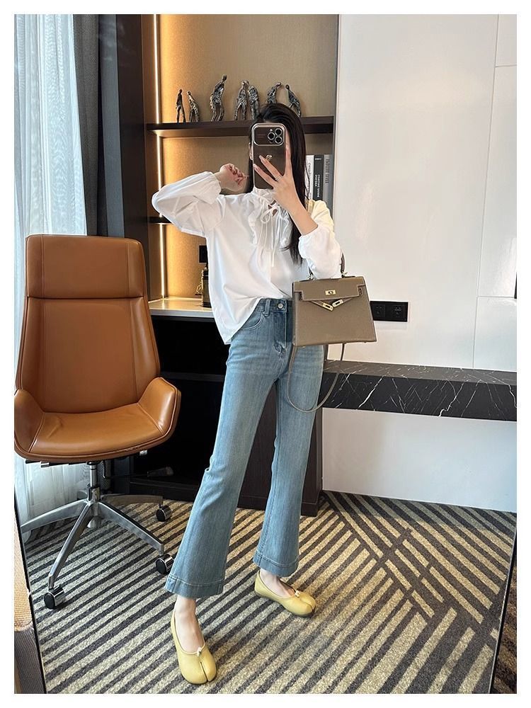 여성용 레트로 부츠컷 청바지 2025 봄 여름 신상 스트레치 하이웨이스트 슬리밍 9부 말굽 플레어 팬츠스토어 가기