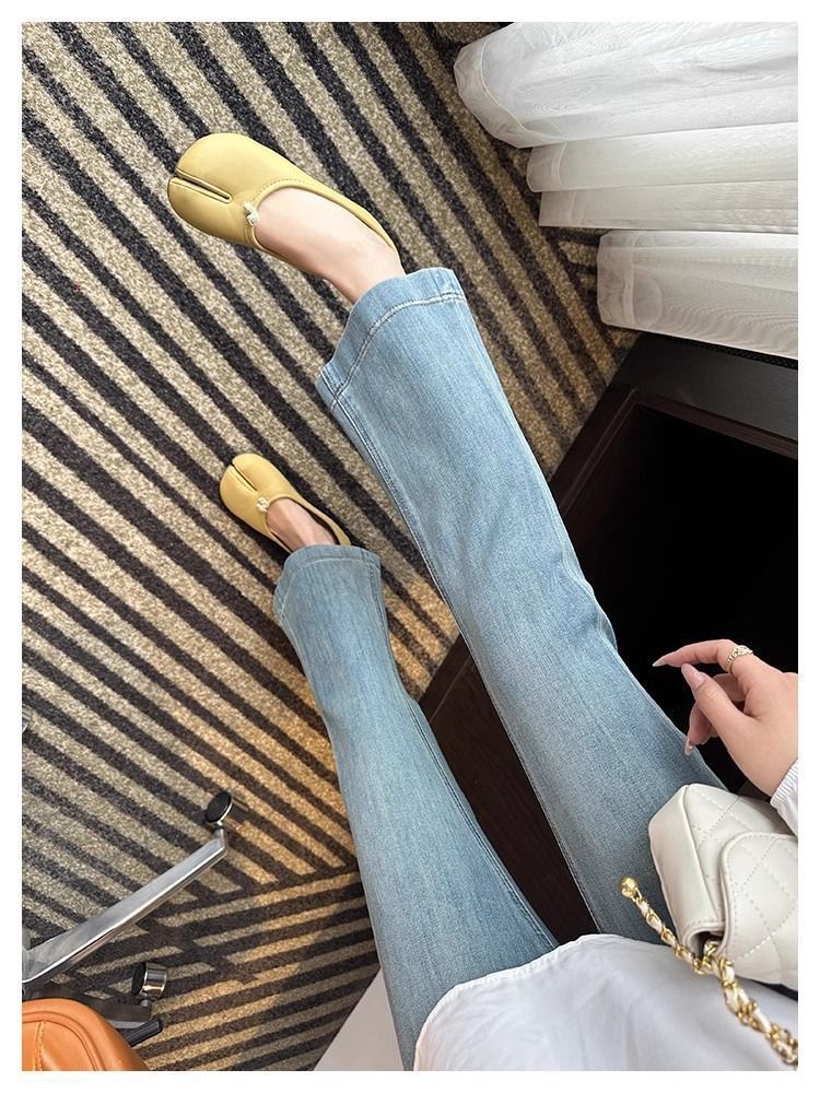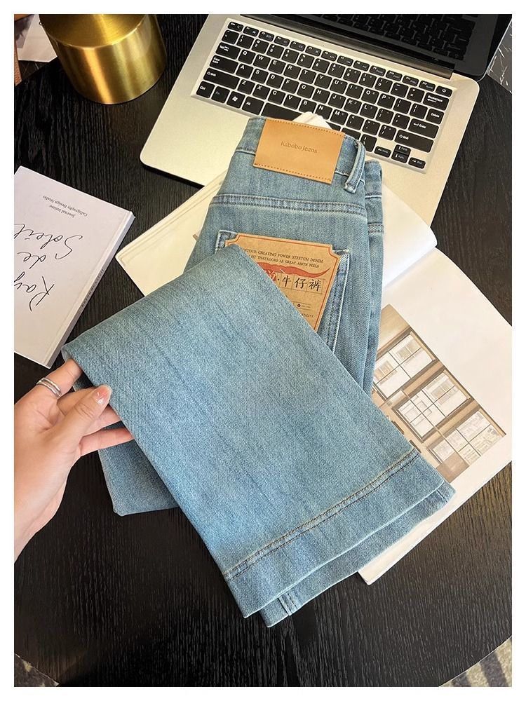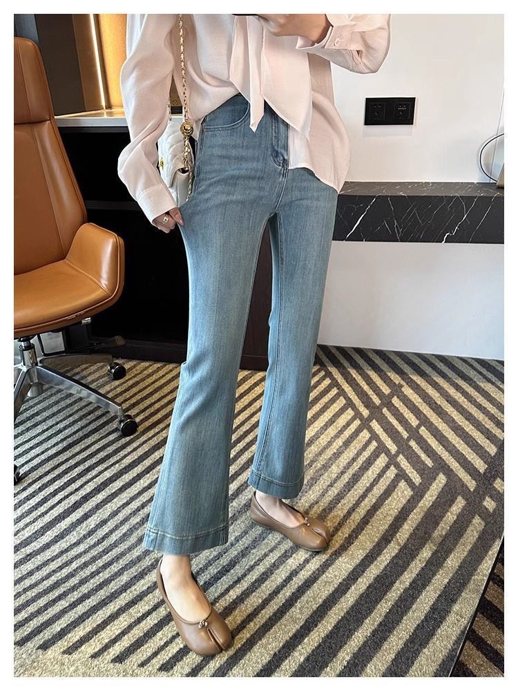 여성용 레트로 부츠컷 청바지 2025 봄 여름 신상 스트레치 하이웨이스트 슬리밍 9부 말굽 플레어 팬츠