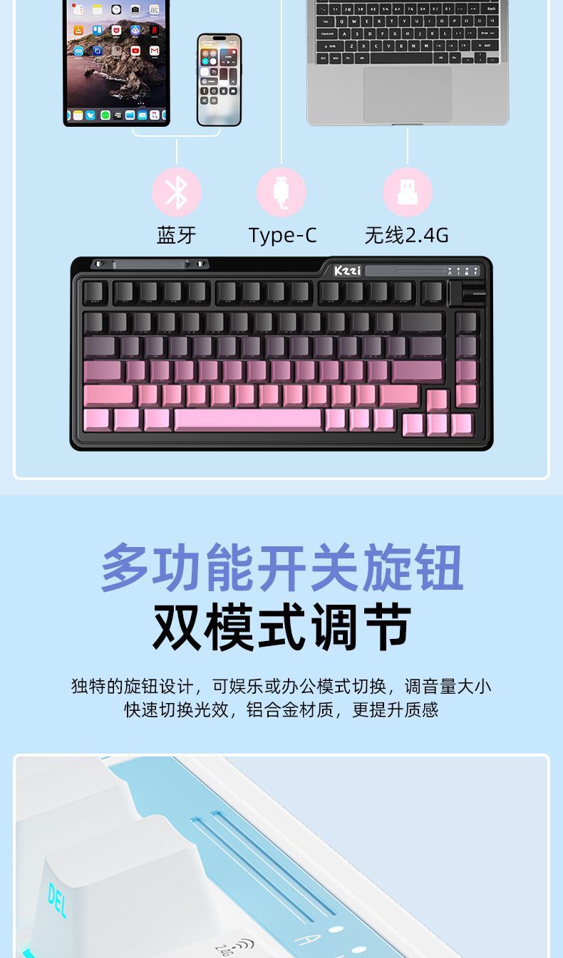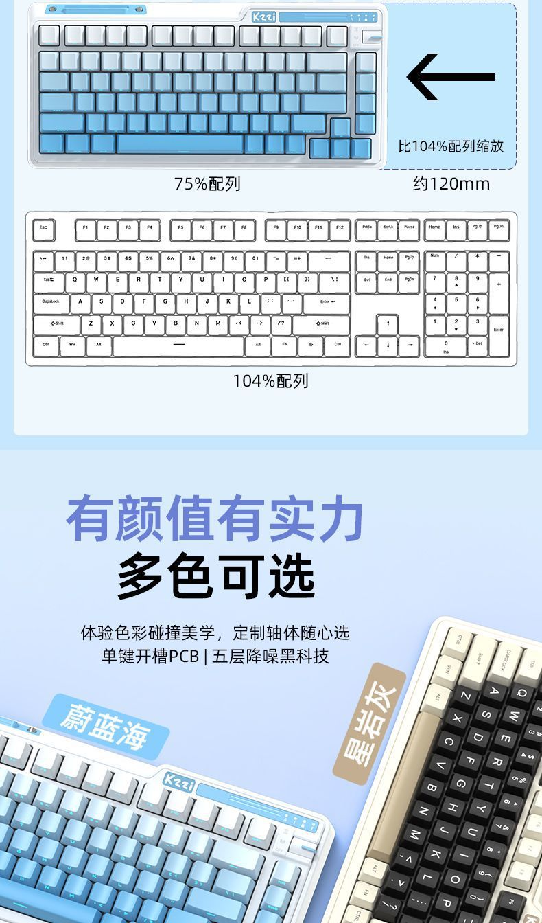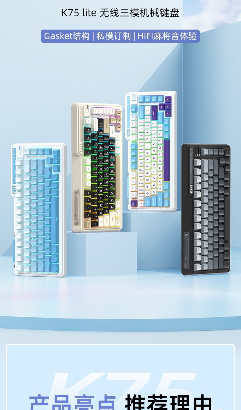 KZZI Kezhi K75Lite 3 모드 기계 키보드 높은 색상 가치 무선 사무실 전자 경쟁 게임 RGB 사용자 정의스토어 가기