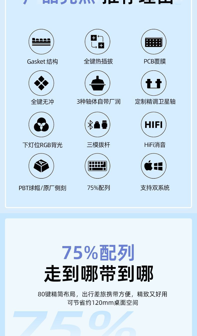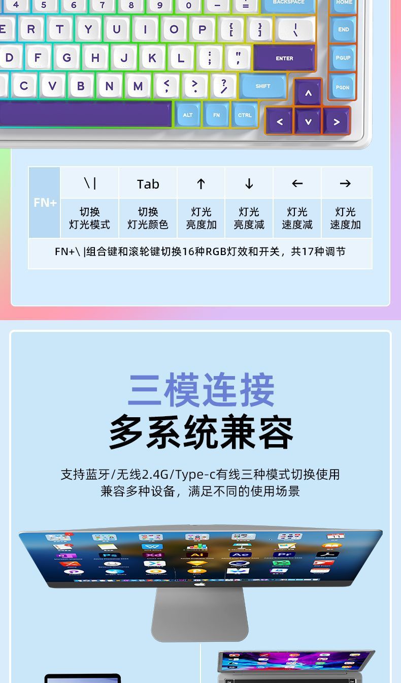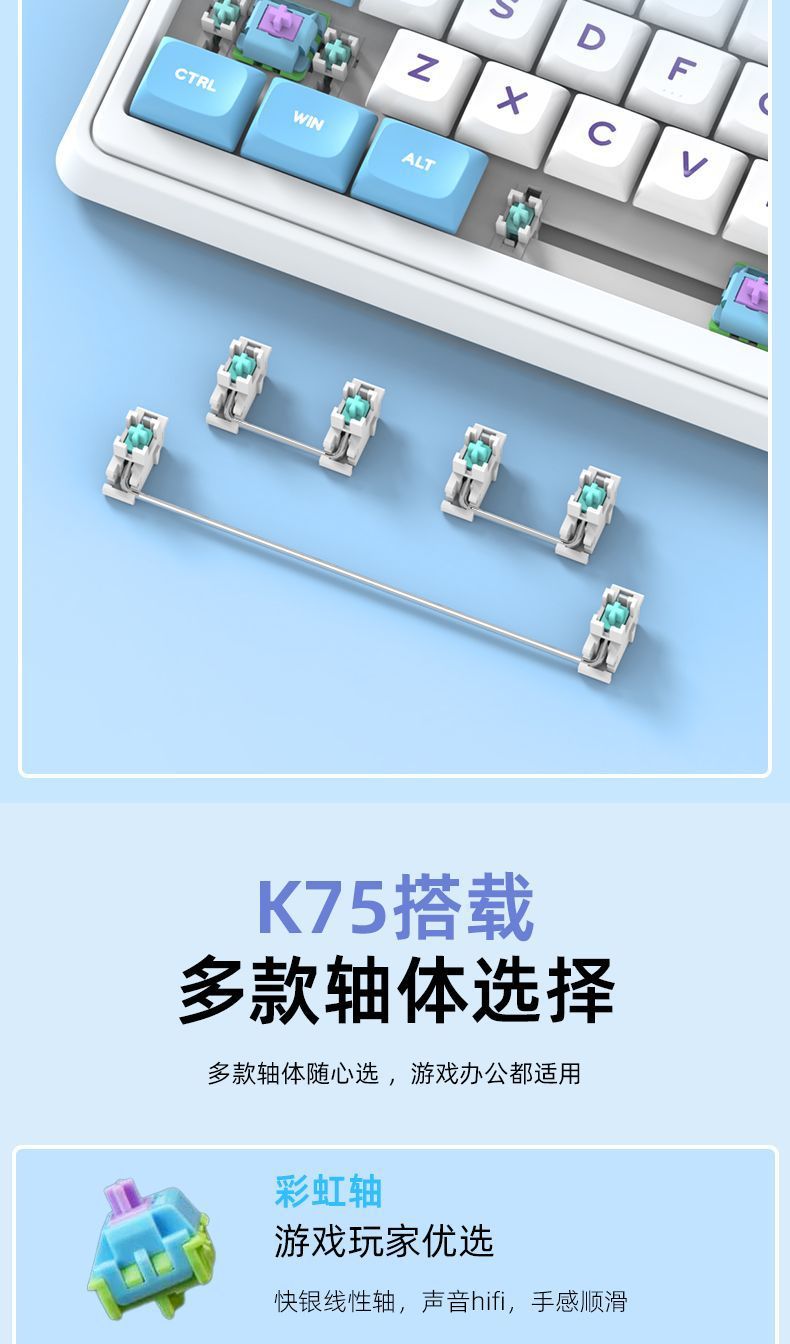 KZZI Kezhi K75Lite 3 모드 기계 키보드 높은 색상 가치 무선 사무실 전자 경쟁 게임 RGB 사용자 정의스토어 가기