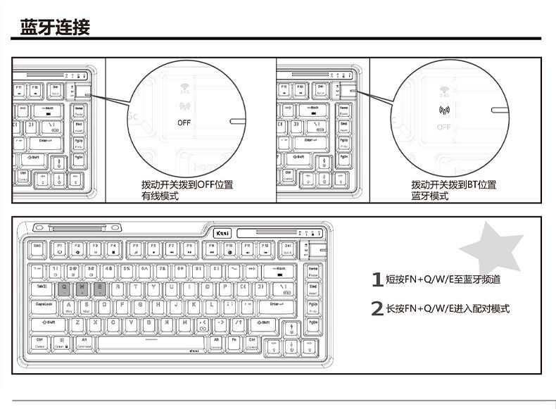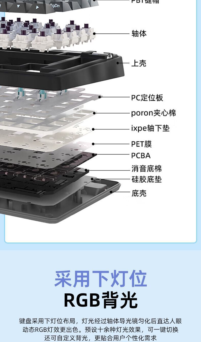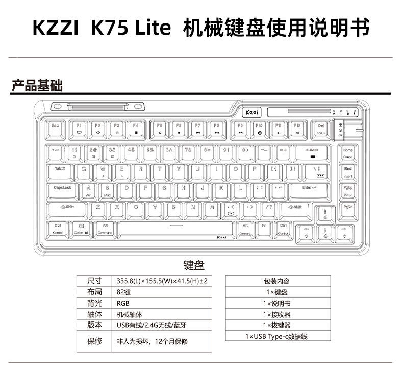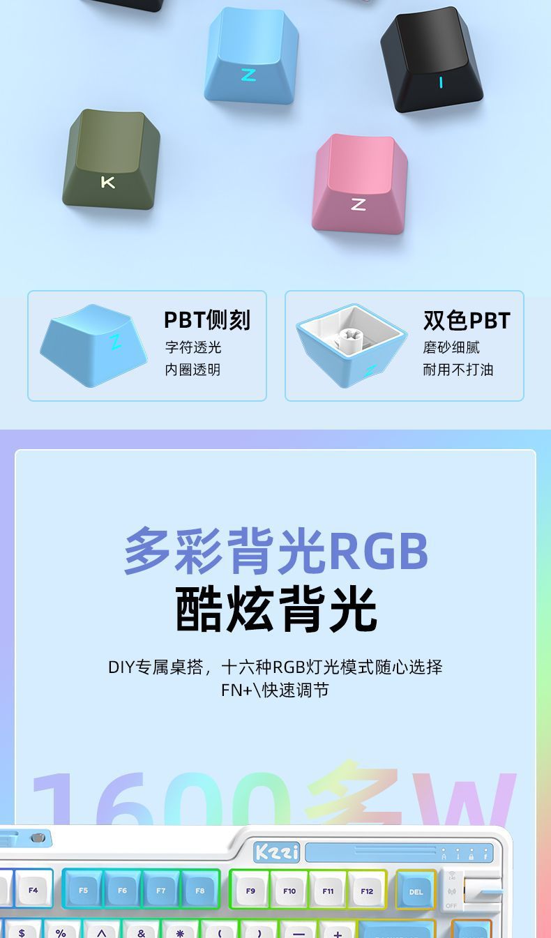 KZZI Kezhi K75Lite 3 모드 기계 키보드 높은 색상 가치 무선 사무실 전자 경쟁 게임 RGB 사용자 정의