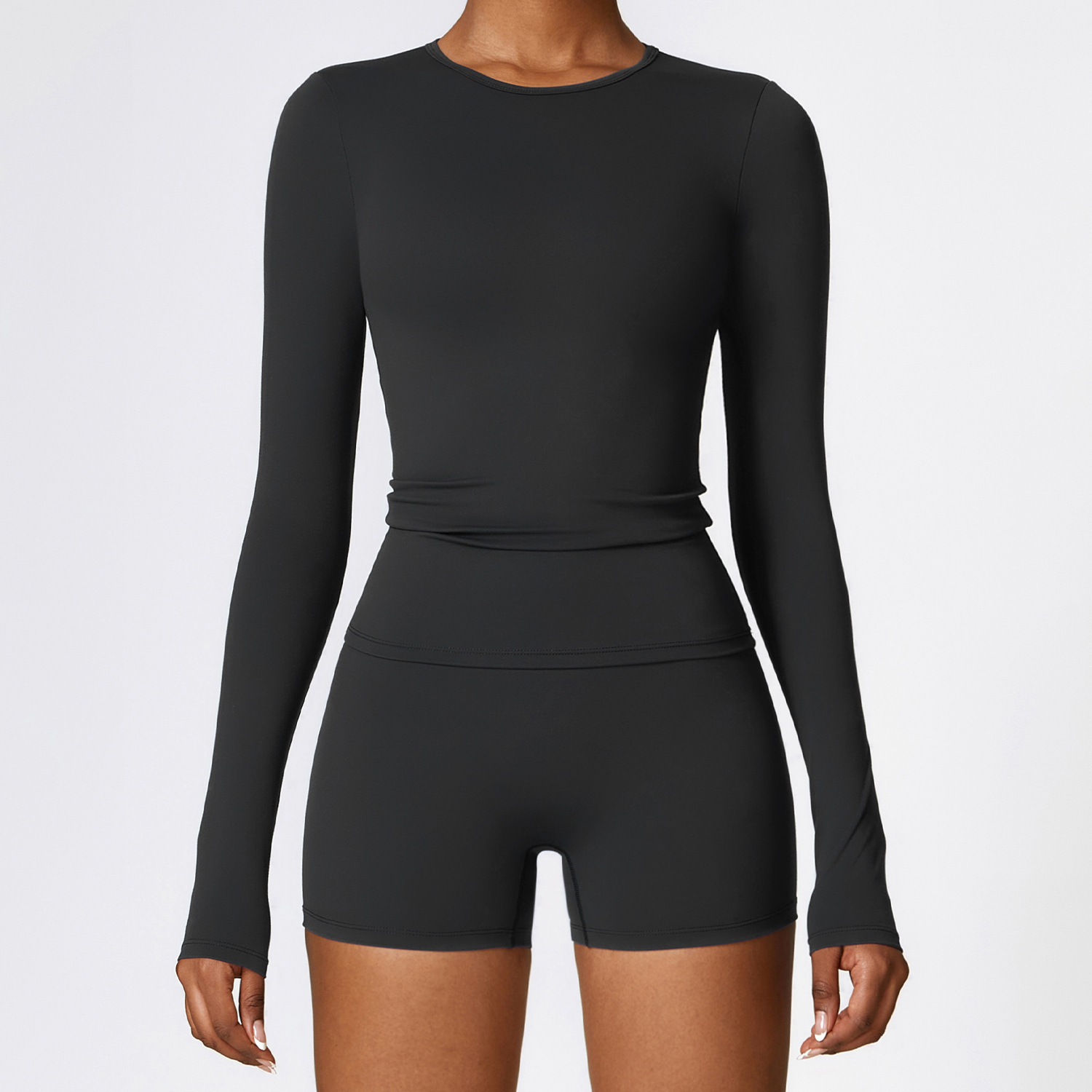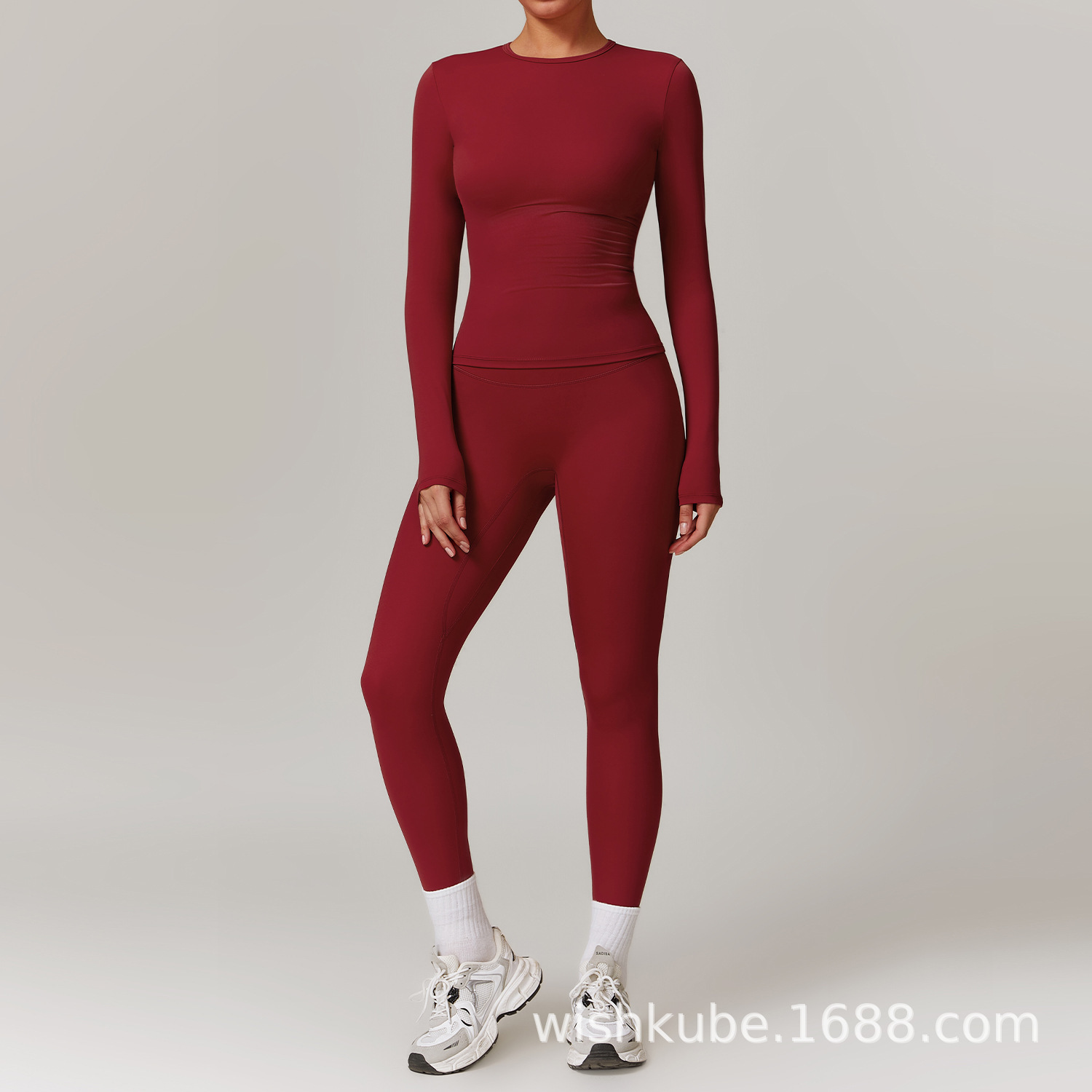 국경 간 여성 양면 샌딩 꽉 끼는 통기성 단색 훈련 요가 의류 스포츠 달리기 피트니스 의류 2515