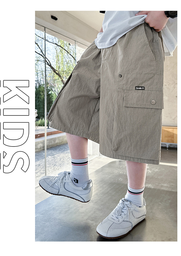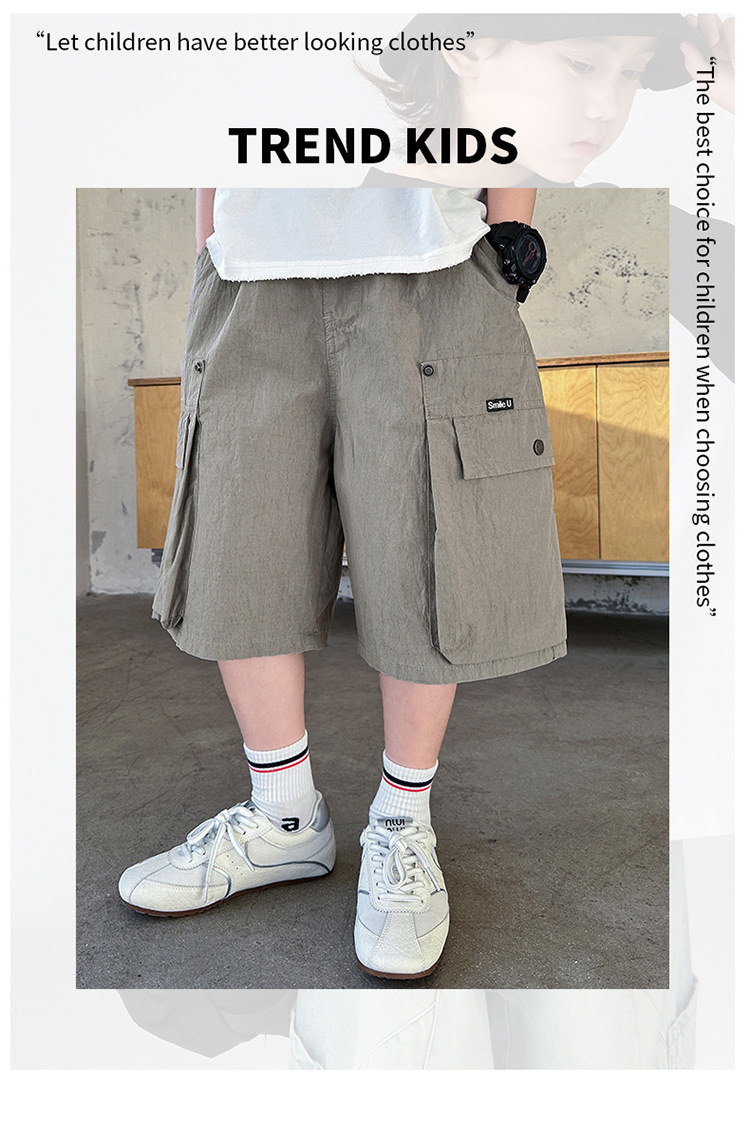 여름 어린이 바지 소년 바지 2025 새로운 큰 어린이 여름 패션 포켓 작업 반바지 도매스토어 가기