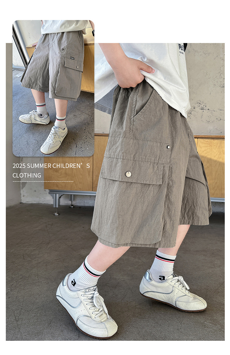 여름 어린이 바지 소년 바지 2025 새로운 큰 어린이 여름 패션 포켓 작업 반바지 도매