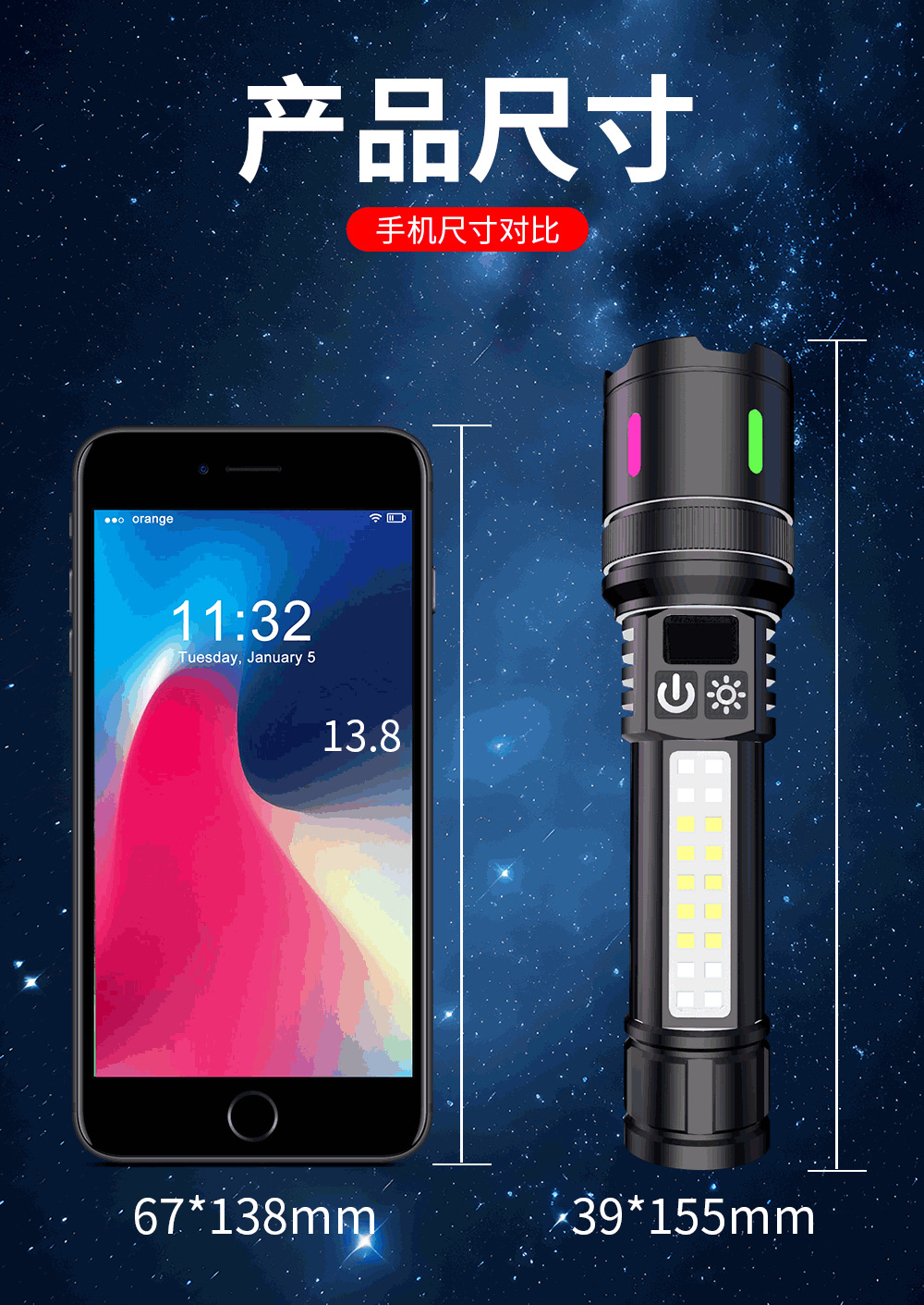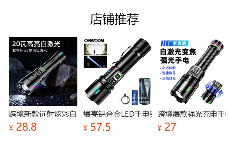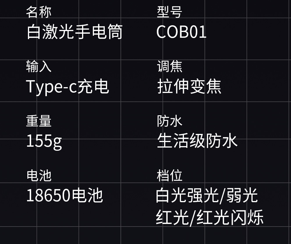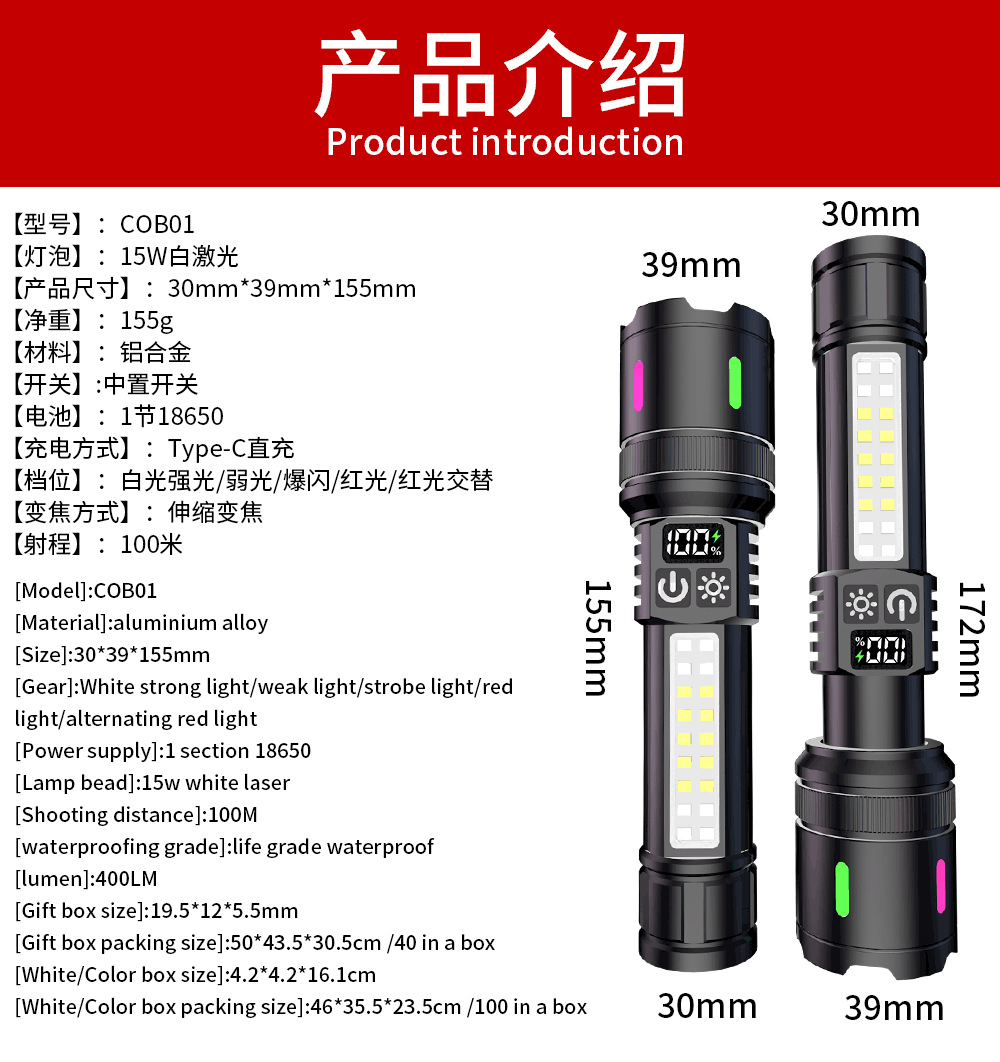 미니 다기능 크로스보더 신형 화이트 레이저 COB 손전등 작업등 텔레스코픽 줌 장거리 강광 손전등스토어 가기