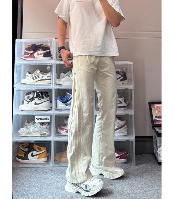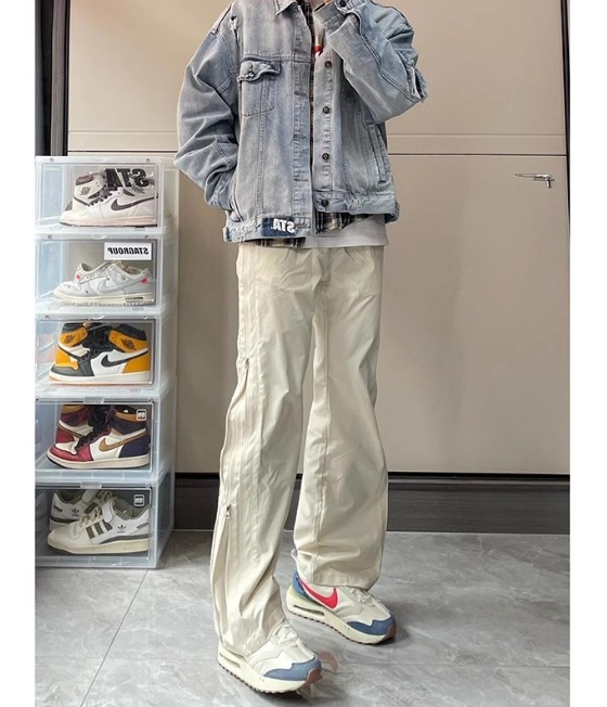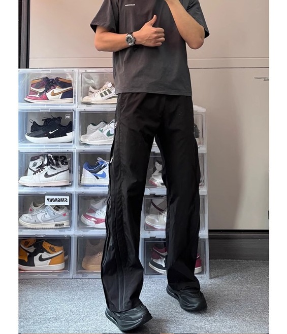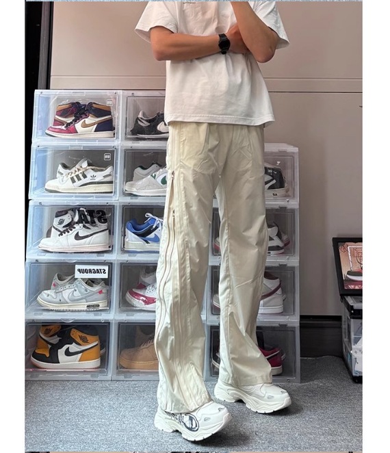 여름철 남성용 사이드 지퍼 마이크로 플레어 팬츠, 방수 속건성 공수 바지, 핸섬 스트리트 하이킹 기능성 오버올스토어 가기