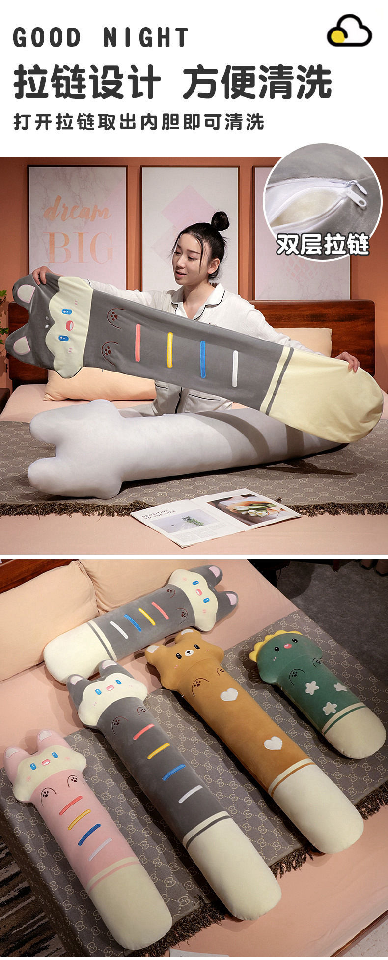 귀여운 긴 베개 소녀 잠자는 특수 침대 성인 클립 다리 사이드 슬리핑 아티팩트 어린이 베개 쿠션 이동식 및 세척 가능스토어 가기