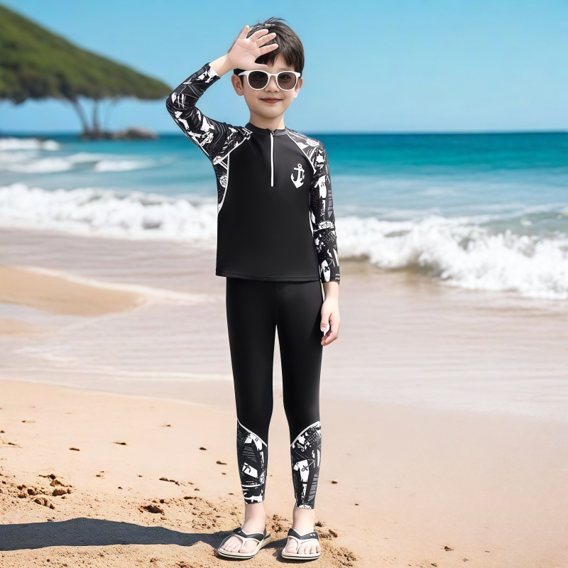 어린이 수영복 소년 중대형 어린이 소년 스플릿 자외선 차단제 긴팔 긴 바지 수영복 2025 새로운 수영 트렁크 장비스토어 가기