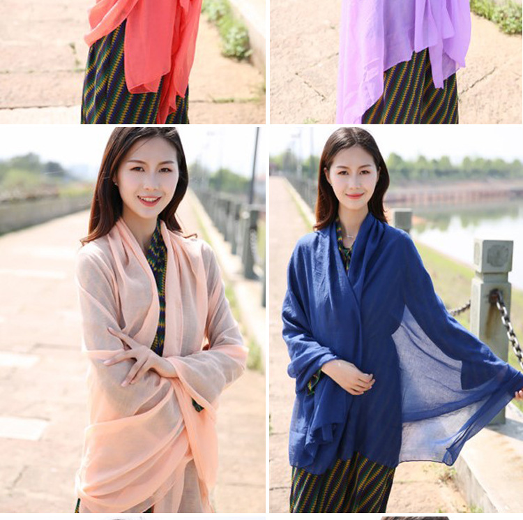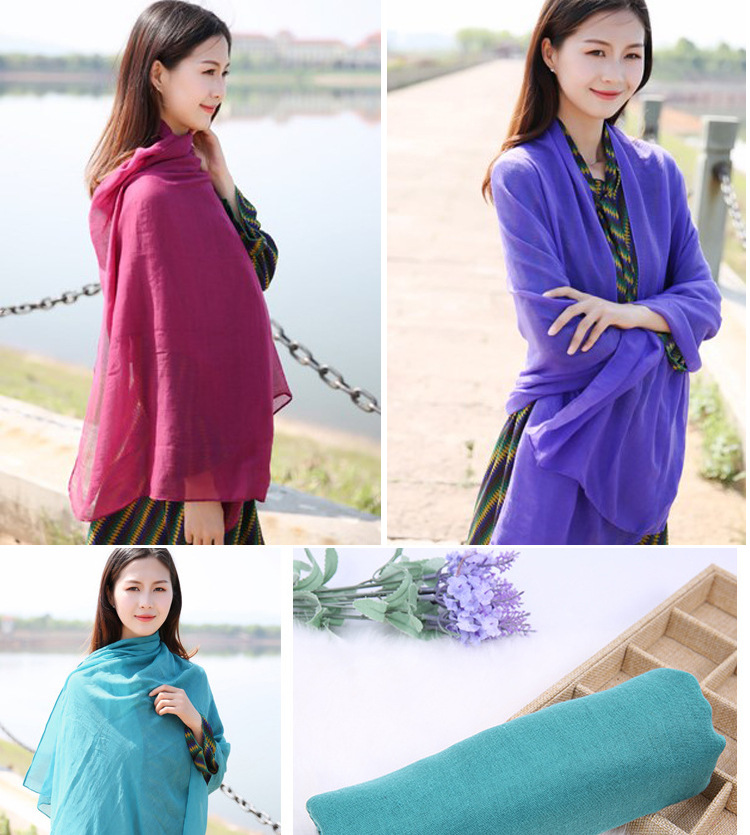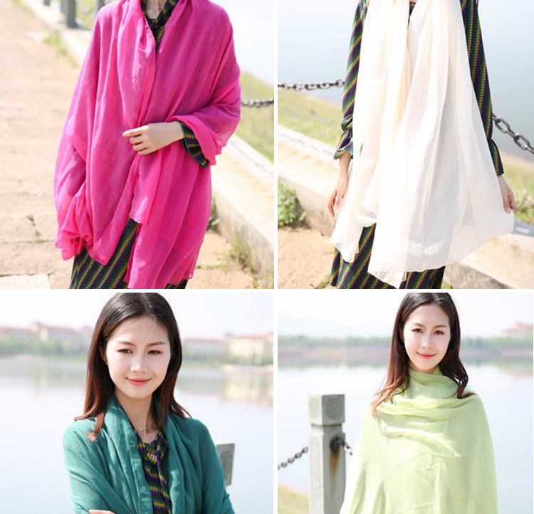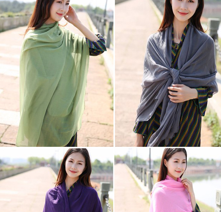 [복지] 확대 긴 목도리 스카프 이중 사용 여성 한국 단색 실크 스카프 따뜻한 비치 타월 거즈 타월
