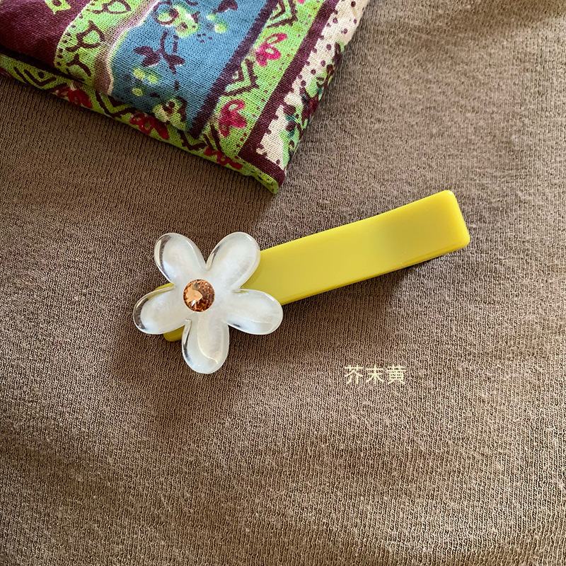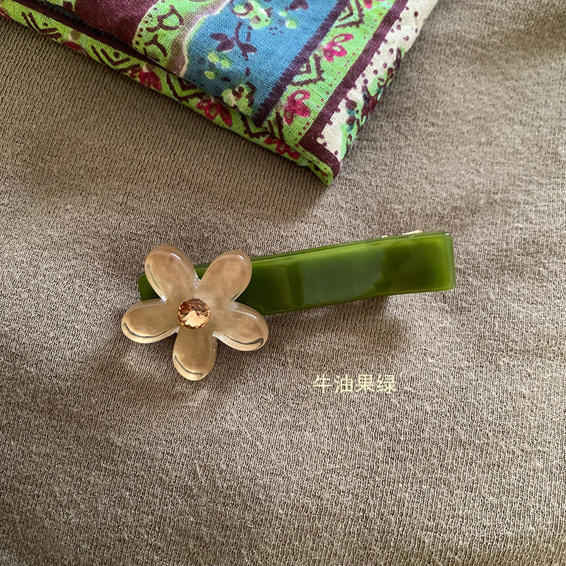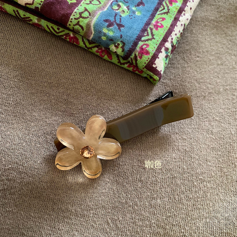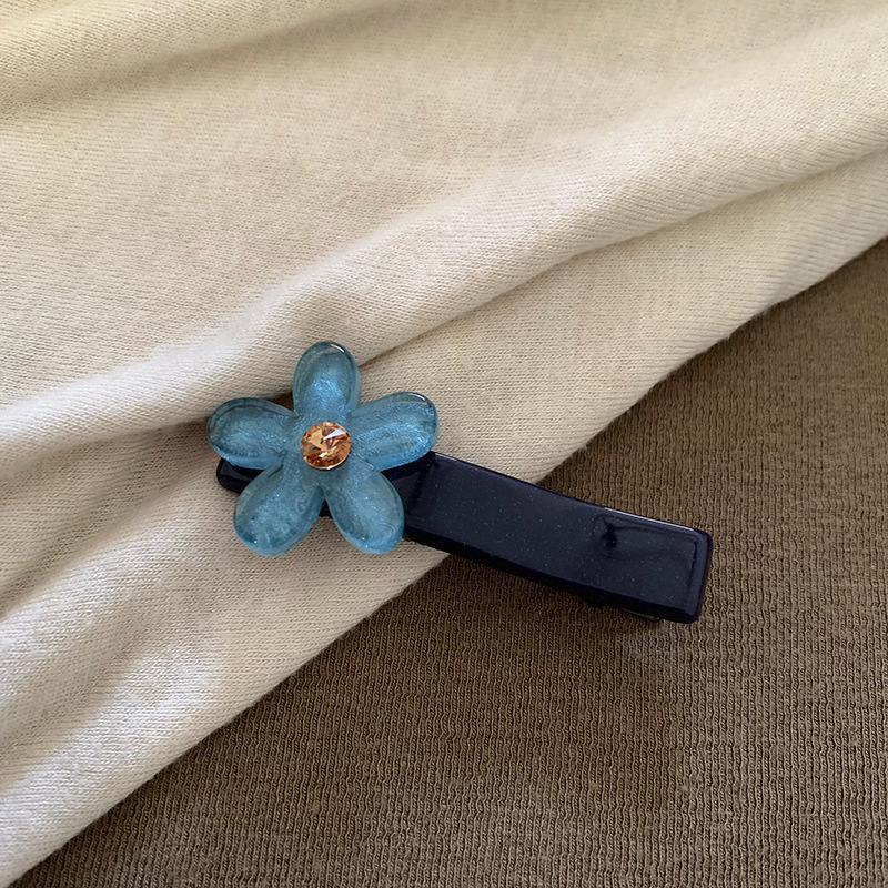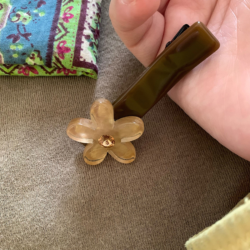 한국의 새로운 스타일 복고풍 패션 작은 신선한 모란디 달콤한 모조 다이아몬드 꽃 앞머리 사이드 클립 덕빌 클립 머리핀스토어 가기