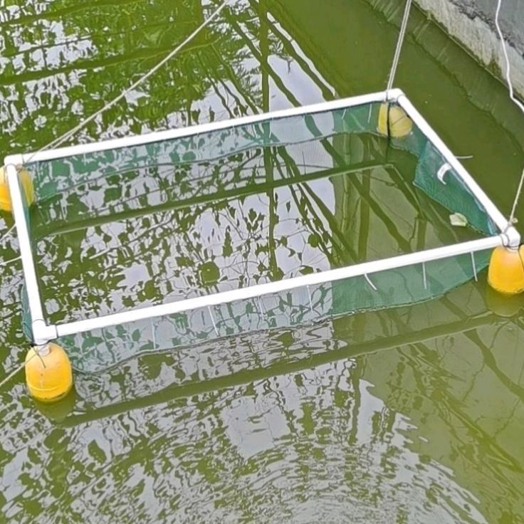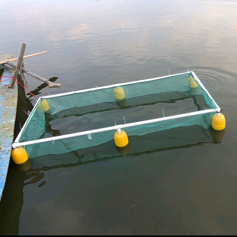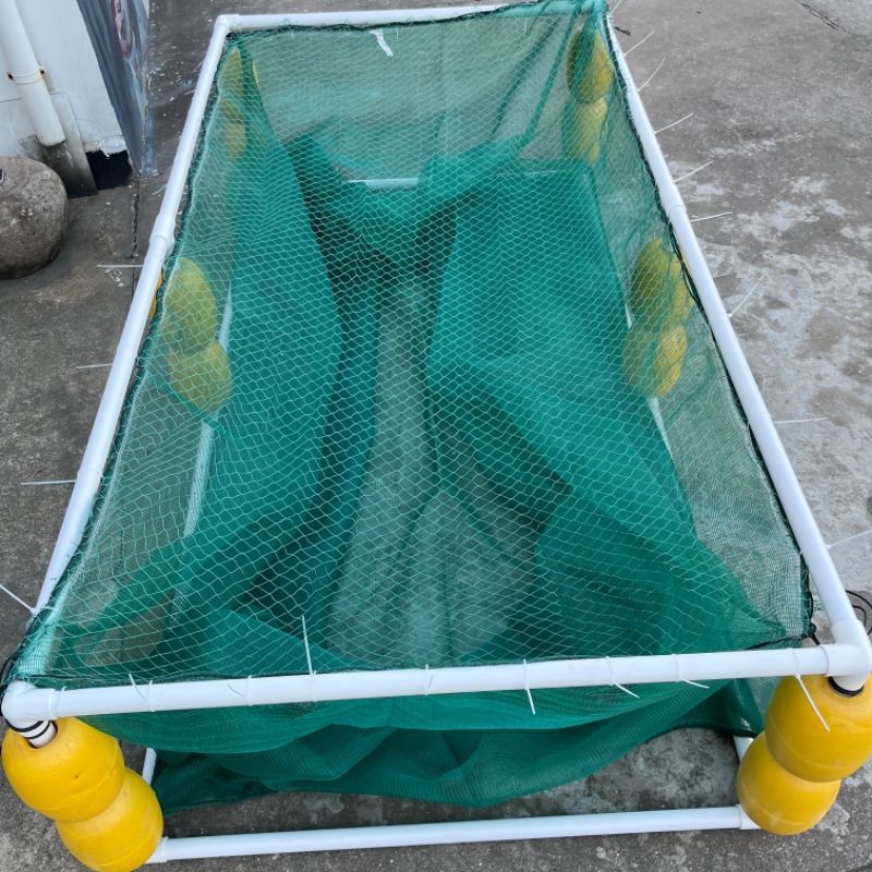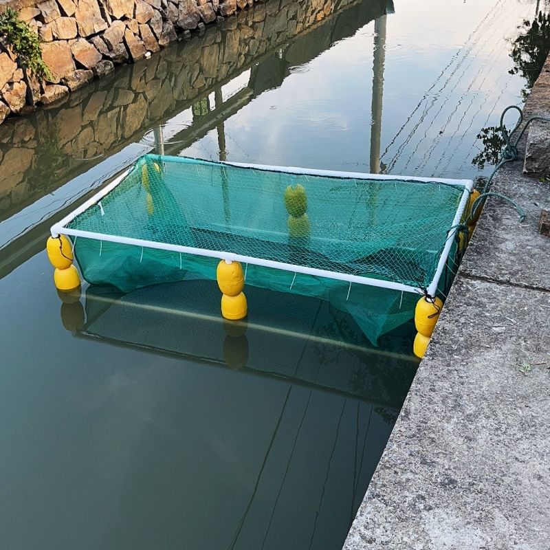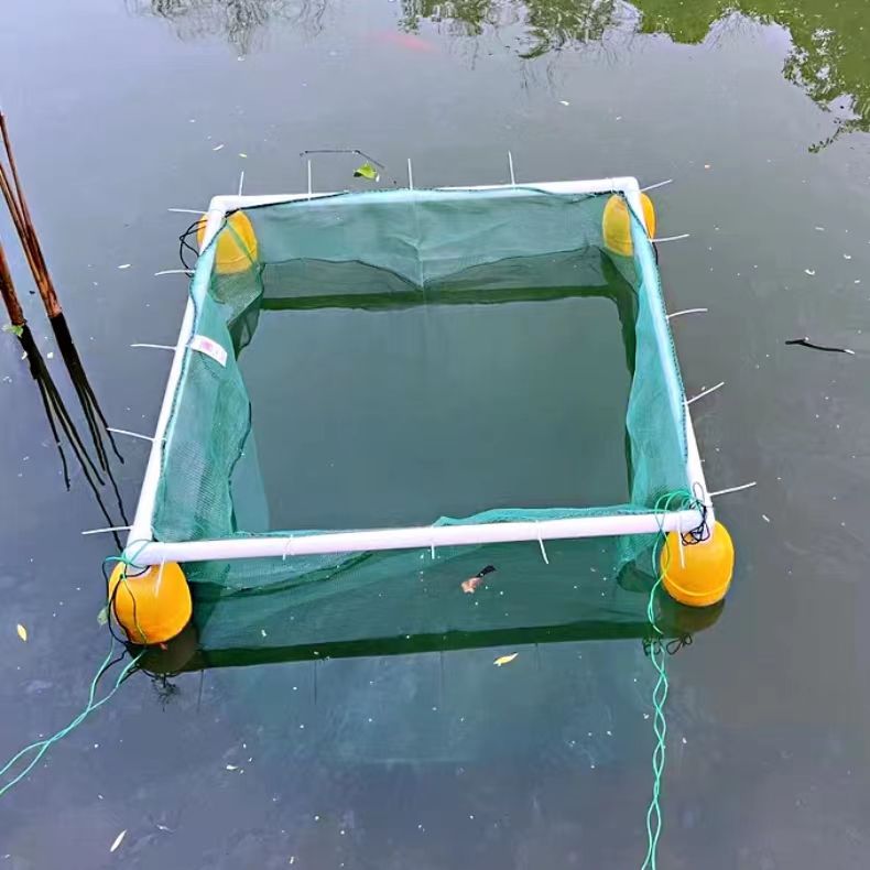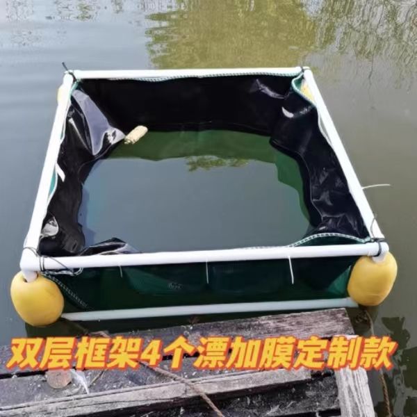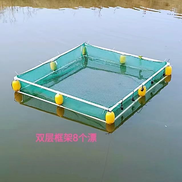 살아있는 물고기를 저장하고 물고기를 물고기 튀김 문화 그물 상자 덮개가있는 부동 그물 상자에 반환하기위한 프레임이있는 자동 서스펜션 풀 세트
