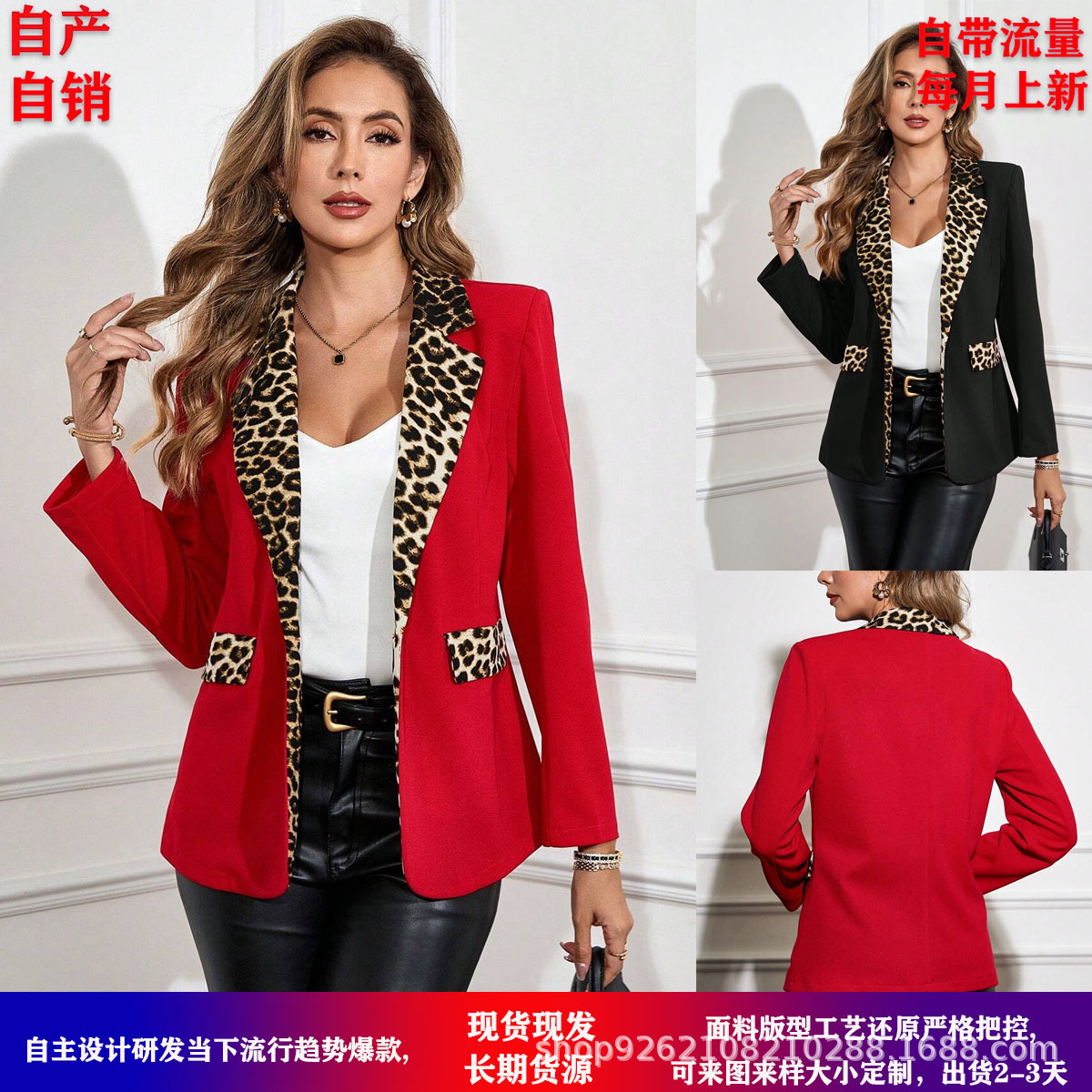 Amazon eBay AliExpress 독립 스테이션 스플라이스 레오파드 프린트 라펠 우아한 직장 우아한 슬림핏 작은 양복 2025
