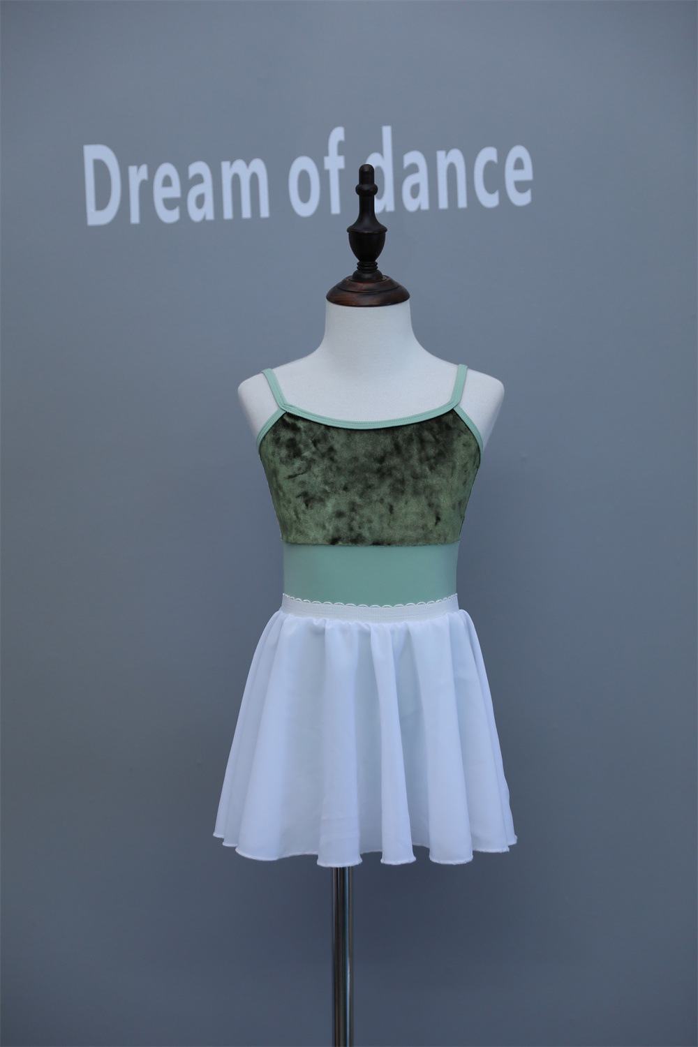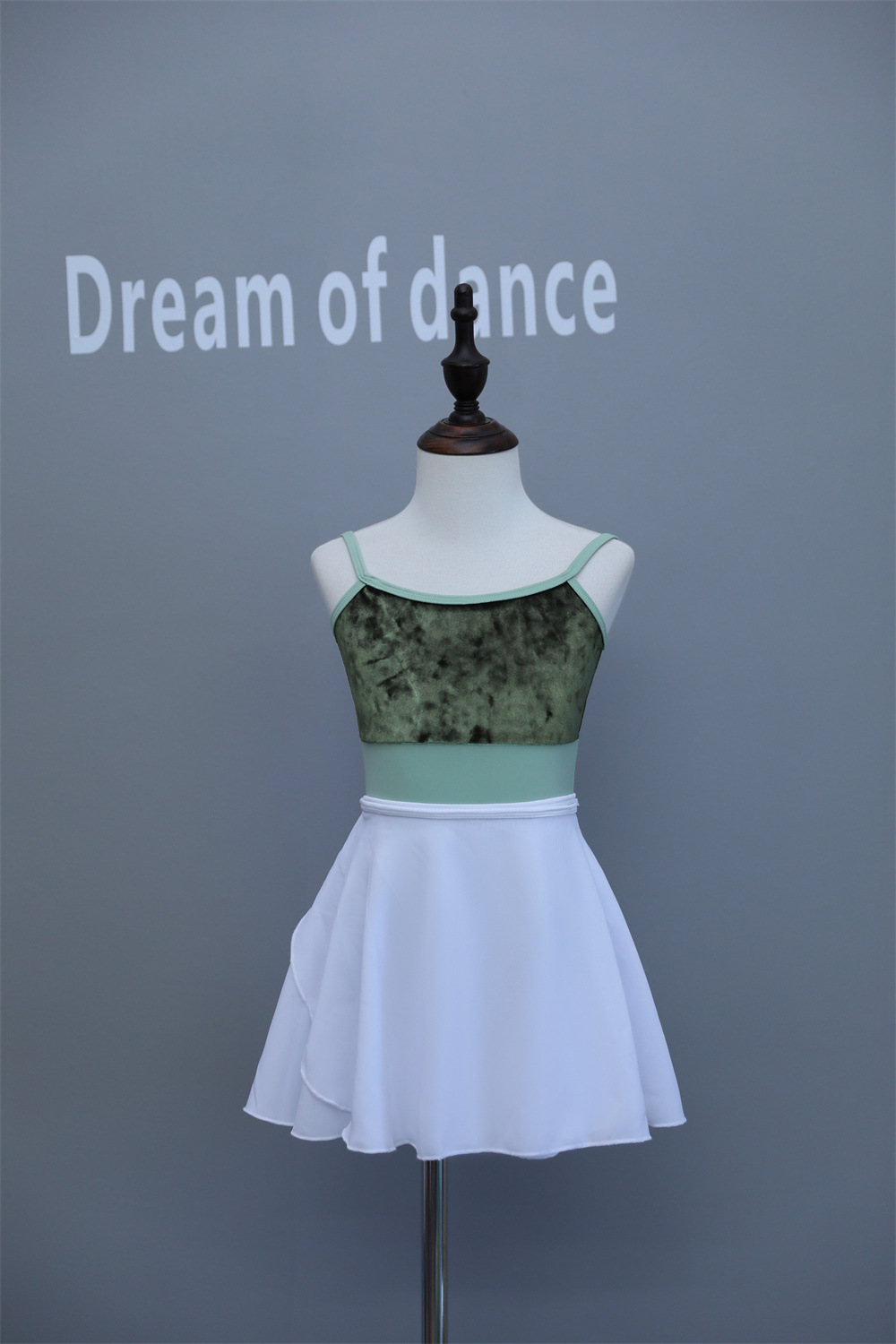 • 모스 그린 골드 다이아몬드 벨벳 나일론 서스펜더 + 화이트 레이스 쉬폰 스커트