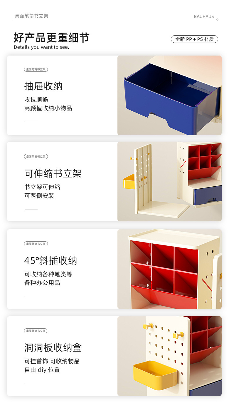 DIY 확장형 홀보드 책꽂이, 경사형 펜홀더, 학생 사무실 책상용 고급스러운 수납함 및 정리대