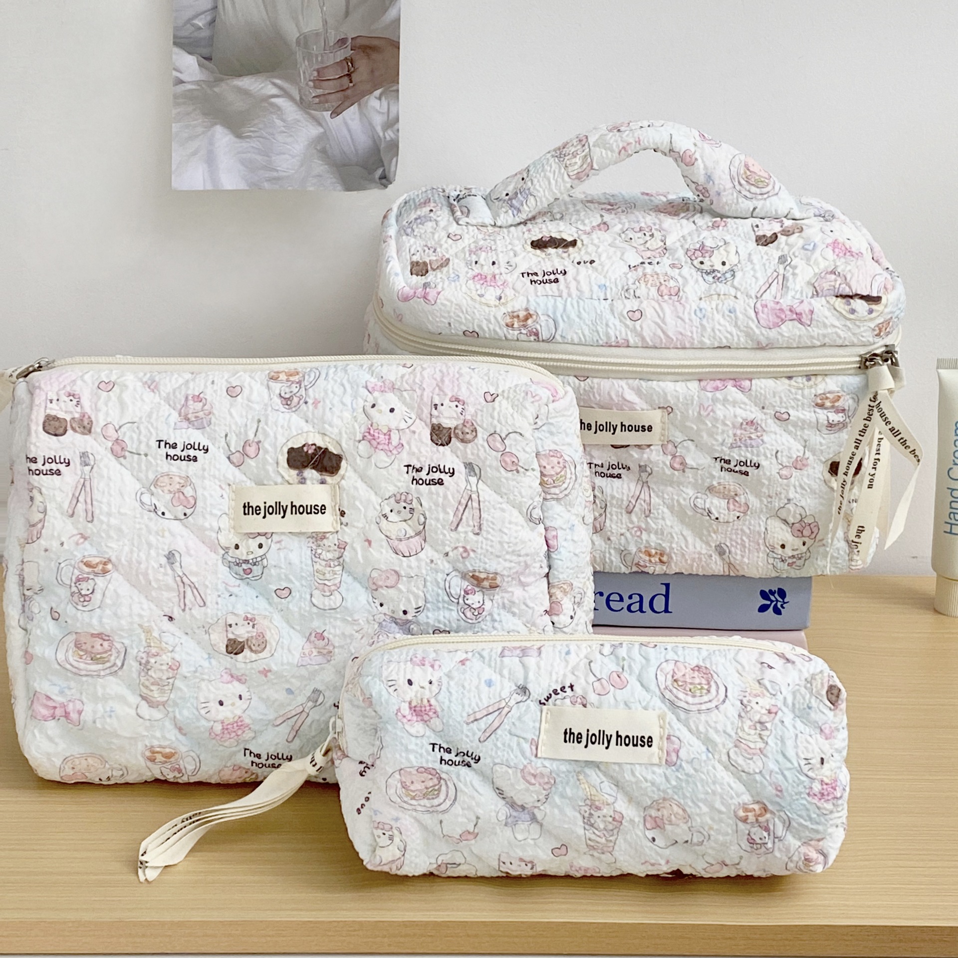 귀여운 만화 고양이 메이크업 가방 여성 휴대용 대용량 여행 화장품 휴대용 세탁 가방