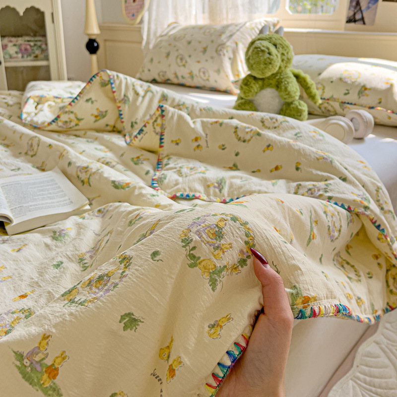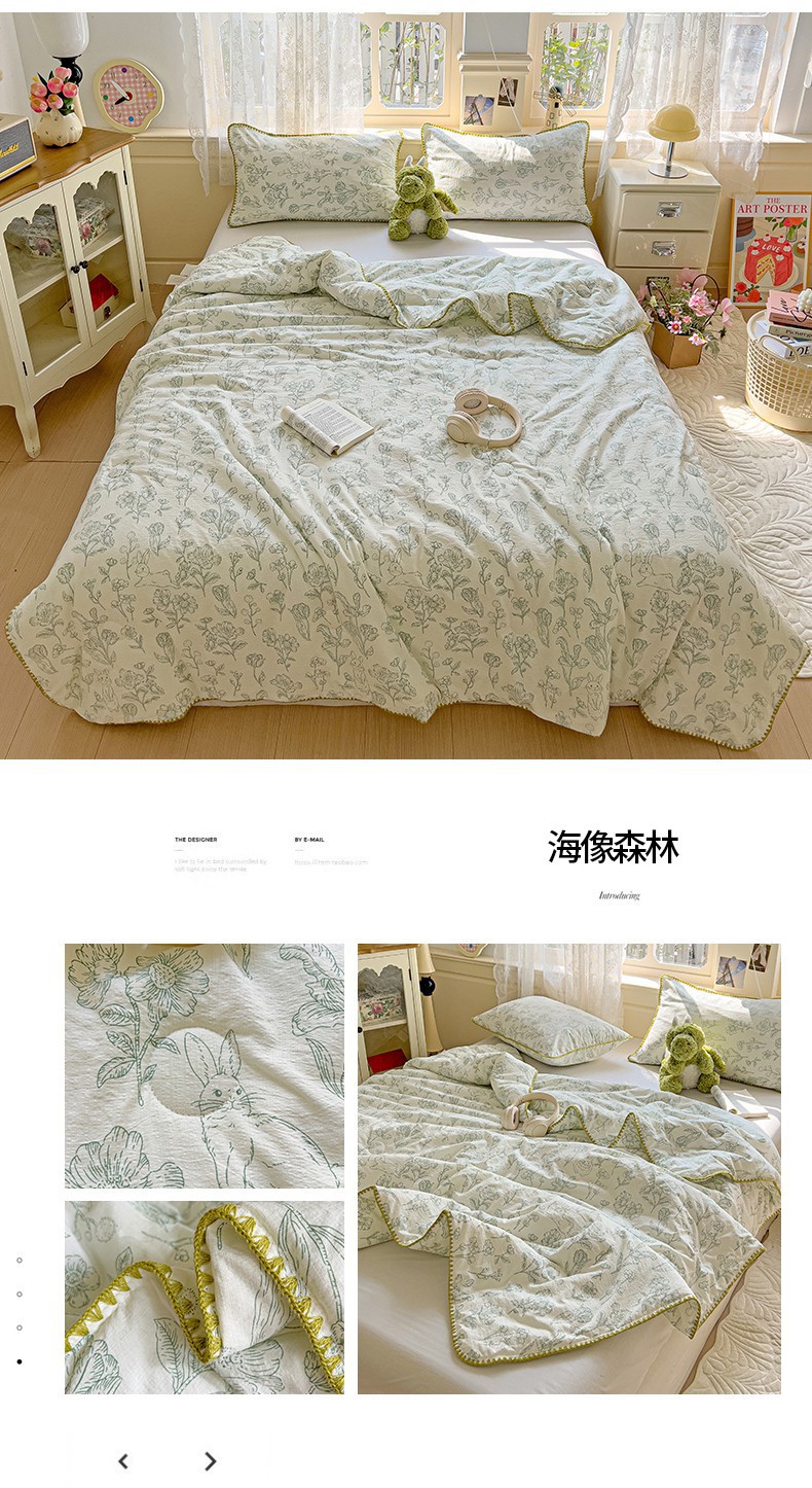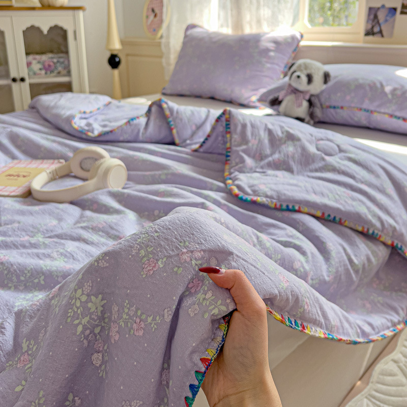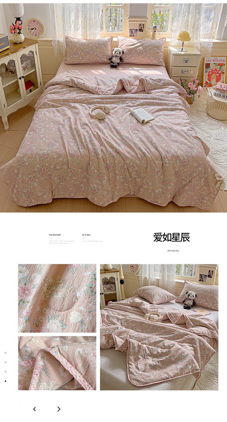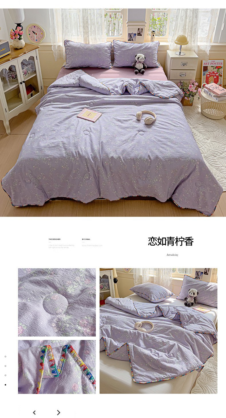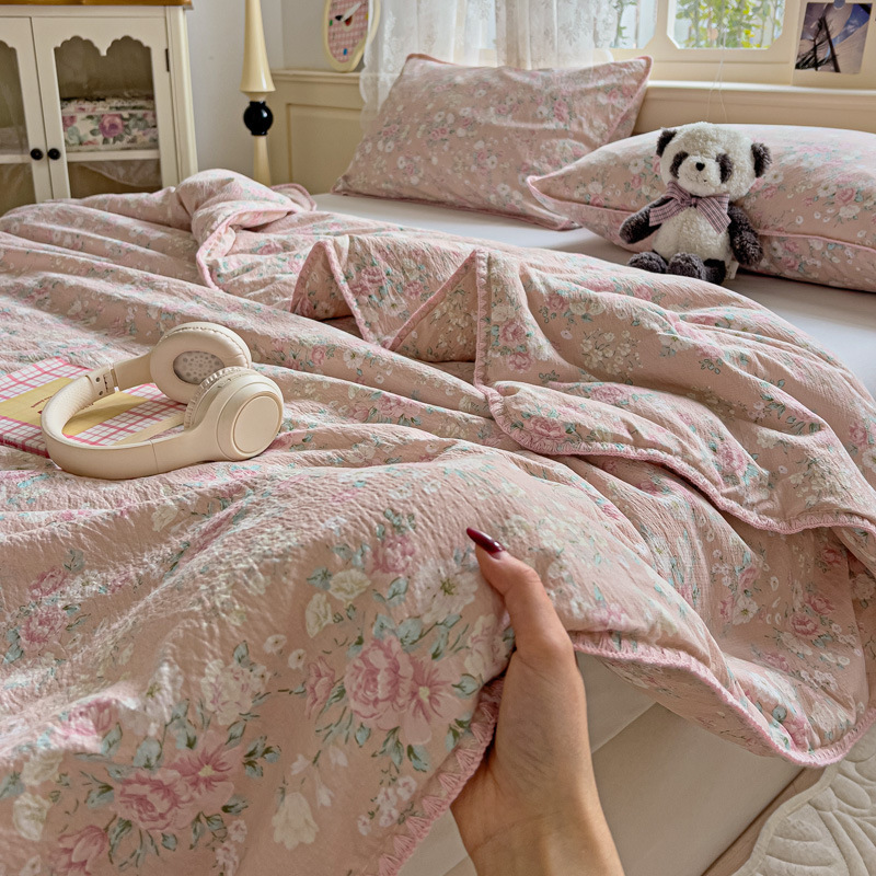 클래스 A 클라우드 느낌 더블 레이어 원사 여름 퀼트 4 피스 세트 쉘 에지 슈퍼 소프트 에어컨 퀼트 작은 꽃 싱글 여름 쿨 퀼트 얇은 퀼트