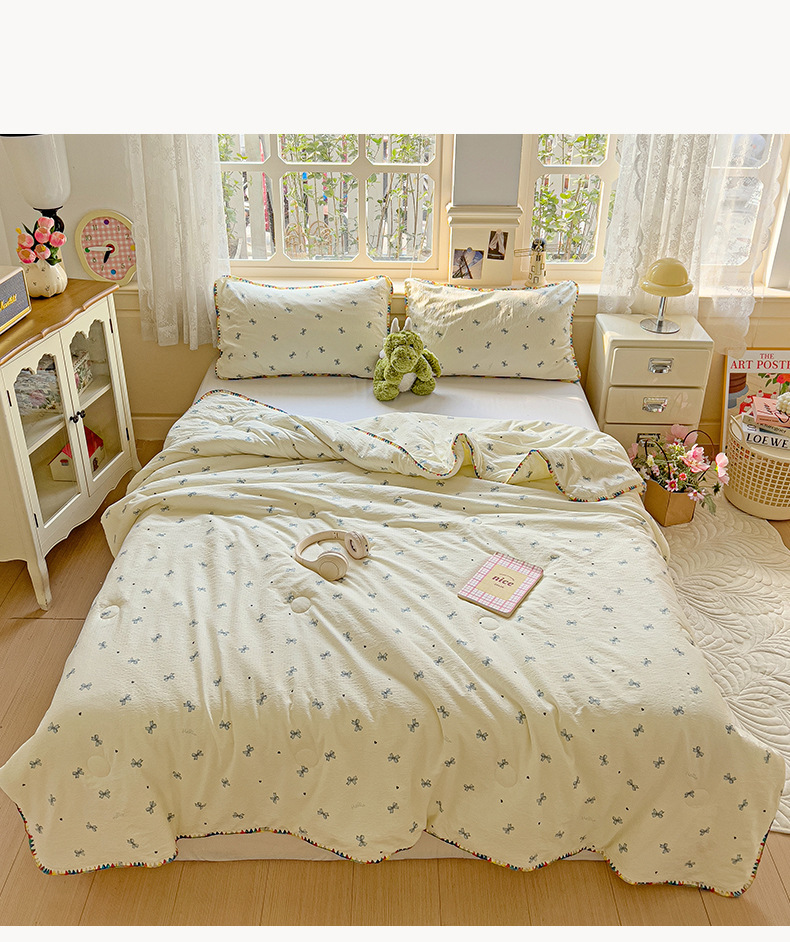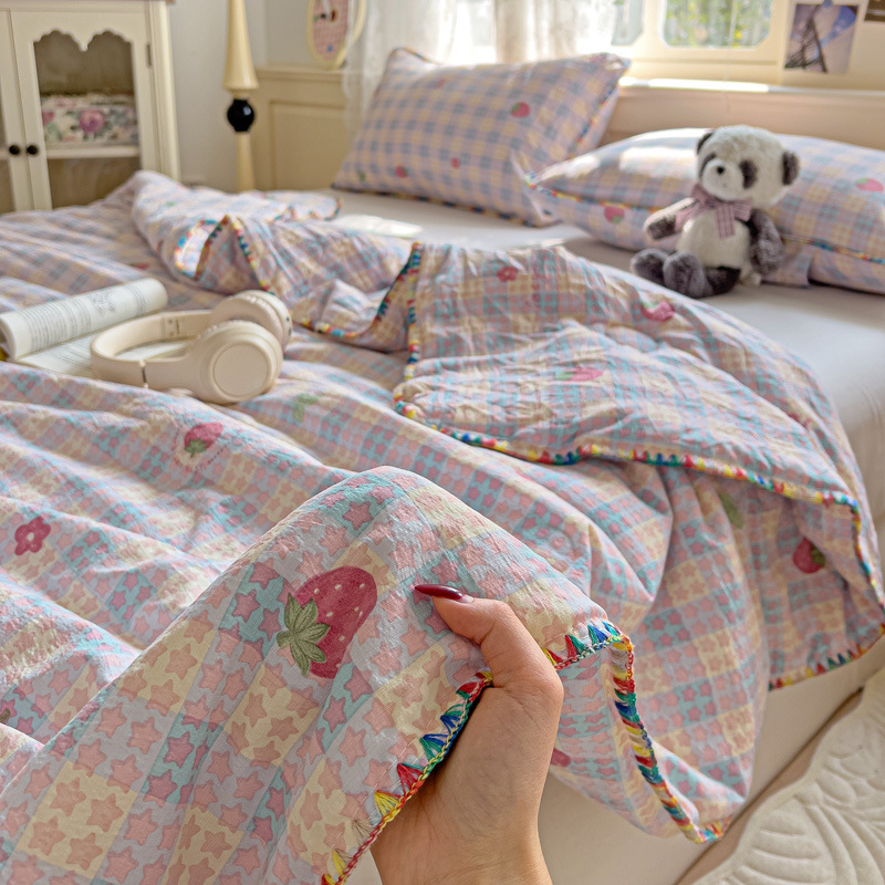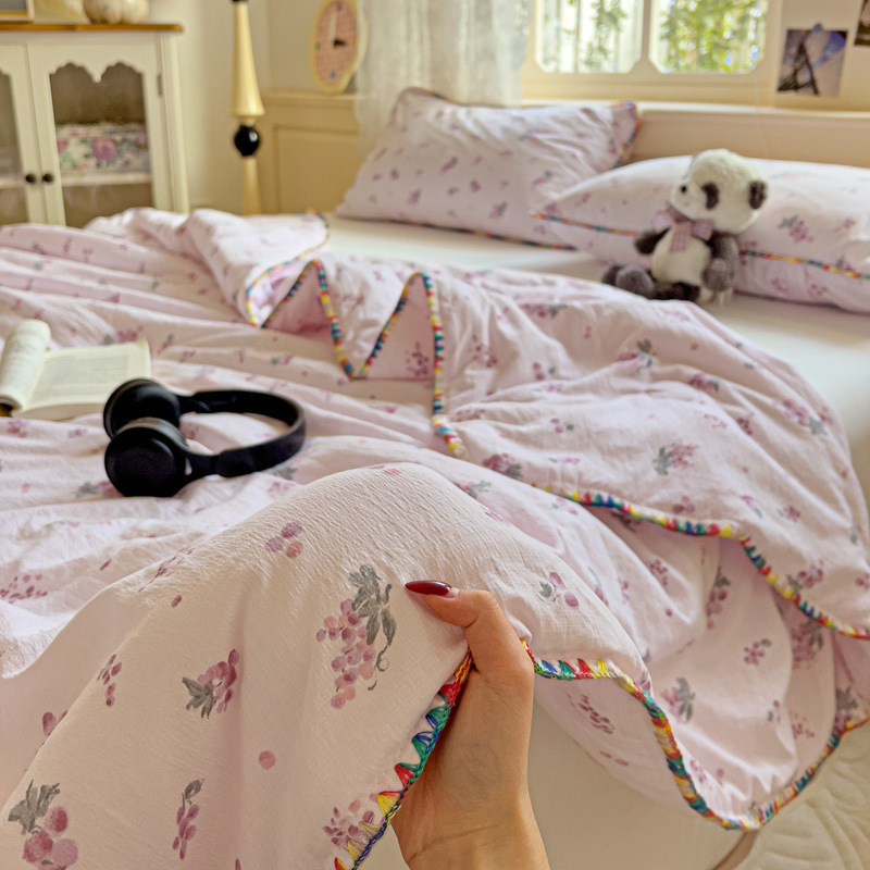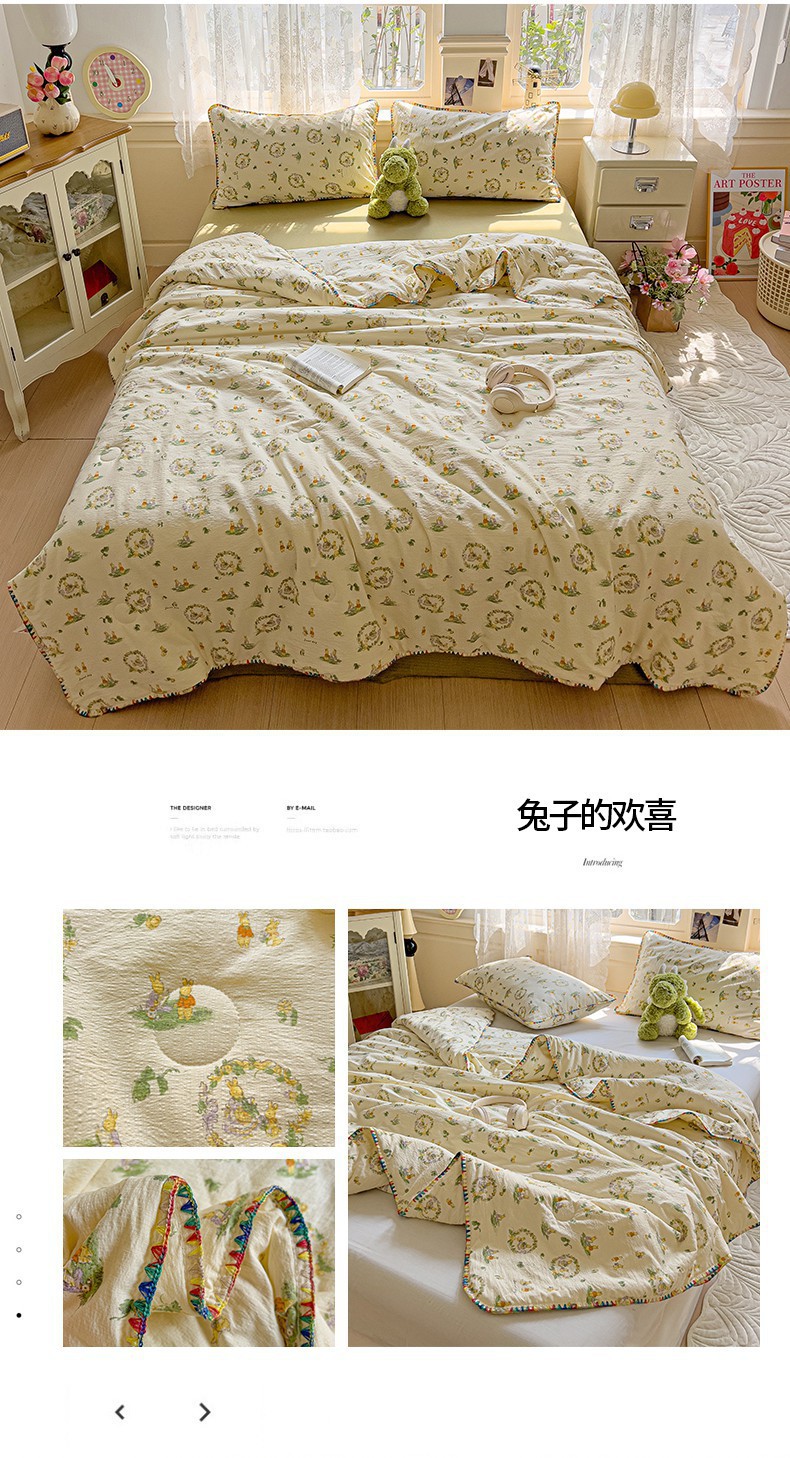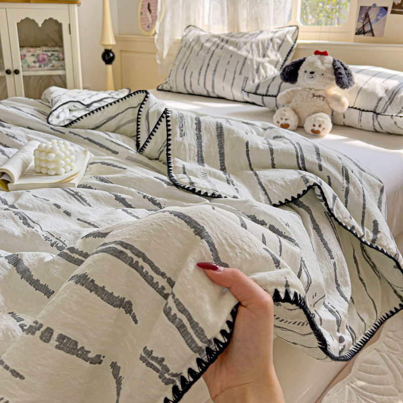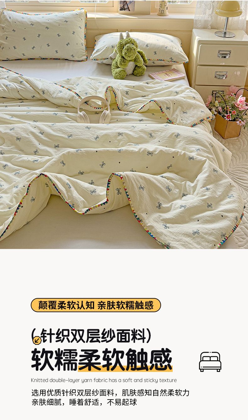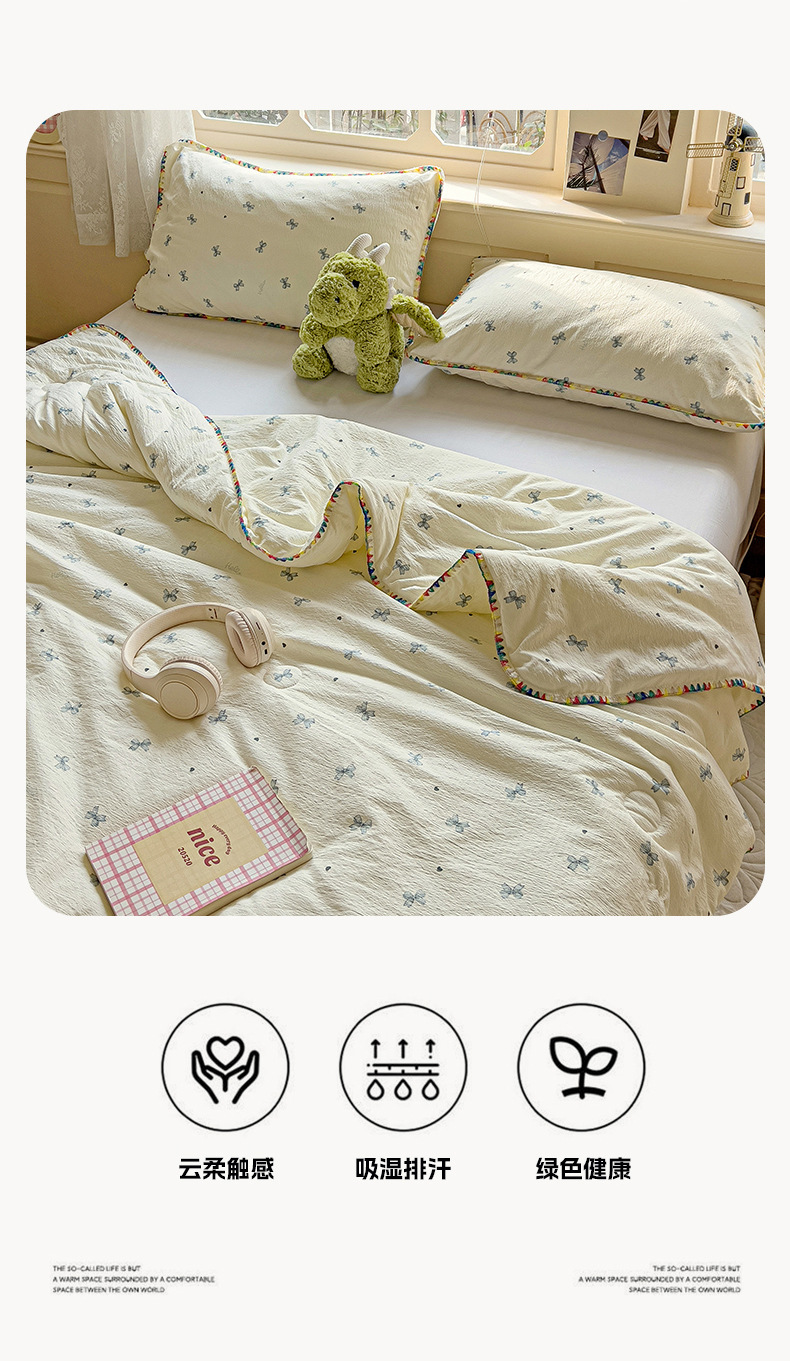 클래스 A 클라우드 느낌 더블 레이어 원사 여름 퀼트 4 피스 세트 쉘 에지 슈퍼 소프트 에어컨 퀼트 작은 꽃 싱글 여름 쿨 퀼트 얇은 퀼트