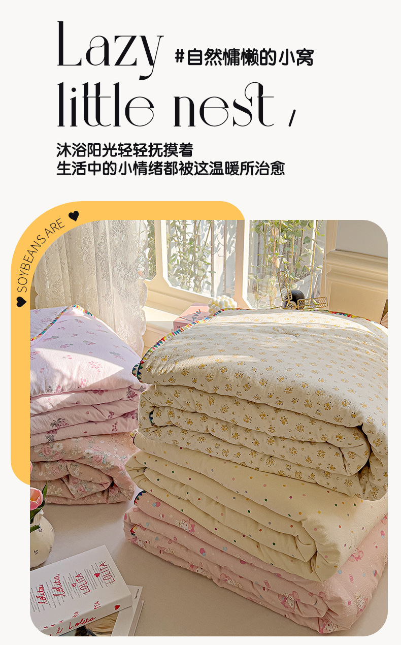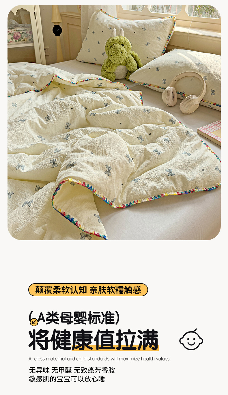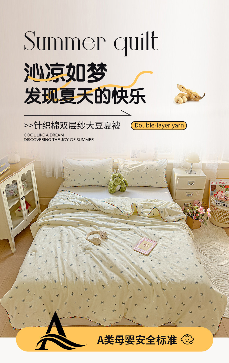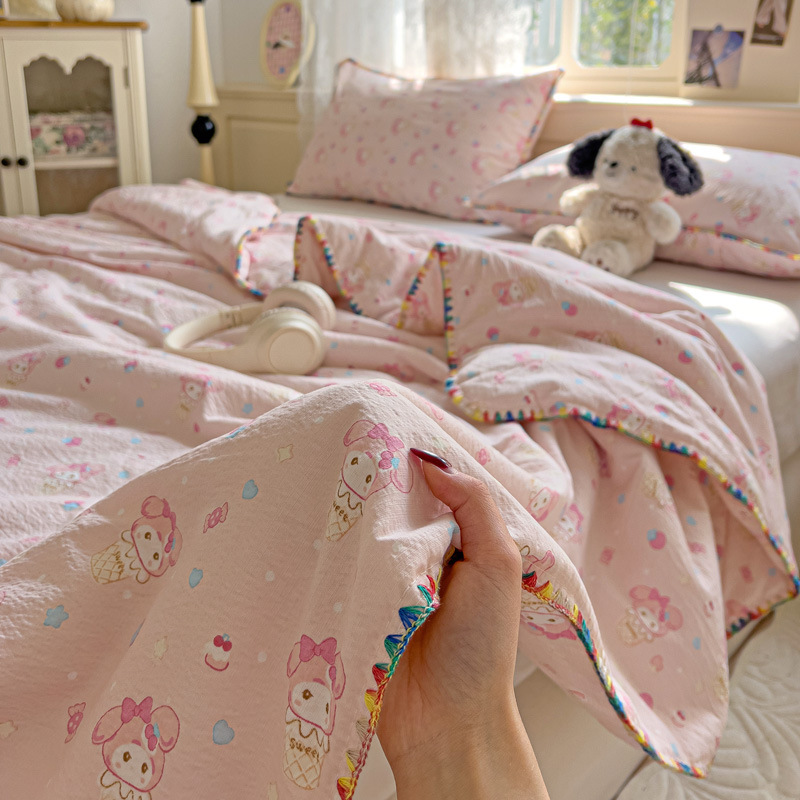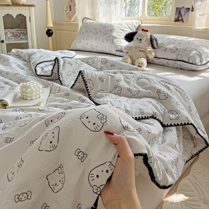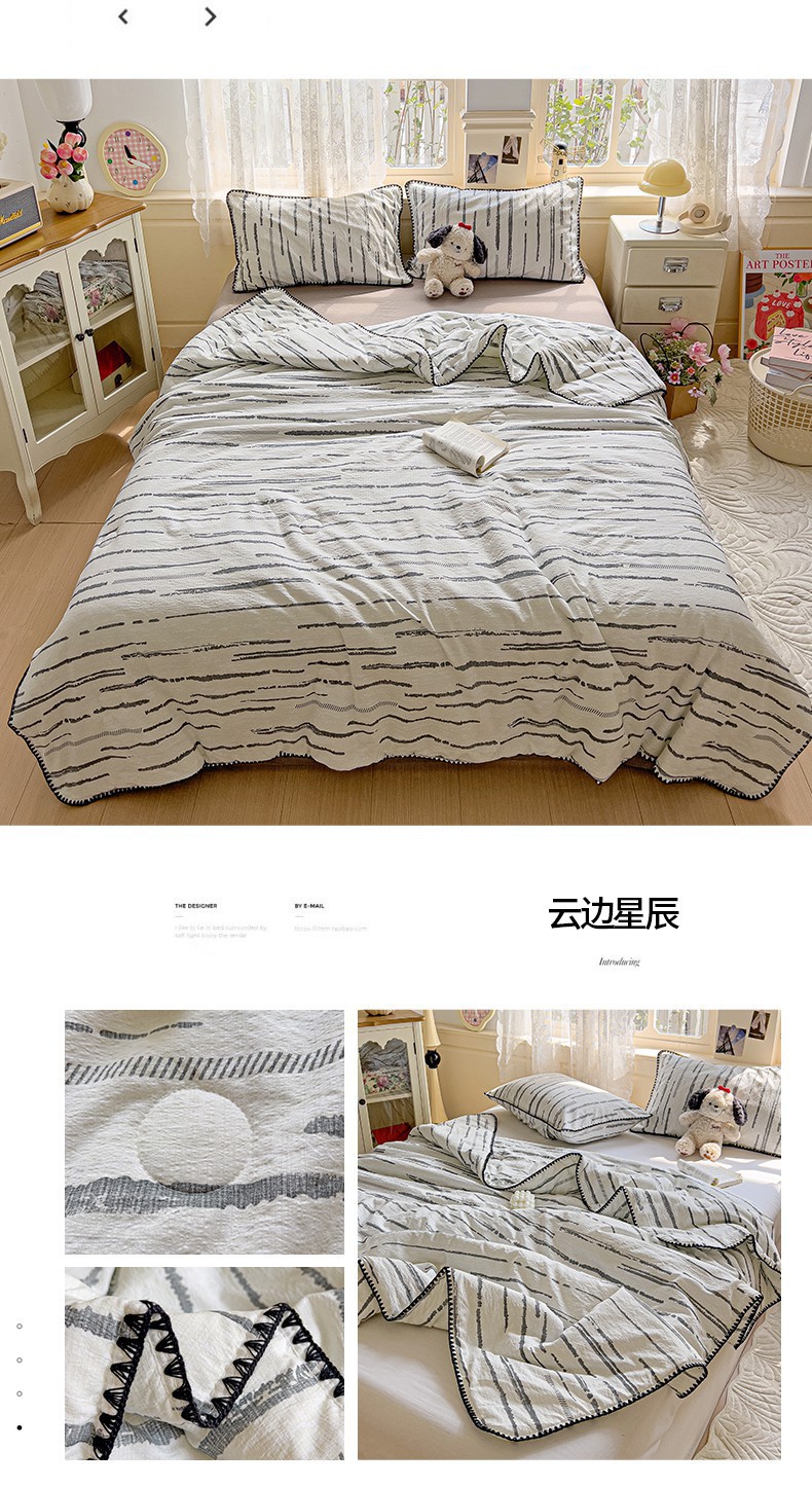 클래스 A 클라우드 느낌 더블 레이어 원사 여름 퀼트 4 피스 세트 쉘 에지 슈퍼 소프트 에어컨 퀼트 작은 꽃 싱글 여름 쿨 퀼트 얇은 퀼트